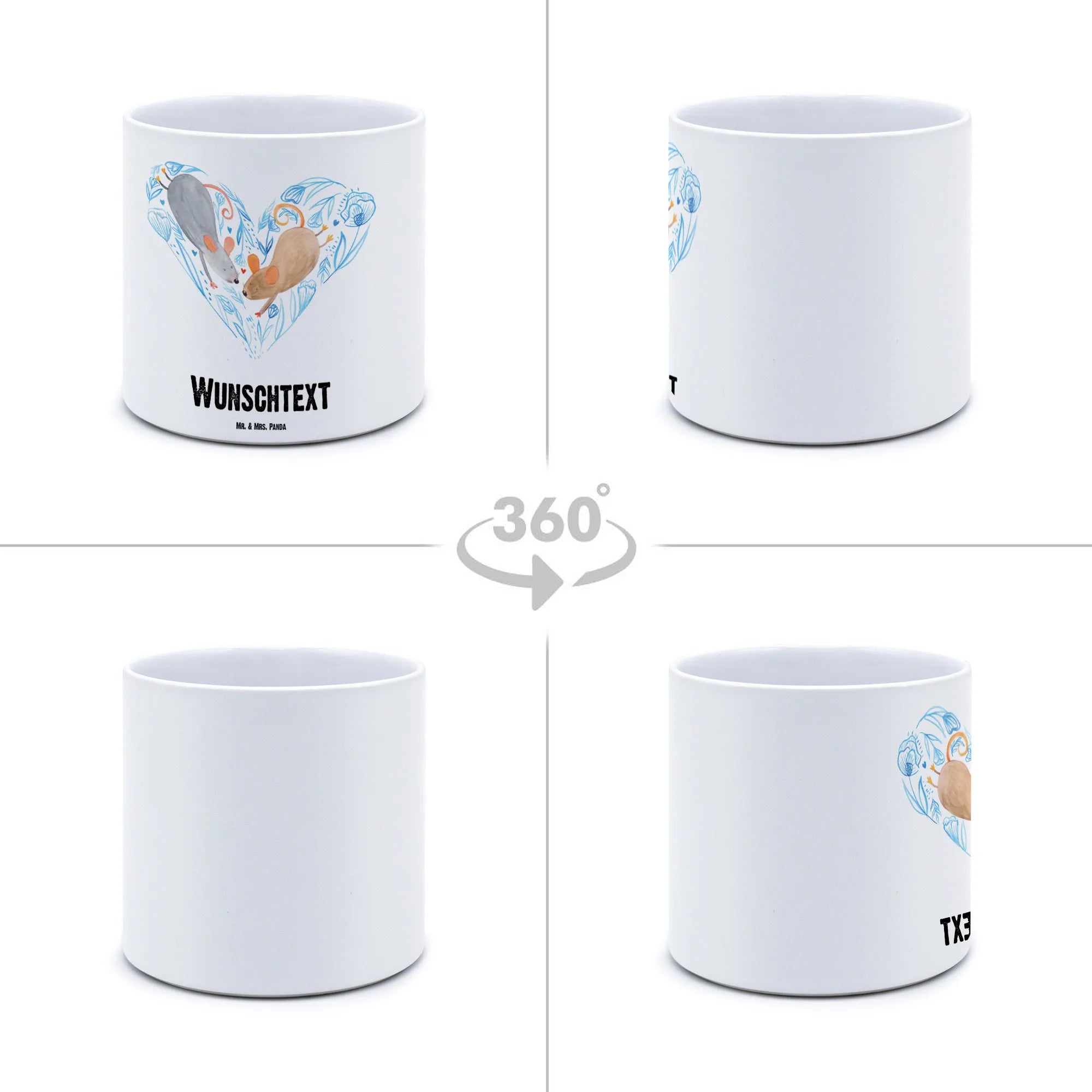 Personalisierter XL Blumentopf Mäuse Herz