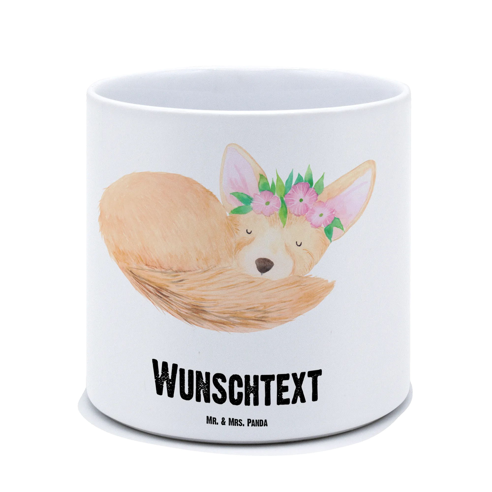 Der personalisierte XL Blumentopf mit dem liebevollen Motiv des Wüstenfuchses im Blumenkranz von Mr. & Mrs. Panda ist die perfekte Geschenkidee für alle Pflanzenliebhaber und Freunde vom afrikanischen Flair.