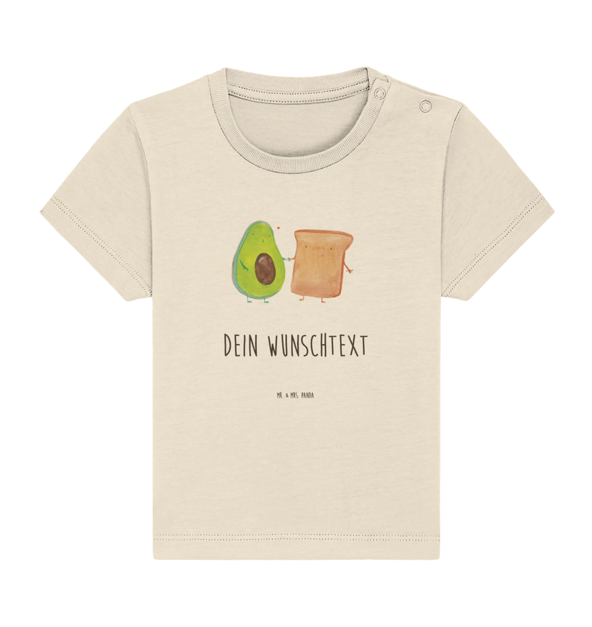 Entdecke das perfekte personalisierte Baby T-Shirt mit dem süßen Motiv von einer verliebten Avocado und einem niedlichen Toast, die sich an den Händen halten. Dieses zauberhafte Shirt aus hochwertiger, ökologischer Baumwolle ist nicht nur ein stylisches Kleidungsstück für dein Baby, sondern auch ein ganz besonderes Geschenk für kleine Erdenbürger!
