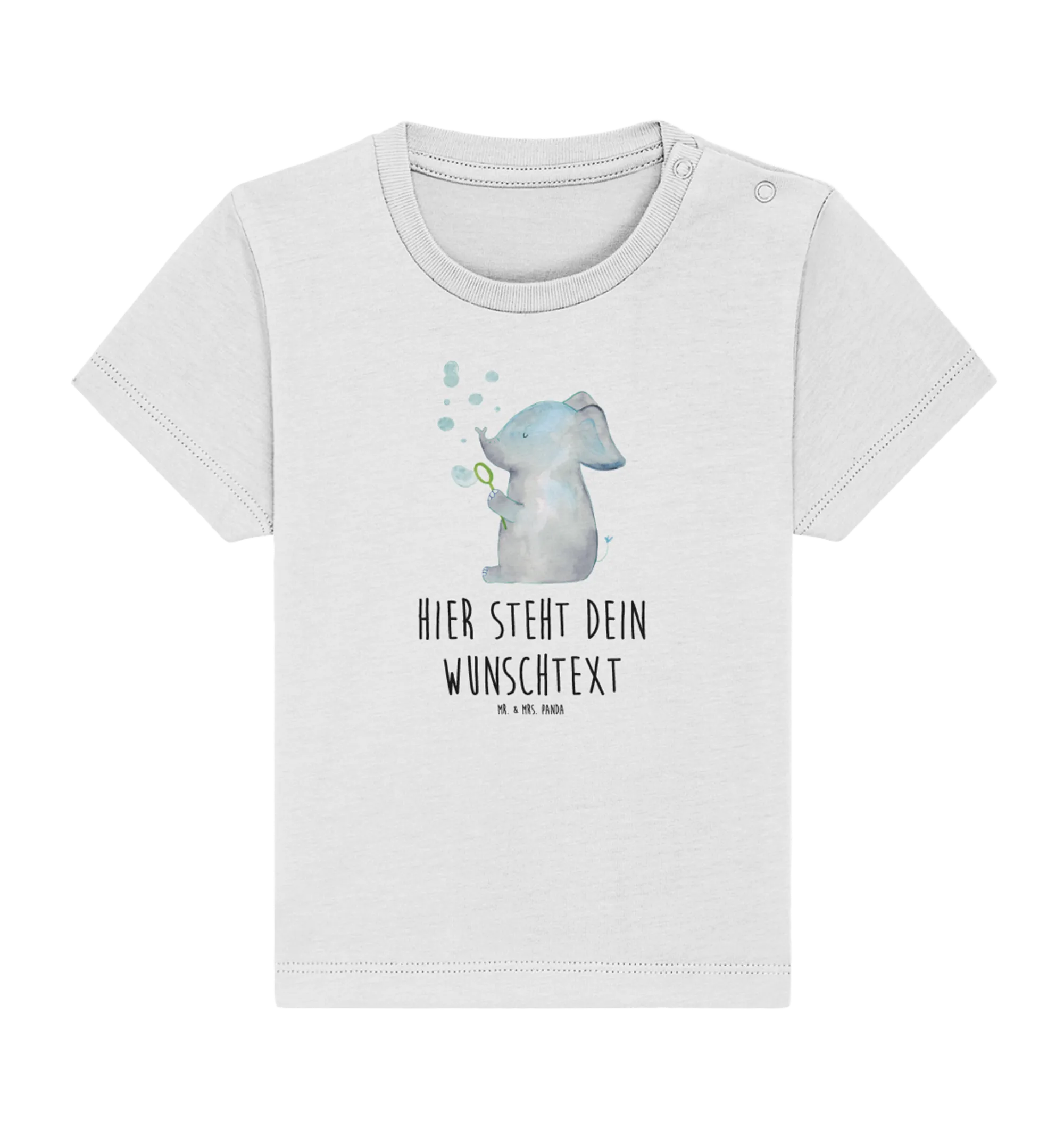 Also, worauf wartest du? Hol dir jetzt das personalisierte Baby Shirt mit dem Elefant Seifenblasen aus der Small World Kollektion und schenke Freude!