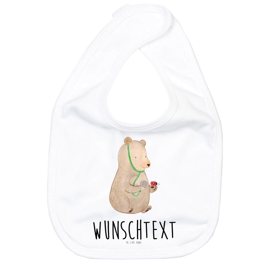 Das personalisierte Babylätzchen mit dem süßen Bär-Arzt-Motiv ist das perfekte Geschenk zur Geburt oder Babyparty! Es handelt sich um ein liebevoll gestaltetes Lätzchen aus hochwertiger, Bio-Baumwolle, das nicht nur funktional ist, sondern auch einfach bezaubernd aussieht. Jeder kleine Bär ist ein charmantes Detail. Der Bär in Arztuniform behandelt ganz entspannt einen kleinen Marienkäfer – eine lustige und süße Szene, die jedes Babyherz höher schlagen lässt!