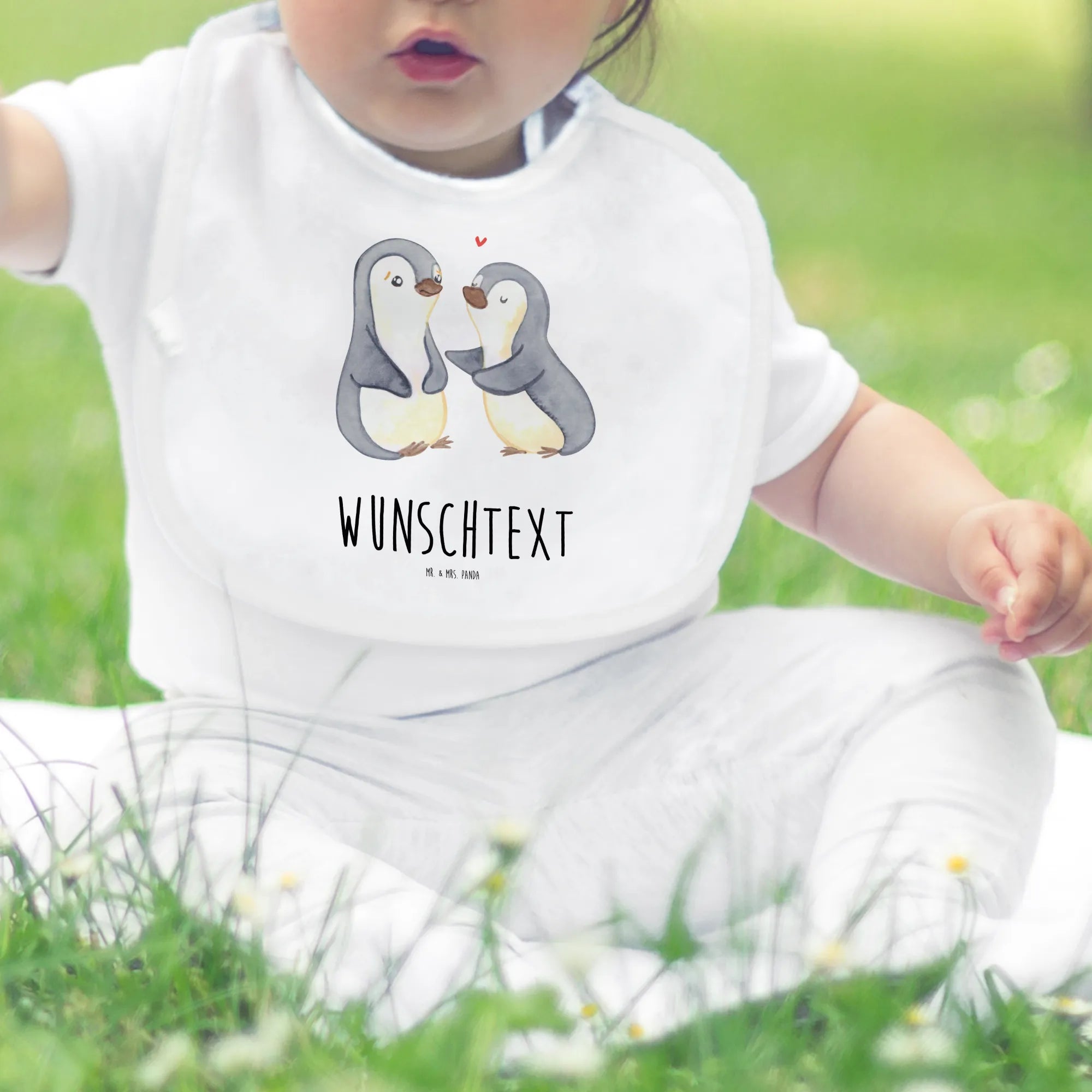 Personalisiertes Babylätzchen Pinguine trösten – Mr. & Mrs. Panda