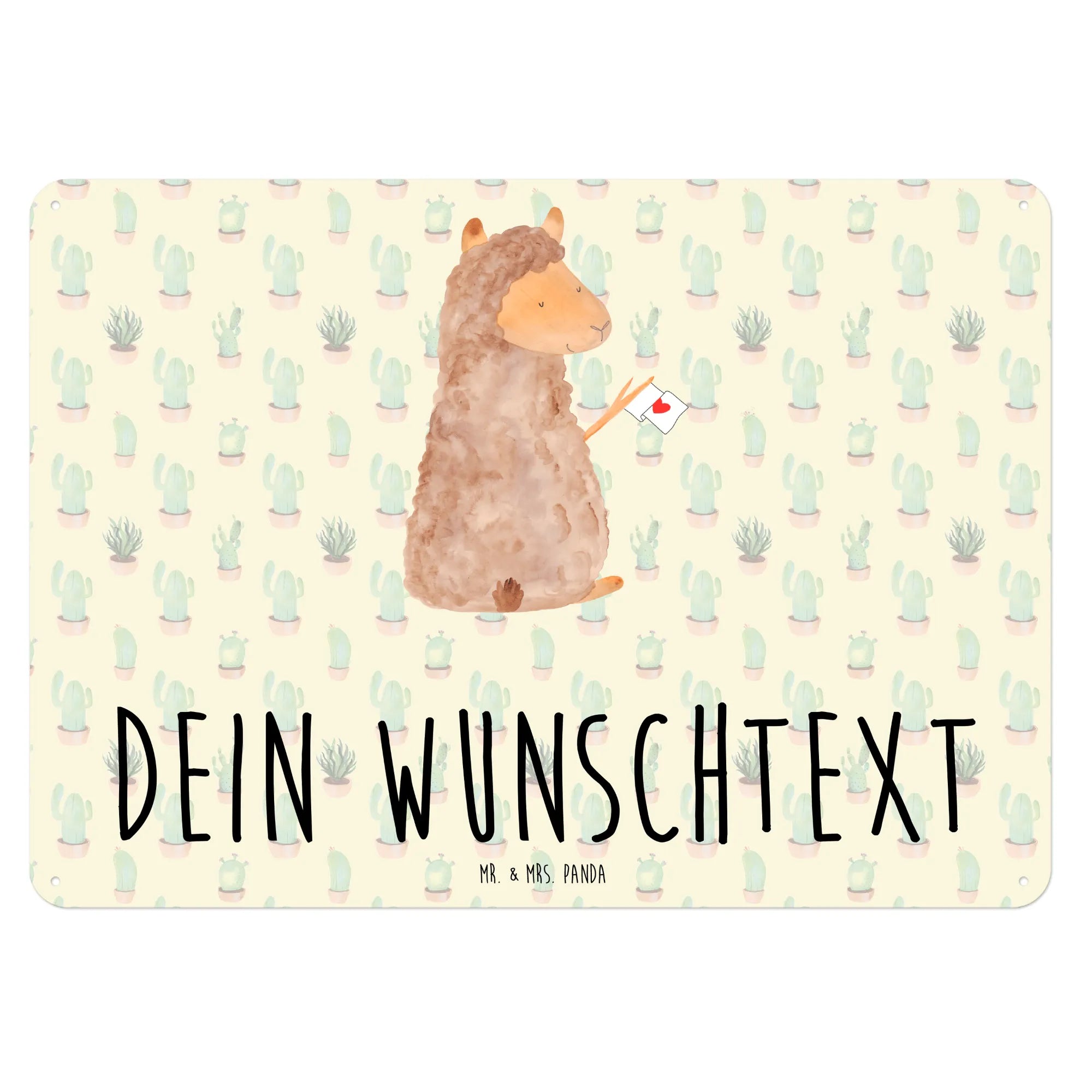 Die Alpaka-Kollektion von Mr. & Mrs. Panda zeigt handgezeichnete Aquarellmotive von Mrs. Panda. Jedes Motiv wurde sorgfältig umgesetzt und wirkt warm, freundlich und hochwertig – perfekt als Design Blechschild mit Wunschtext oder als kleines Geschenk zum Geburtstag.