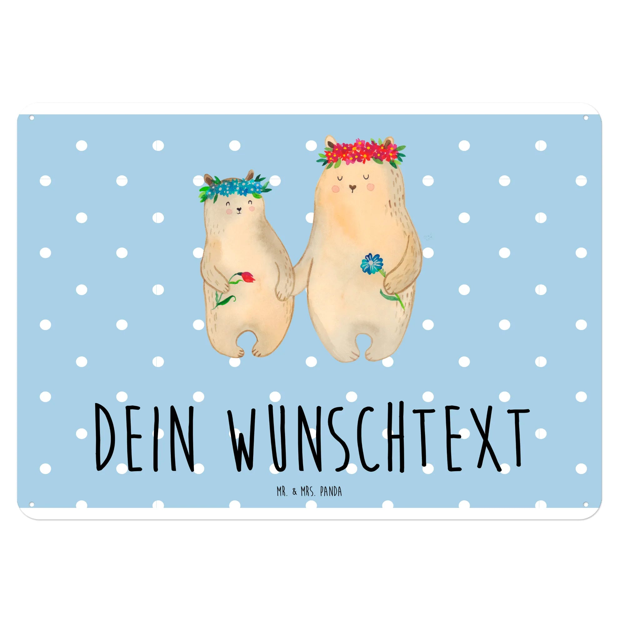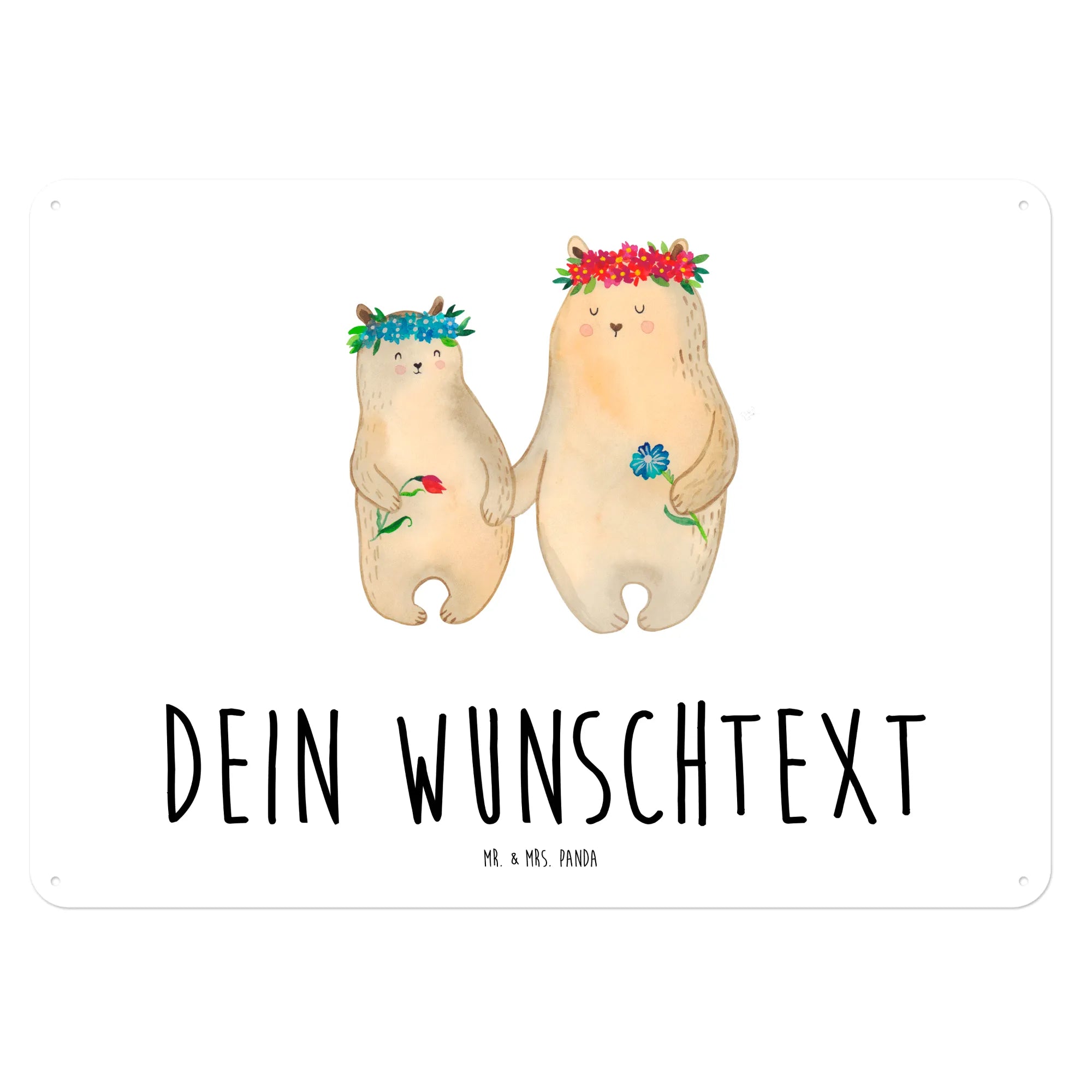 Entdecke das perfekte Geschenk für deine Lieblingsfrau oder deine beste Mama mit unserem personalisierten Blechschild, das wunderschöne Bären mit einem Blumenkranz zeigt! Bei Mr. & Mrs. Panda glauben wir an die Kraft der Familie und die Liebe, die uns verbindet. Das farbenfrohe Motiv mit den liebevollen Bären bringt sofort ein Lächeln auf die Lippen und ist eine zauberhafte Dekoration für jede Wand oder Tür.
