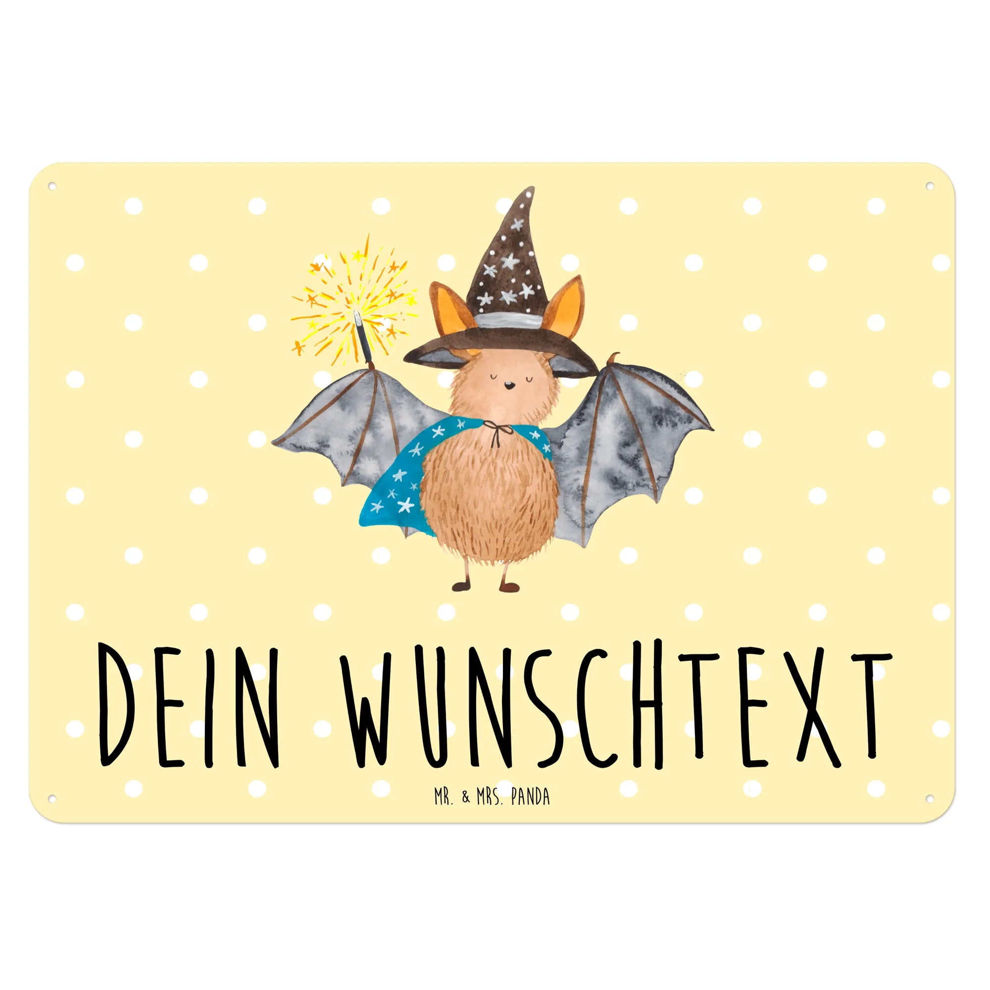 Du suchst nach einem besonderen Geschenk oder einer einzigartigen Dekoration für dein Zuhause? Dann ist das personalisierte Blechschild mit dem zauberhaften Motiv der Fledermaus Zauberer aus der Small World Kollektion von Mr. & Mrs. Panda genau das Richtige für dich!