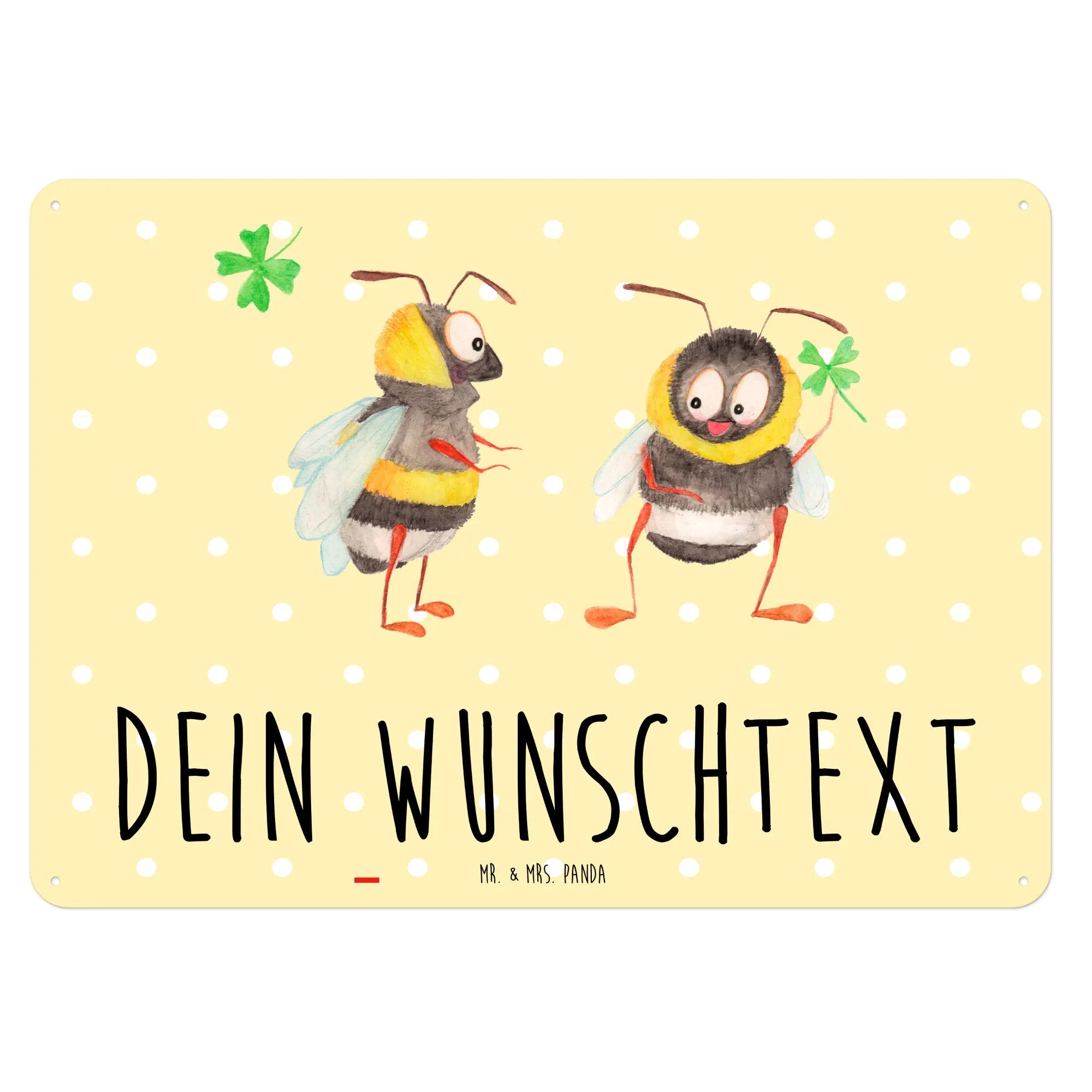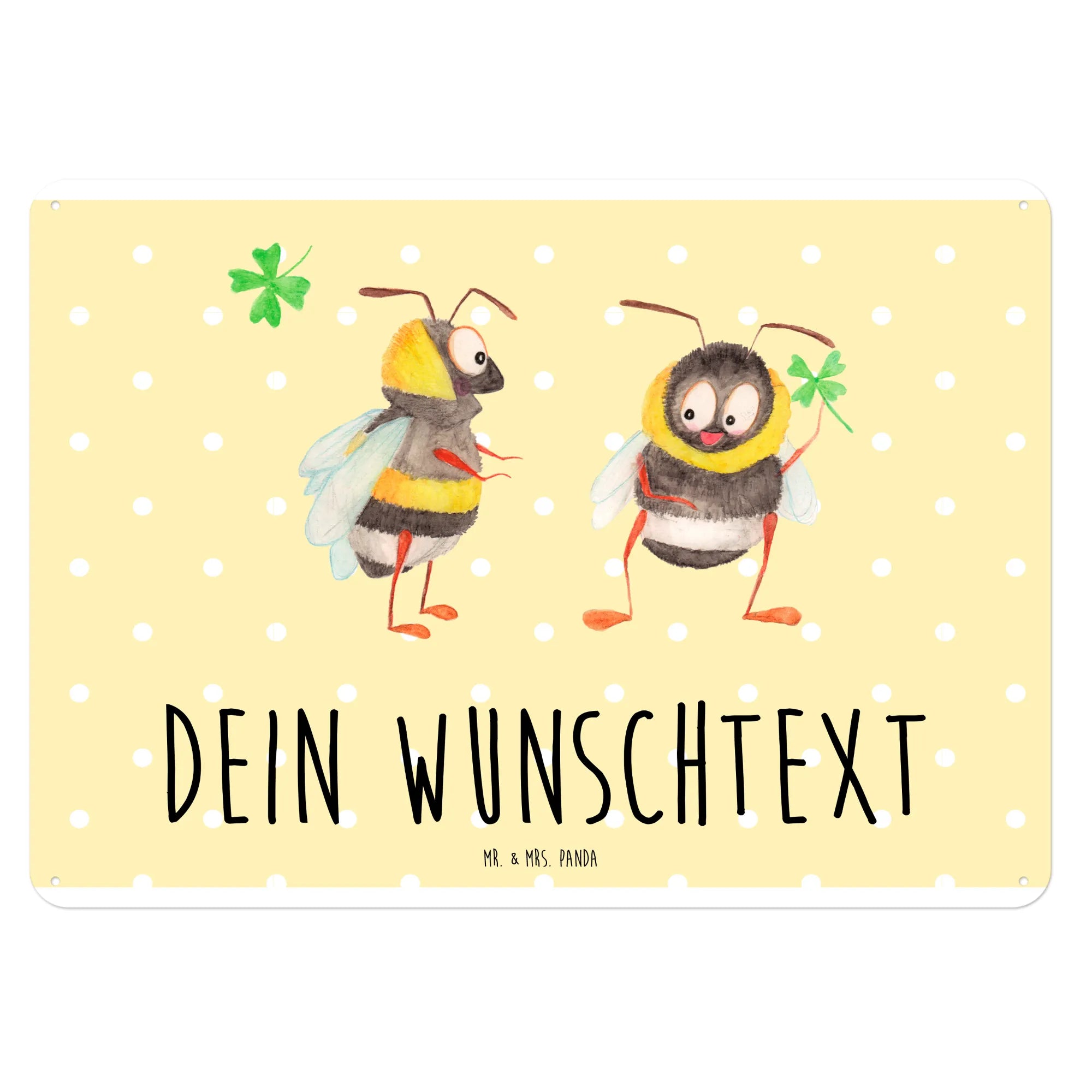 Entdecke das bezaubernde personalisierte Blechschild mit Hummeln und einem Kleeblatt aus der Small World Kollektion von Mr. & Mrs. Panda!