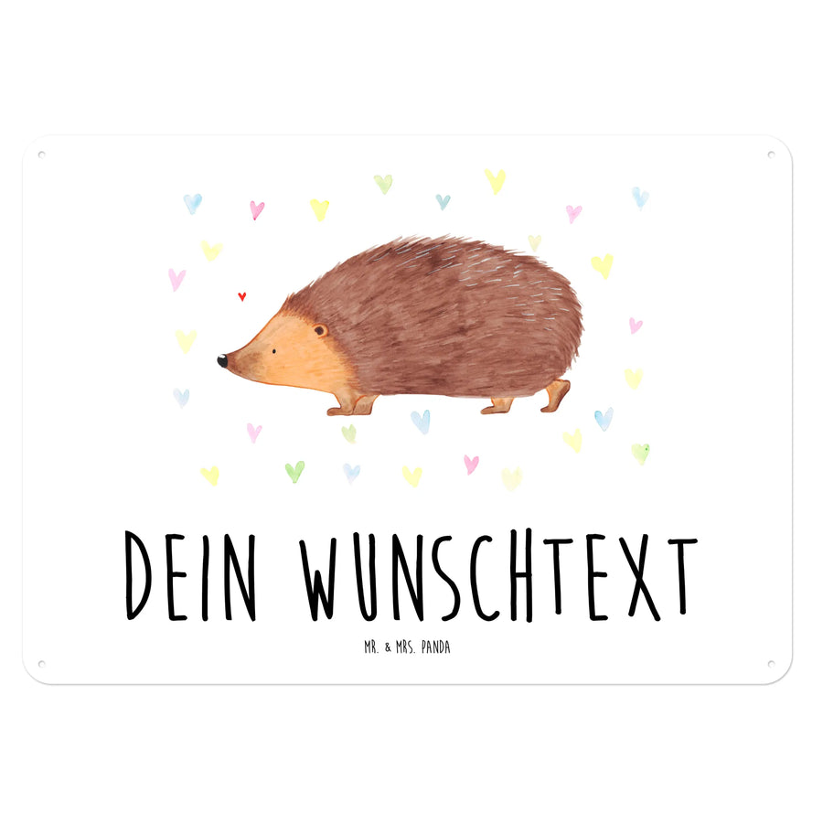 Das personalisierte Blechschild "Igel Herzen" von Mr. & Mrs. Panda ist ein wahres Schmuckstück für dein Zuhause. Es vereint nicht nur eine äußerst liebevolle Gestaltung mit einem entzückenden Igel, der von strahlenden Herzen umgeben ist, sondern bringt auch eine Botschaft voller Liebe und Vertrauen mit sich.