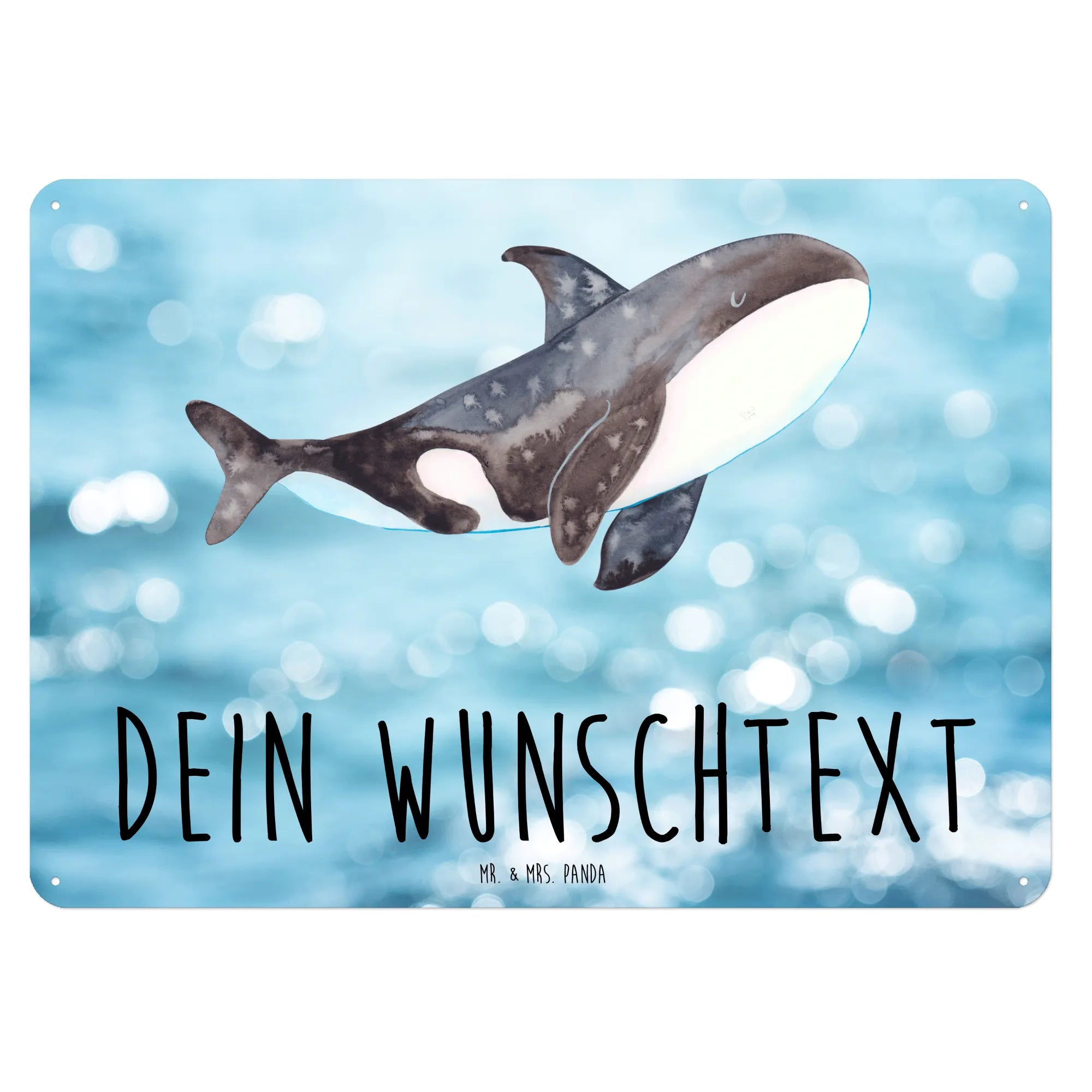 Das personalisierte Blechschild mit dem süßen Orca-Motiv von Mr. & Mrs. Panda ist das perfekte Geschenk für alle, die sich nach Meer und Freiheit sehnen! Egal, ob es für dich selbst oder als hochwertige Geschenkidee für Freunde, Familie oder Kollegen gedacht ist, dieses Schild wird mit Sicherheit ein Lächeln auf die Gesichter zaubern. Es zeigt einen wunderschönen Orca, der in sanften Aquarellfarben dargestellt ist und die Botschaft vermittelt: 'Wage den Sprung ins kalte Wasser und tauche in ein Meer voller Möglichkeiten.'