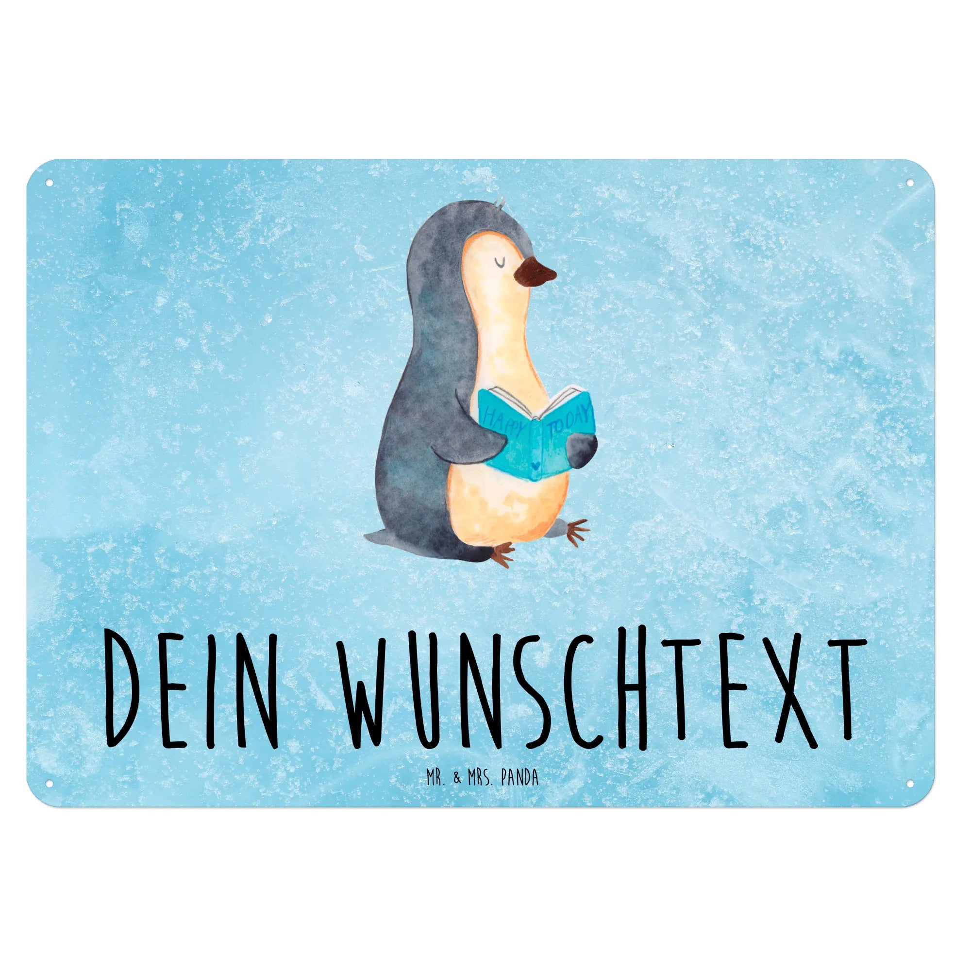 Personalisiertes Blechschild Pinguin Buch - DIN A3 - Eisblau