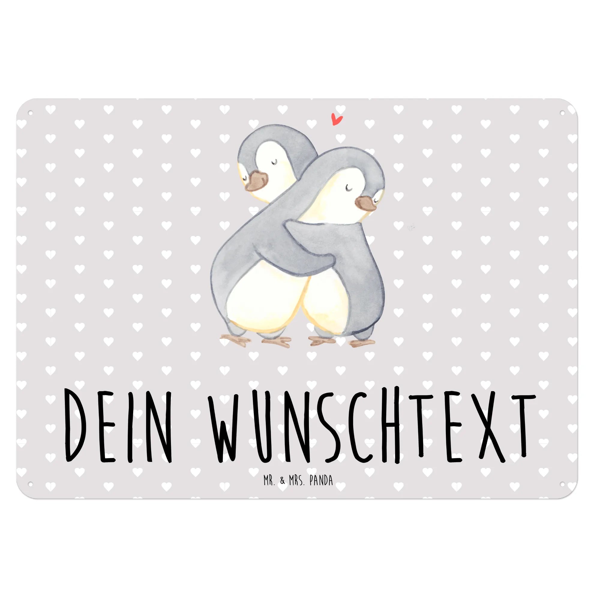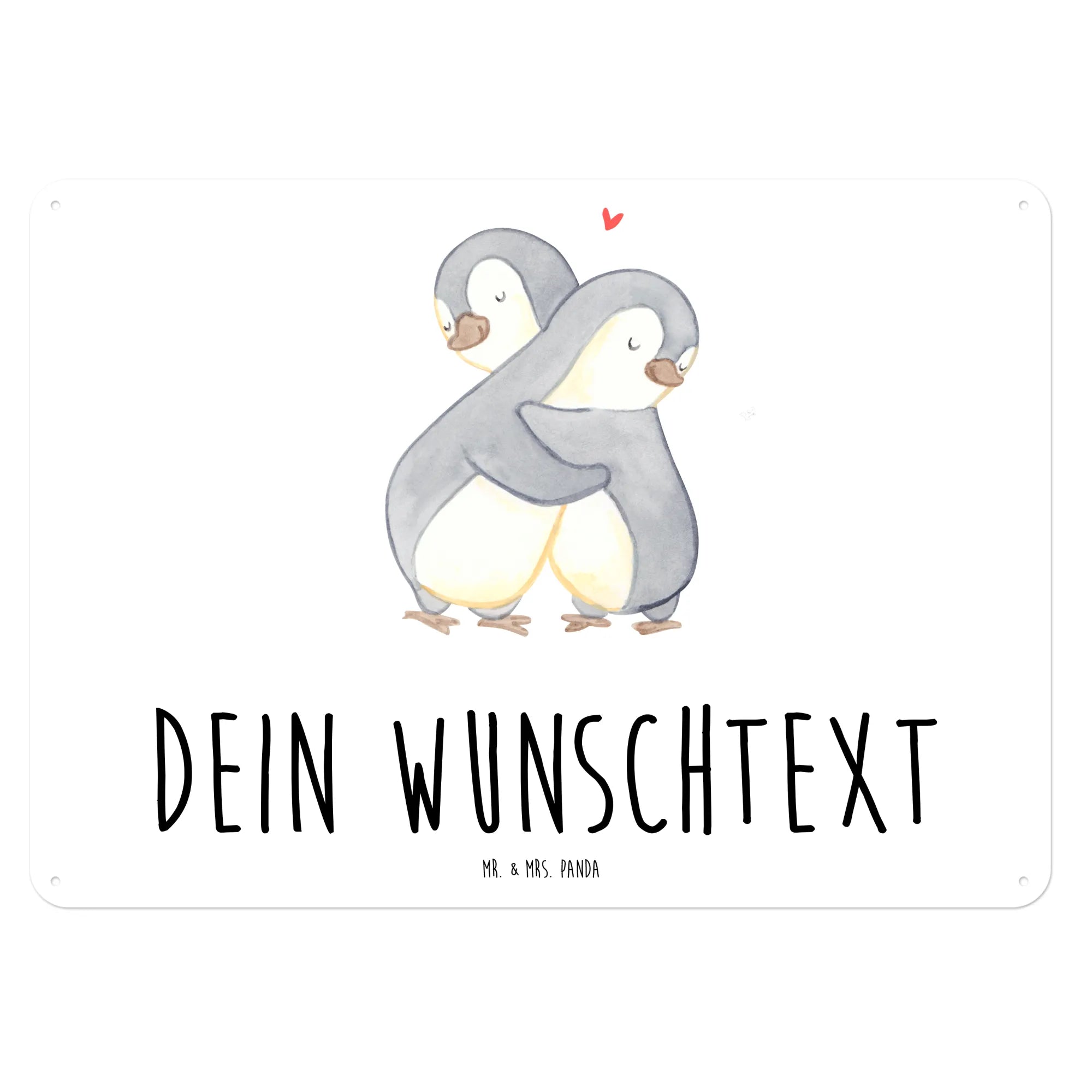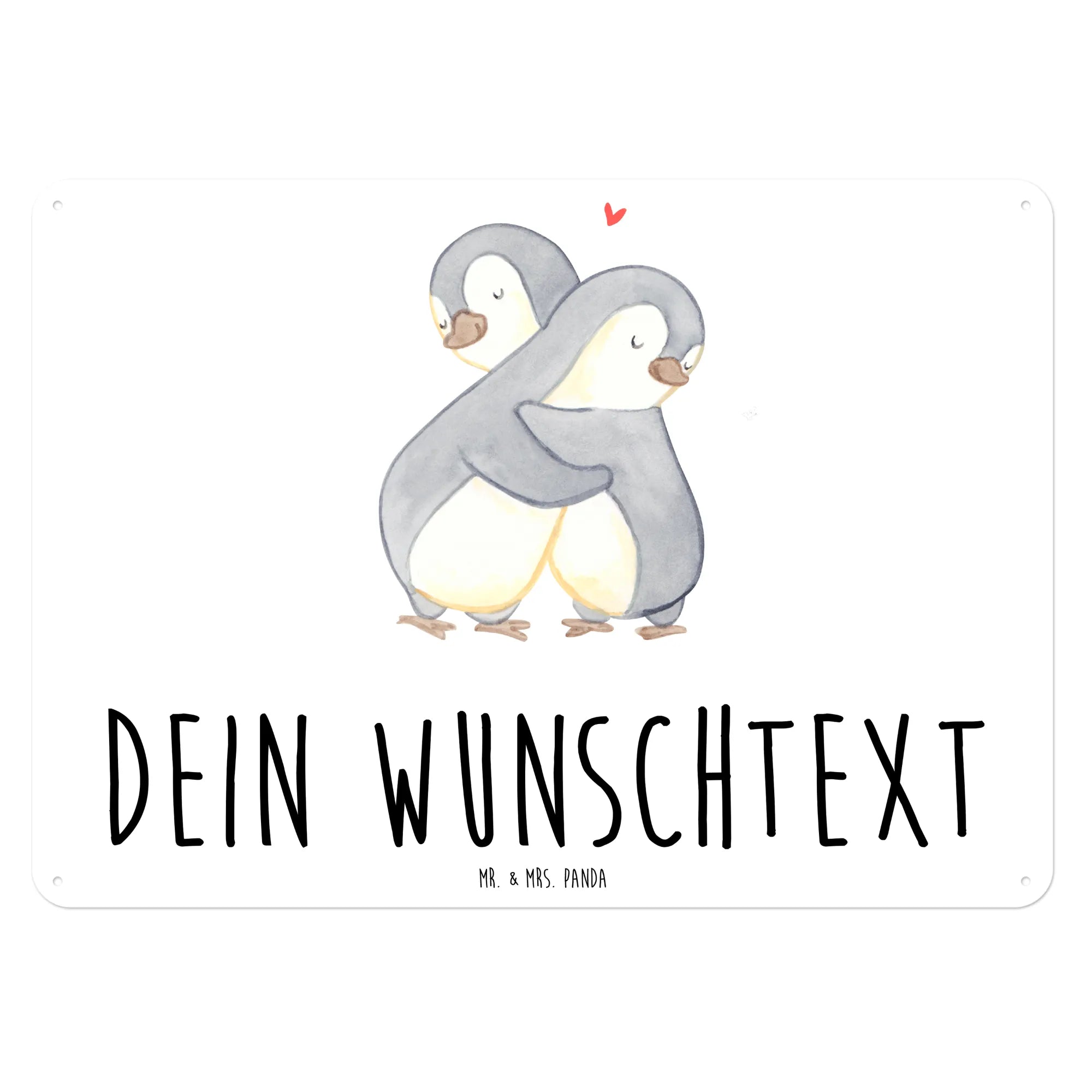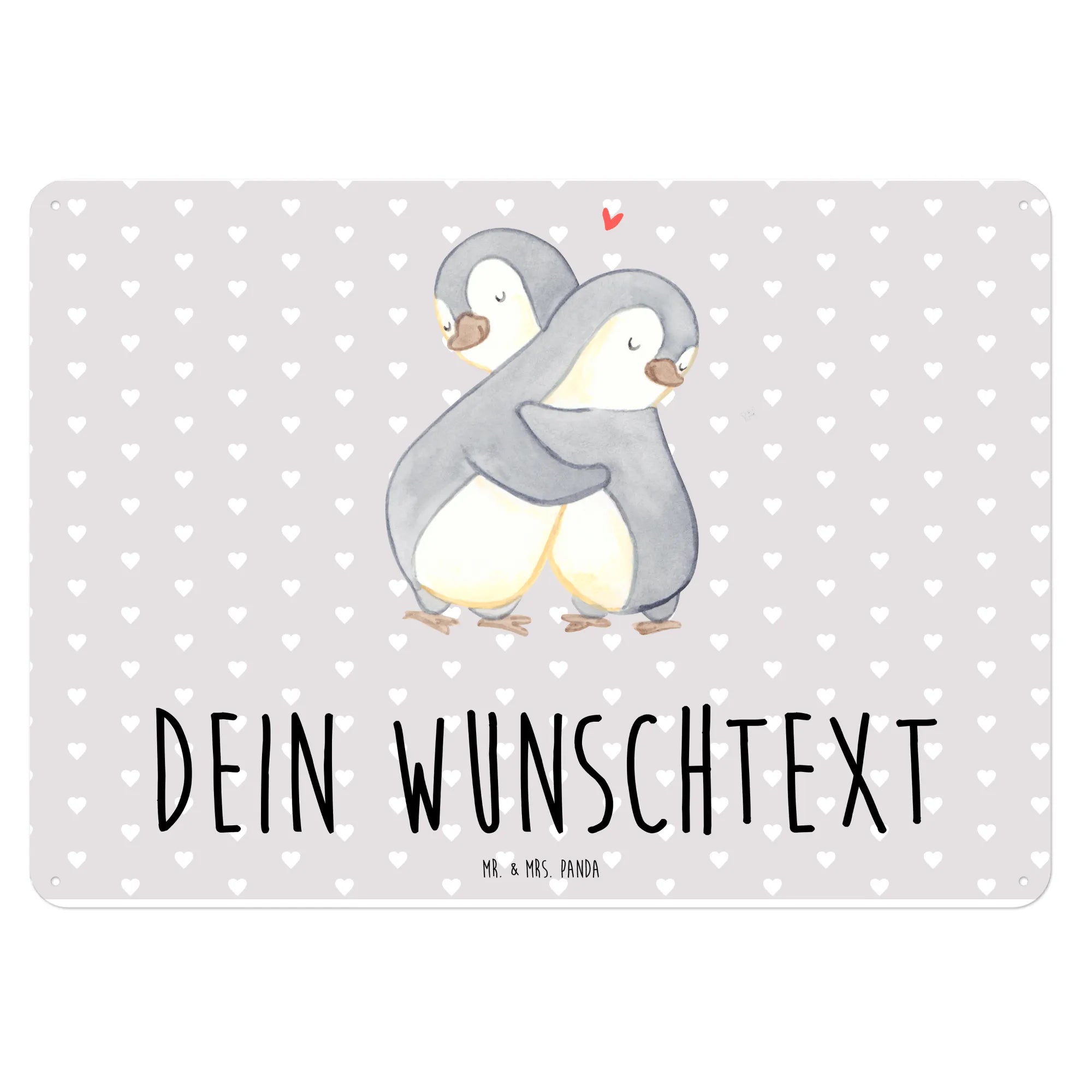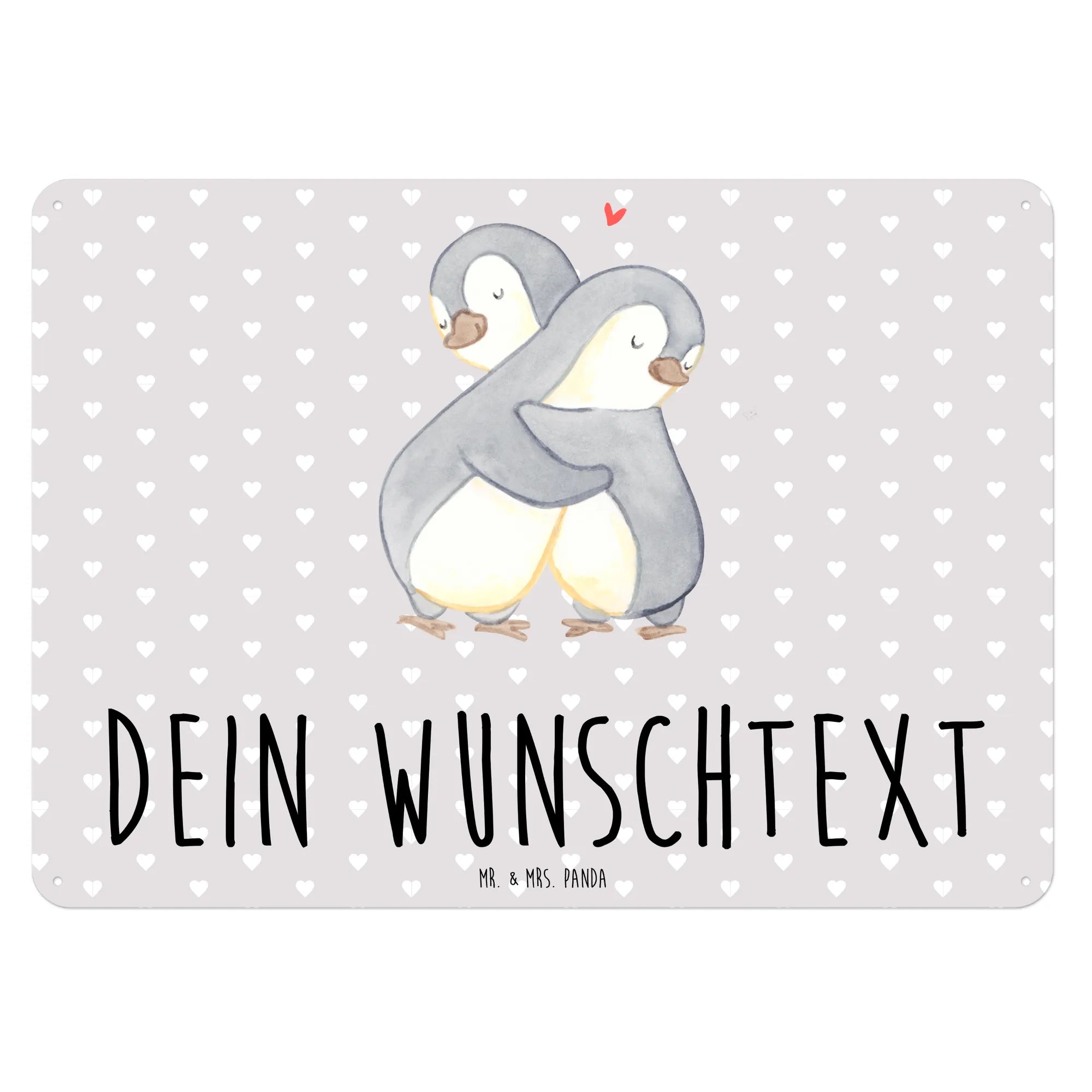 Das personalisierte Blechschild Pinguine Kuscheln von Mr. & Mrs. Panda ist das perfekte Geschenk für alle, die Liebe und Zuneigung ausdrücken möchten. Mit einem Herzen voller Gefühle repräsentieren die zwei süßen Pinguine, die sich innig umarmen, das schönste Gefühl der Welt.