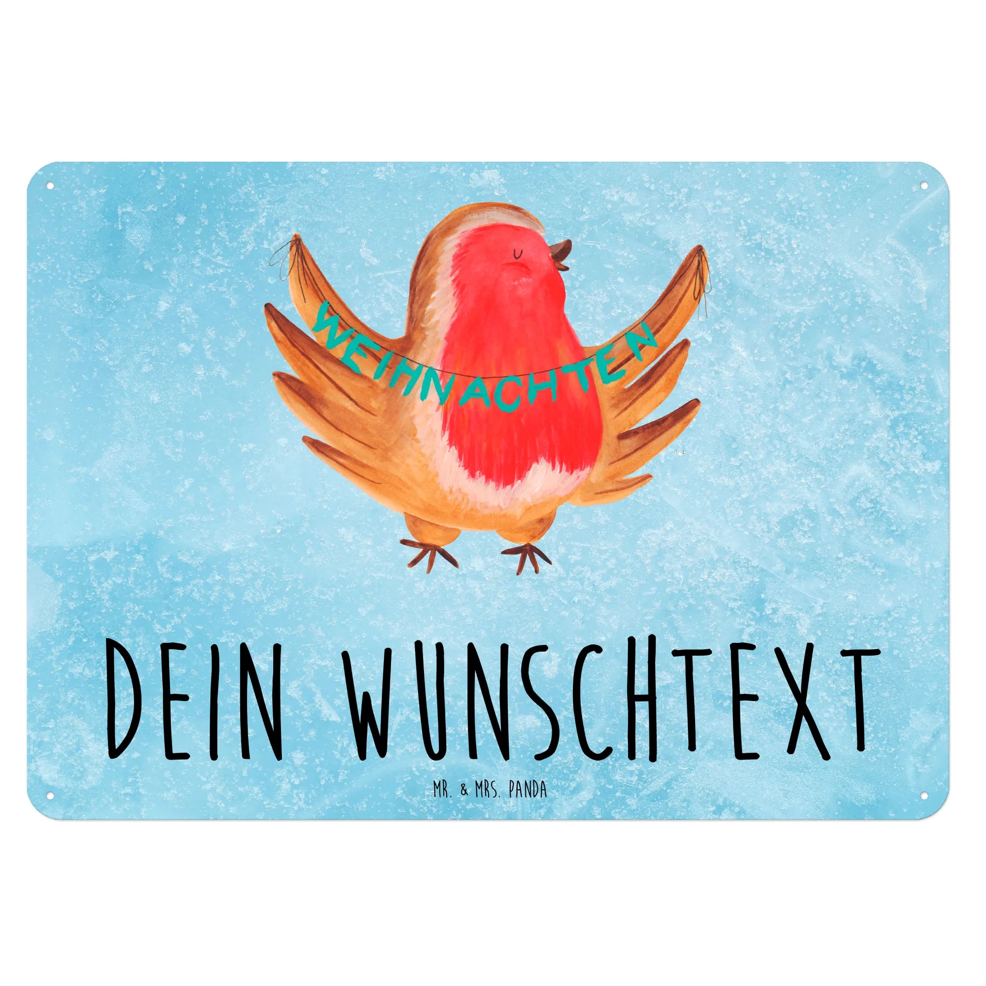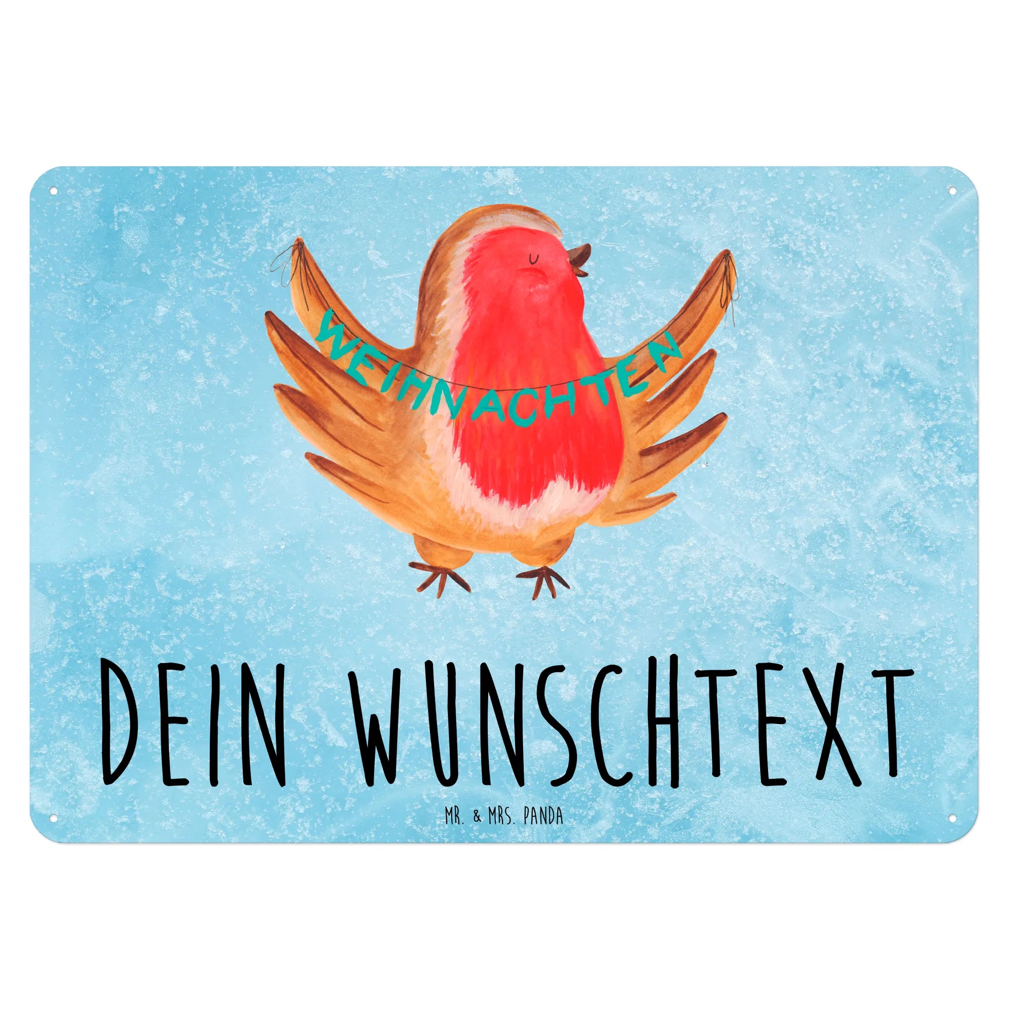 Personalisiertes Blechschild Rotkehlchen Weihnachten – Mr. & Mrs. Panda