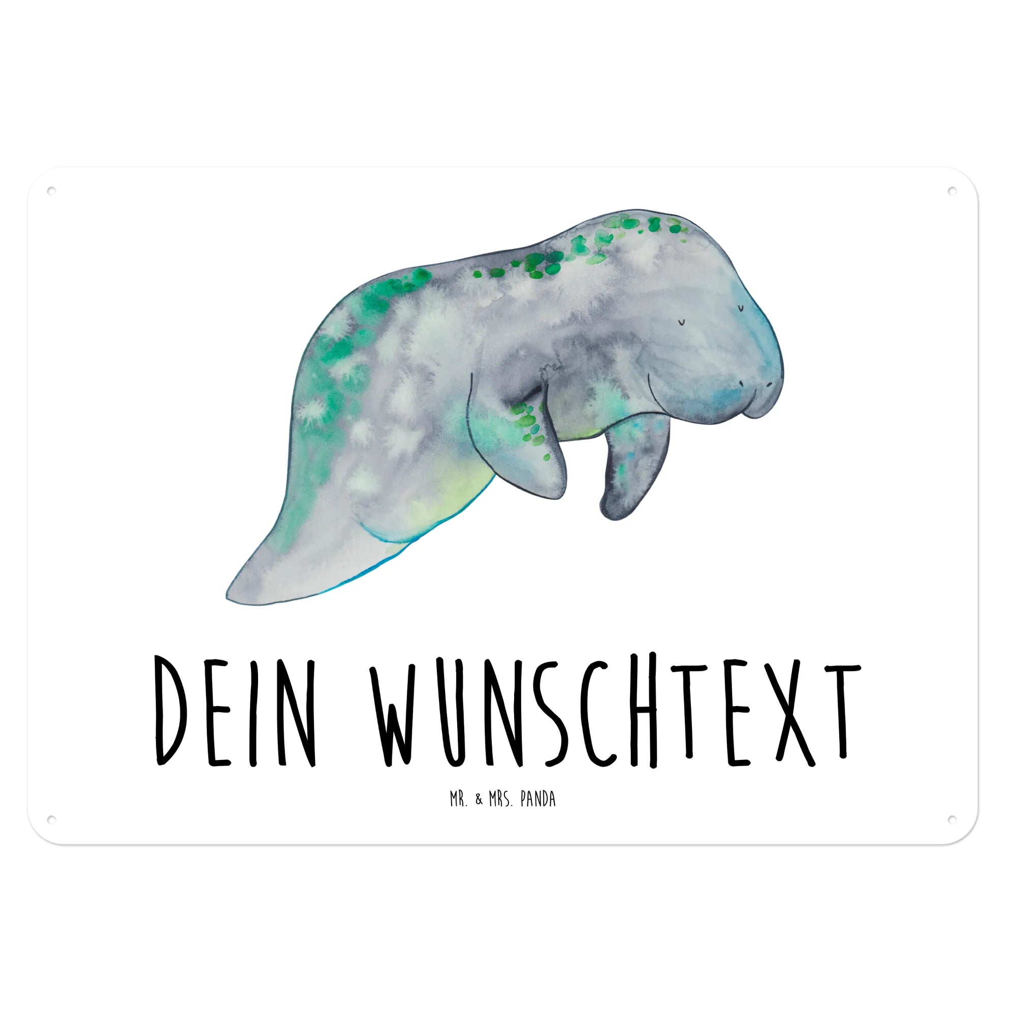 Die liebevoll handgezeichnete Seekuh strahlt Ruhe und Zufriedenheit aus, die durch die sanften blauen und grünen Aquarelltöne noch verstärkt wird. Ob als Dekoration für die Wand, das Türschild oder einfach als witzige Wand-Dekoration, dieses Metallschild macht in jedem Raum eine gute Figur.