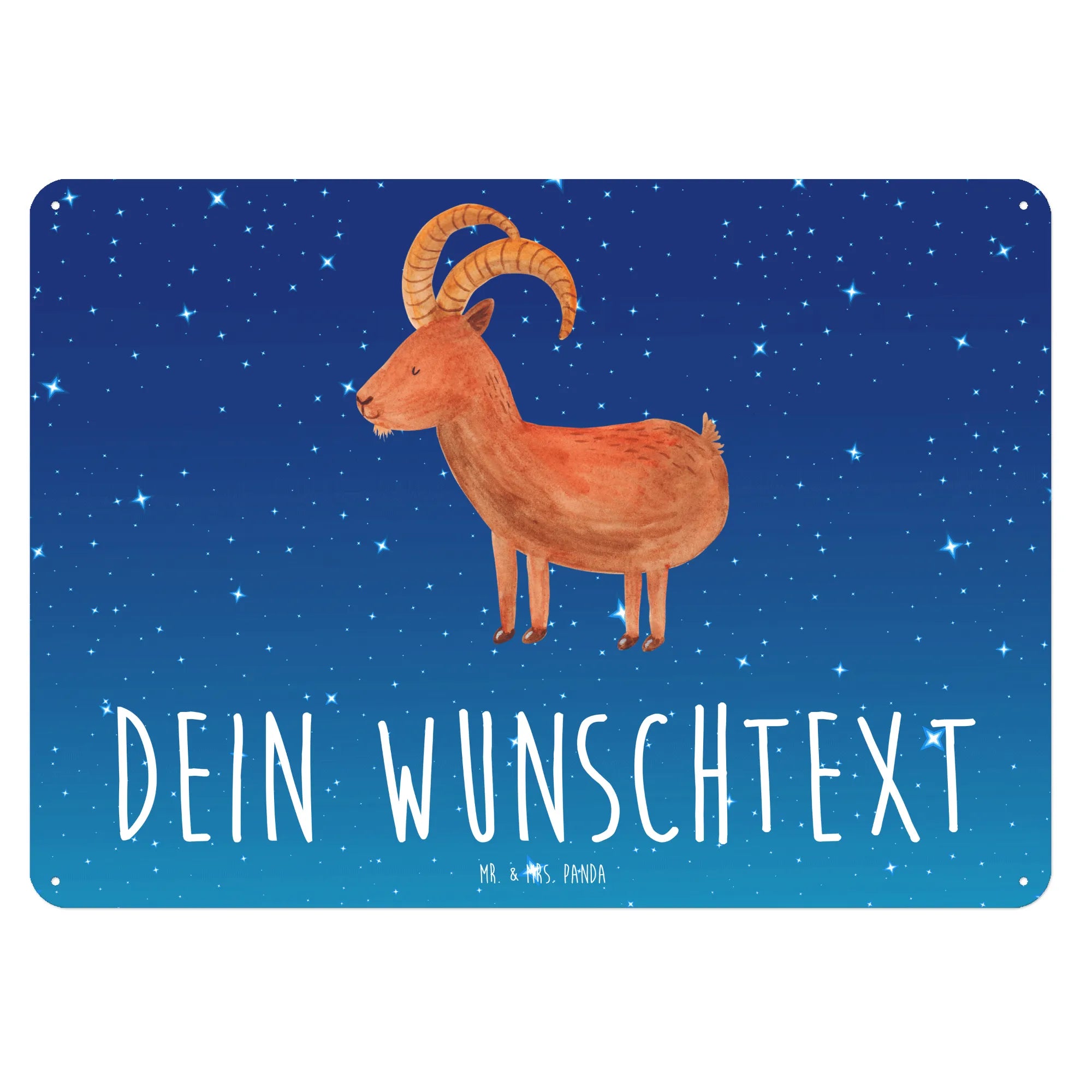 Entdecke das personalisierte Blechschild mit dem wunderbaren Steinbock-Motiv von Mr. & Mrs. Panda. Dieses schöne Metallschild ist nicht nur eine tolle Dekoration für dein Zuhause, sondern auch ein ideales Geschenk für alle Steinbock-Geburtstagskinder, die im Dezember oder Januar das Licht der Welt erblickt haben.