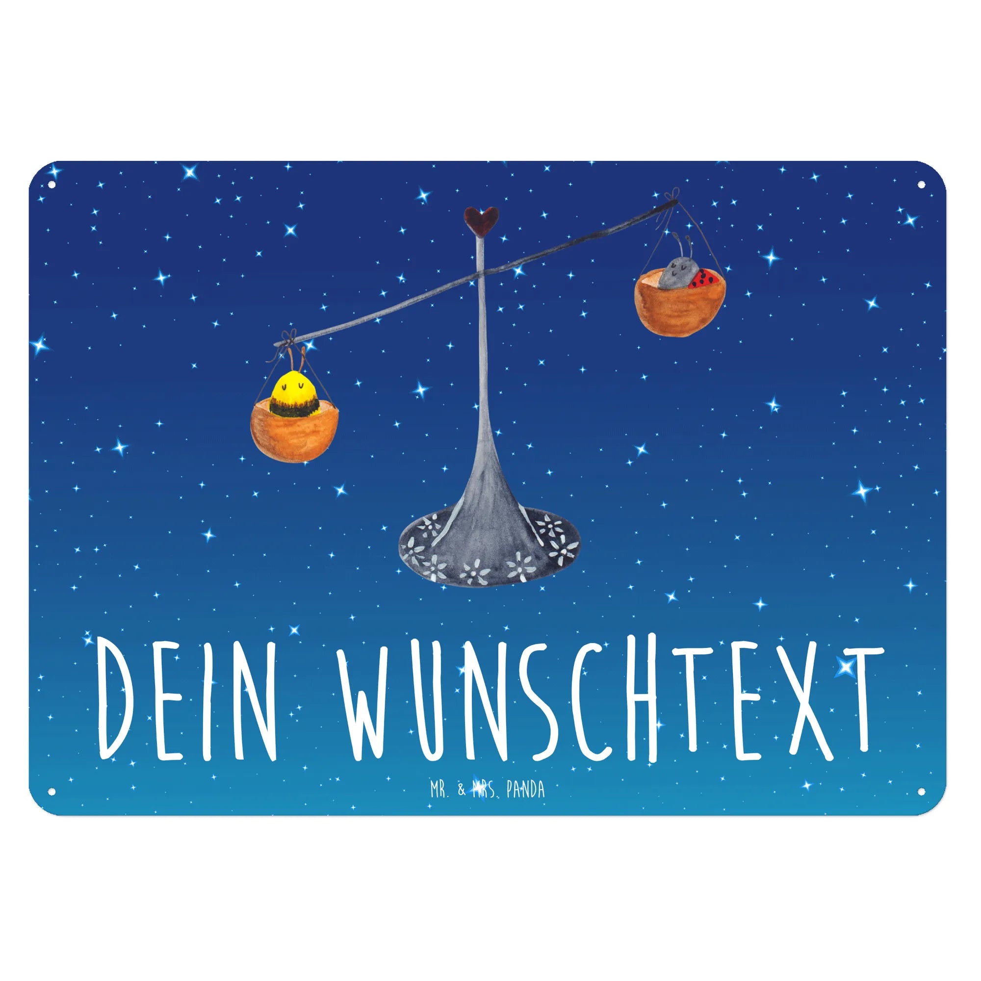 Das personalisierte Blechschild mit dem Sternzeichen Waage von Mr. & Mrs. Panda ist das perfekte Geschenk für alle, die im September und Oktober das Licht der Welt erblickt haben. Mit seinem charmanten Motiv, das eine klassisch ausbalancierte Waage zeigt, wird es zum idealen Dekorationsobjekt für Freunde, Familie oder für dich selbst.