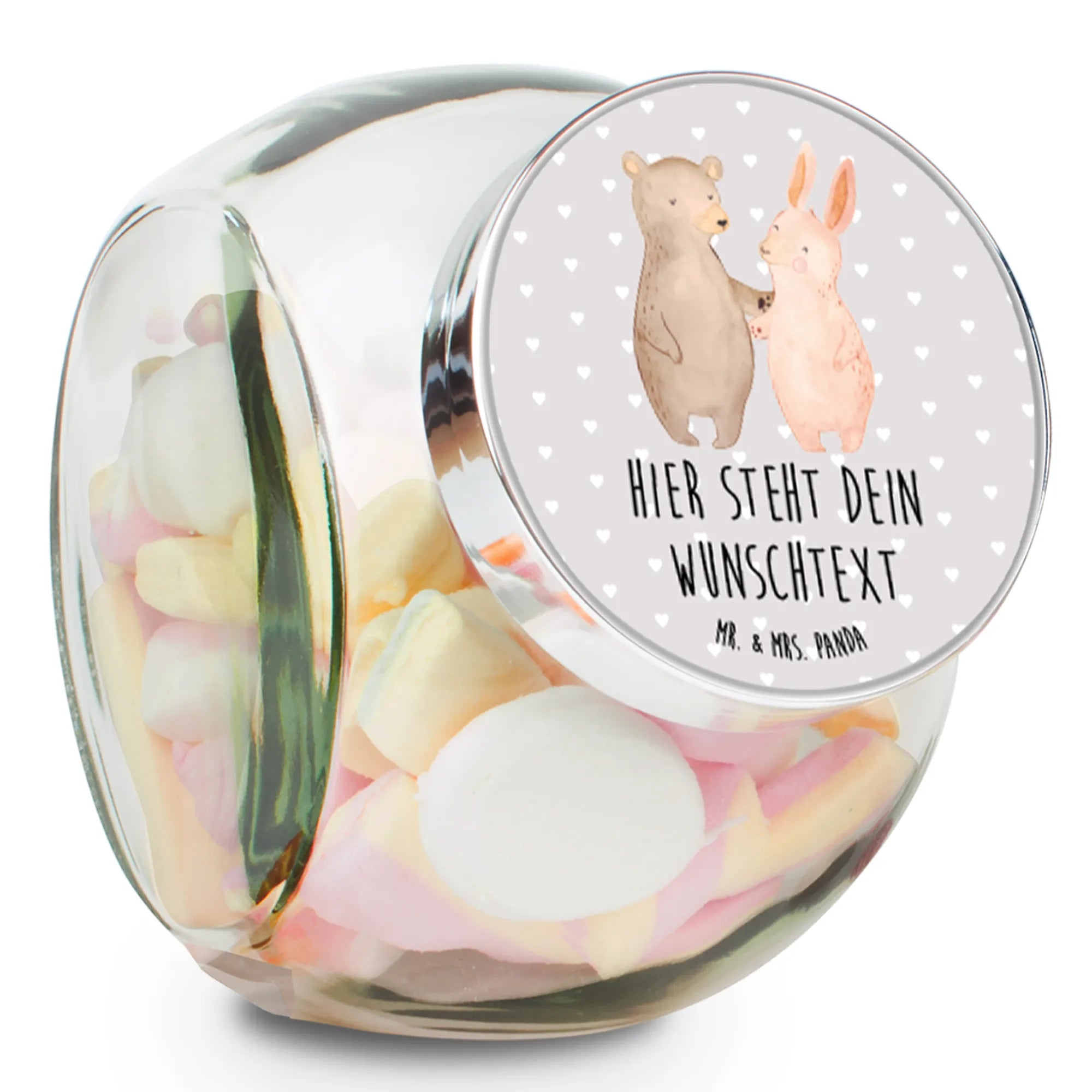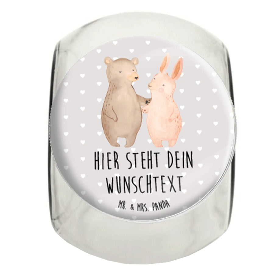 Personalisiertes Bonbonglas Bär und Hase Umarmen - XL 2000ml - Grau Pastell