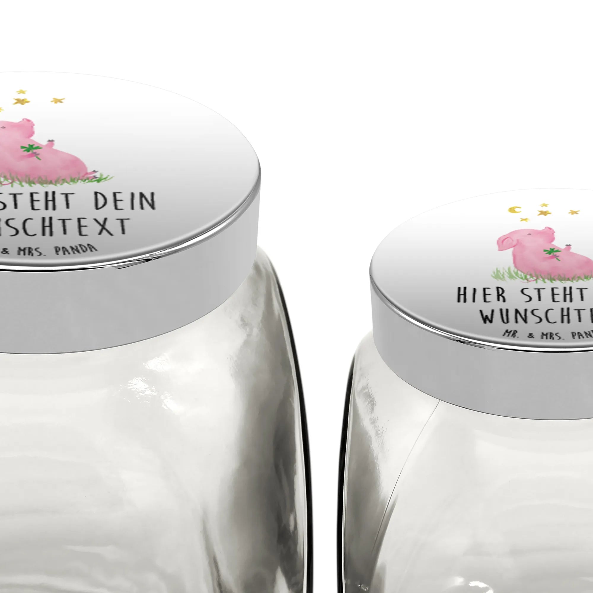 Entdecke das personalisierte Bonbonglas mit dem fröhlichen Glücksschwein-Motiv von Mr. & Mrs. Panda! Dieses zauberhafte Vorratsglas ist nicht nur ein echter Hingucker in deiner Küche, sondern erfüllt auch noch viele nützliche Funktionen. Stell dir vor, du hast all deine Süßigkeiten, Kekse oder sogar deinen Kaffee und Tee perfekt organisiert – in einem schönen Glas, das deinen persönlichen Stil widerspiegelt!