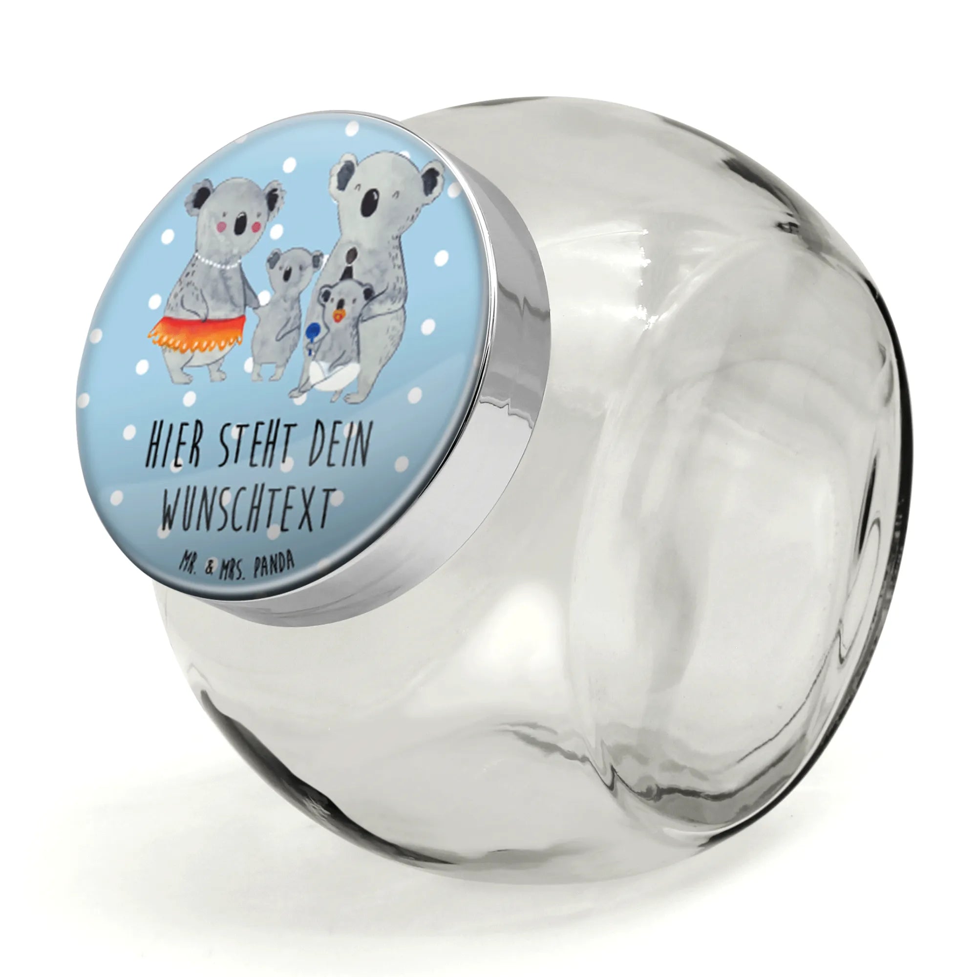 Verschenke Freude und Stil mit unserem personalisierten Bonbonglas im zauberhaften Koala Familie Motiv von Mr. & Mrs. Panda! Dieses wunderschöne Vorratsglas ist mehr als nur eine Aufbewahrungsmöglichkeit – es ist ein langlebiges Erinnerungstück für deine Liebsten.