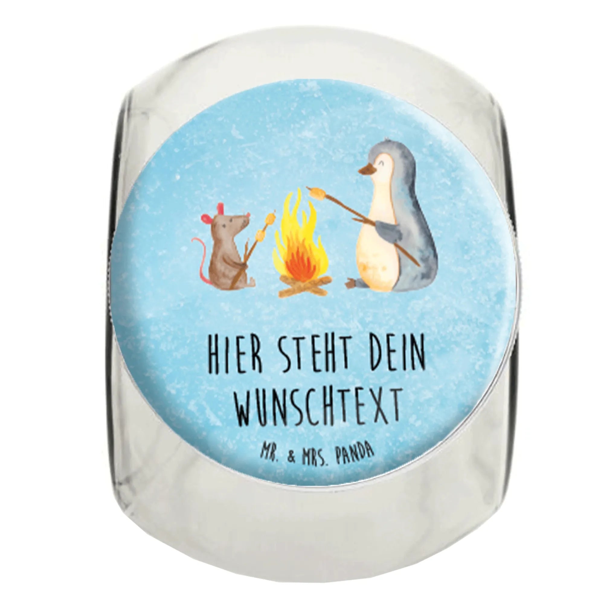 Entdecke das personalisierte Bonbonglas mit dem bezaubernden Pinguin Lagerfeuer Motiv von Mr. & Mrs. Panda! Es ist mehr als nur ein Aufbewahrungsbehälter; es ist eine niedliche Dekoration für deine Küche und ein perfektes Geschenk für Freunde, Familie oder auch für dich selbst.