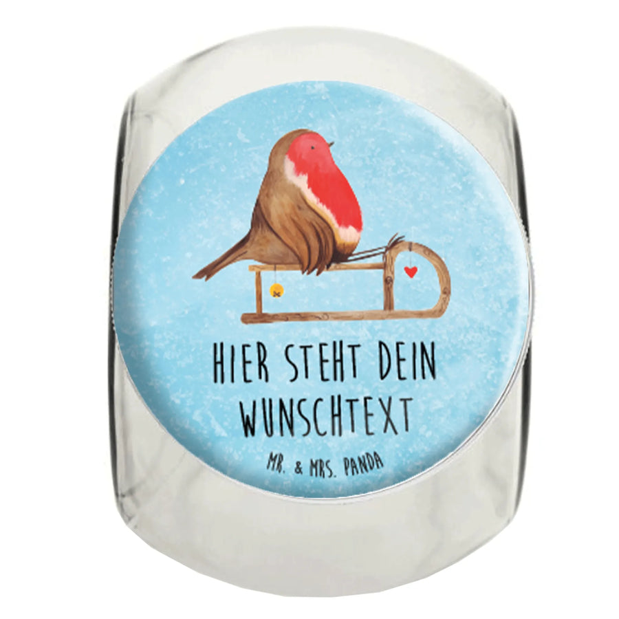 Personalisiertes Bonbonglas Rotkehlchen Schlitten - XL 2000ml - Eisblau