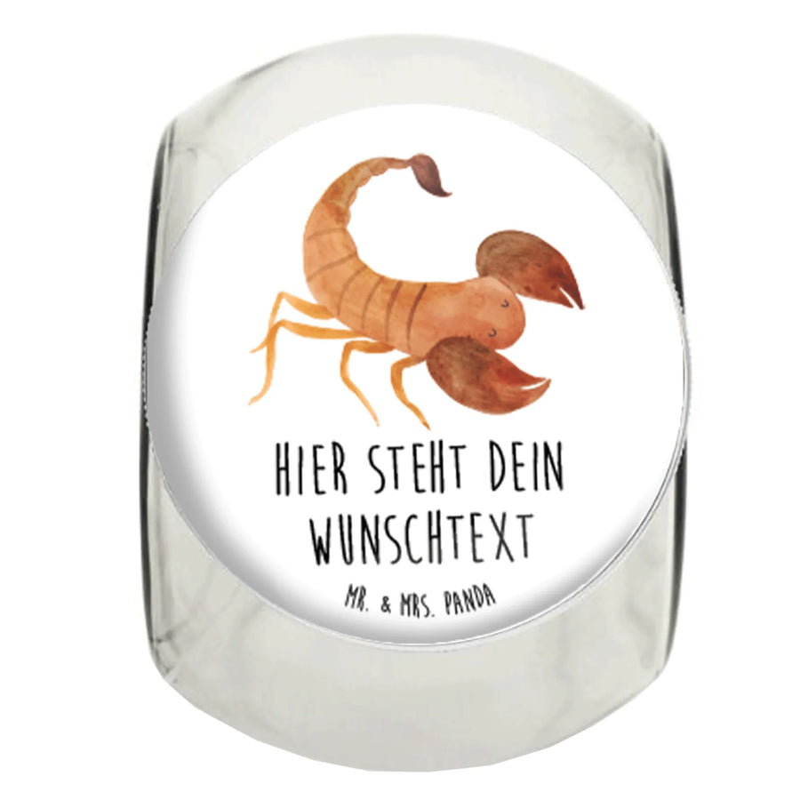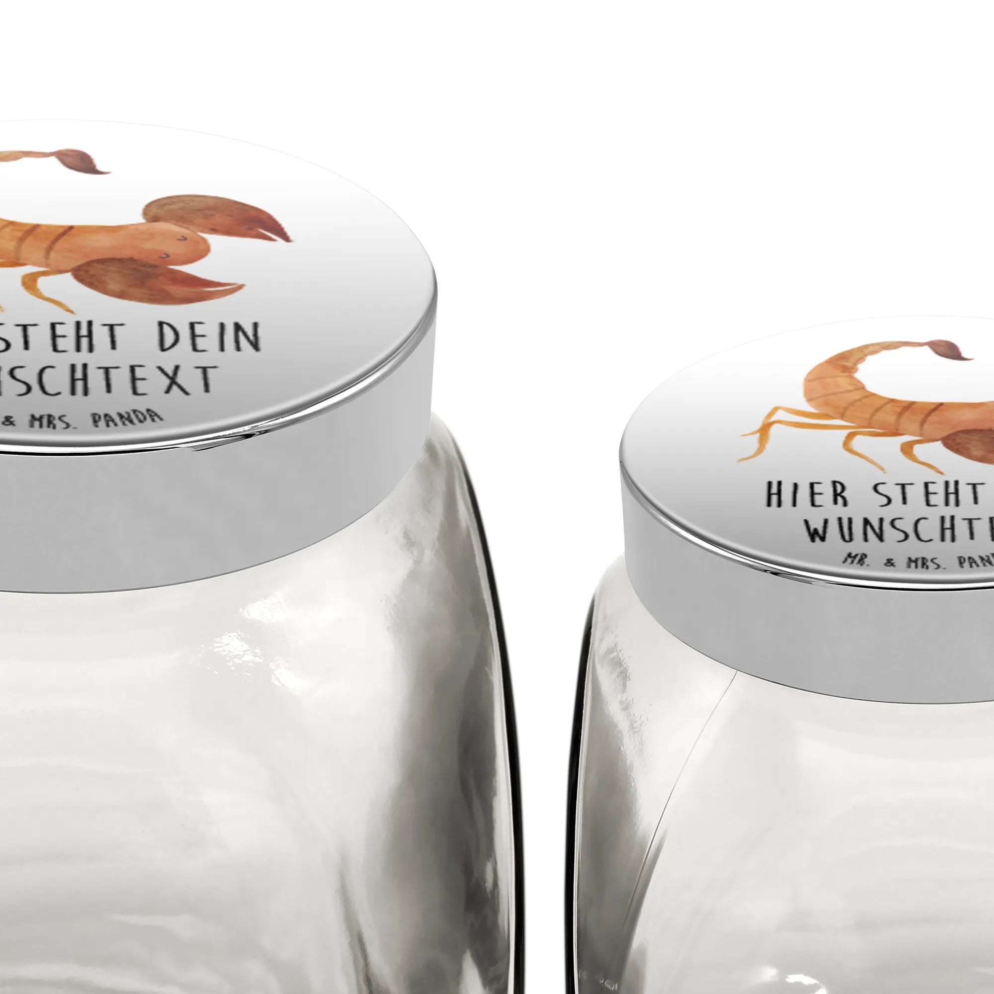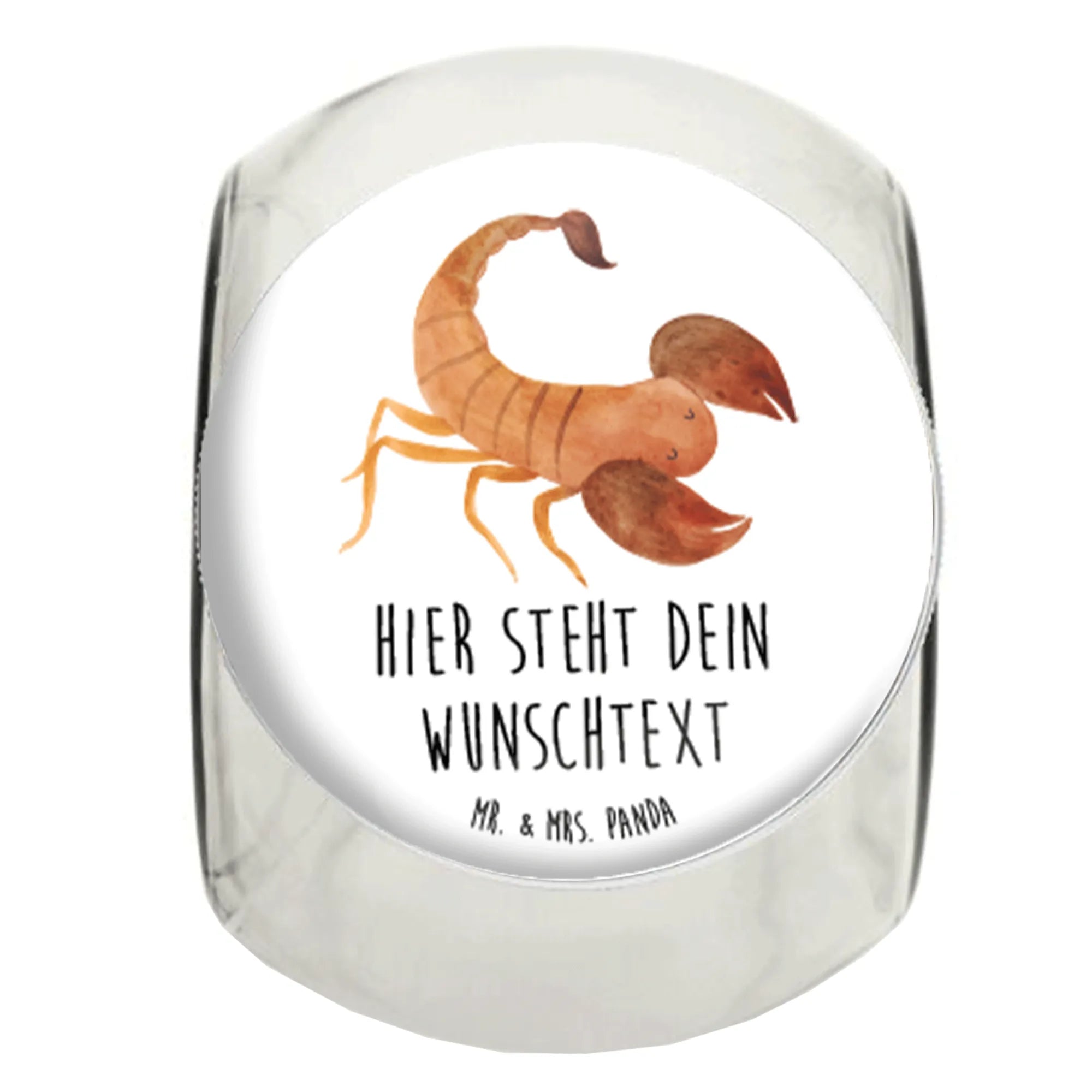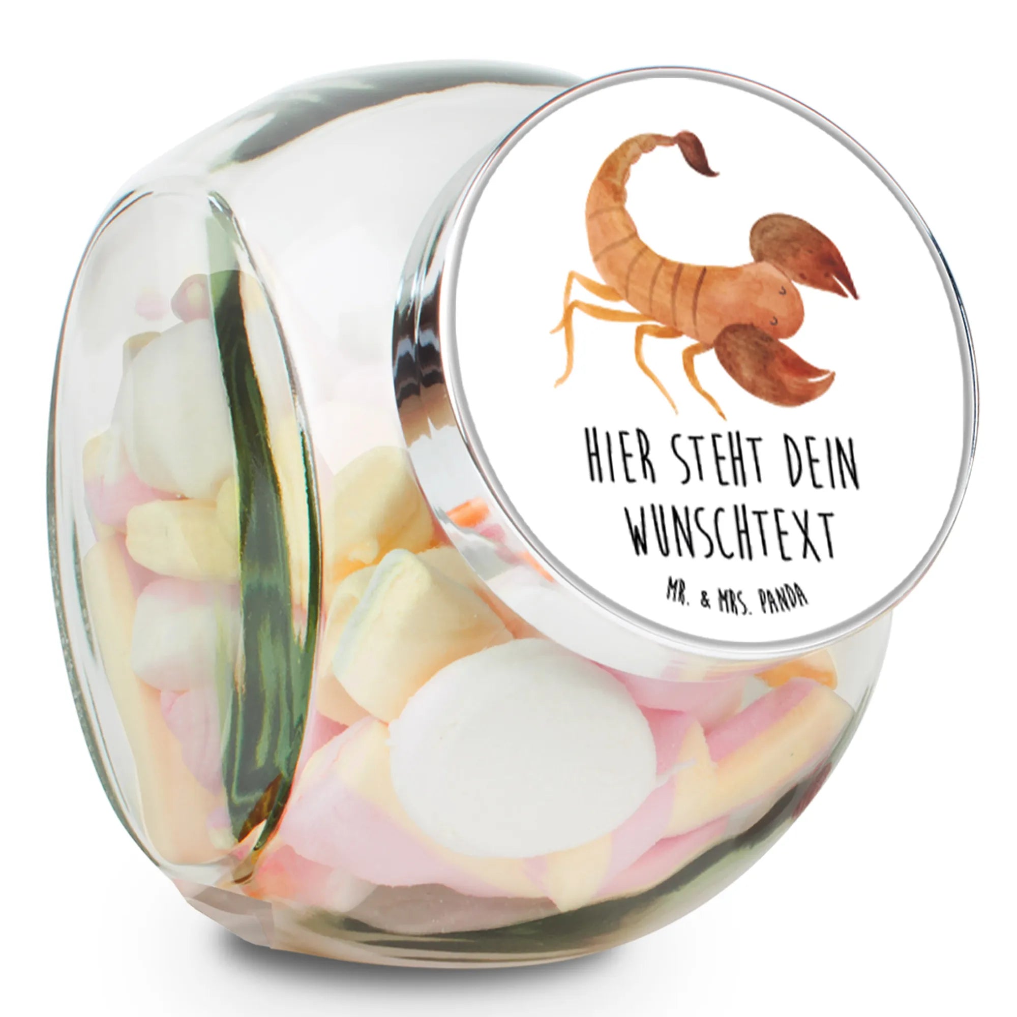 Das personalisierte Bonbonglas mit dem Motiv Sternzeichen Skorpion aus der einzigartigen Sternzeichen-Kollektion von Mr. & Mrs. Panda ist das ideale Geschenk für alle, die im Oktober und November geboren wurden oder einfach eine Schwäche für den Skorpion haben. Mit einem Füllvolumen von 870 ml bietet es ausreichend Platz für Bonbons, Kekse, Tee oder Gewürze.