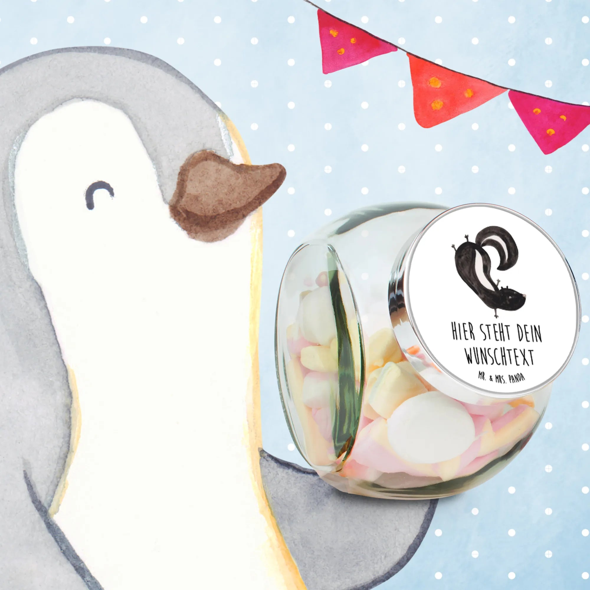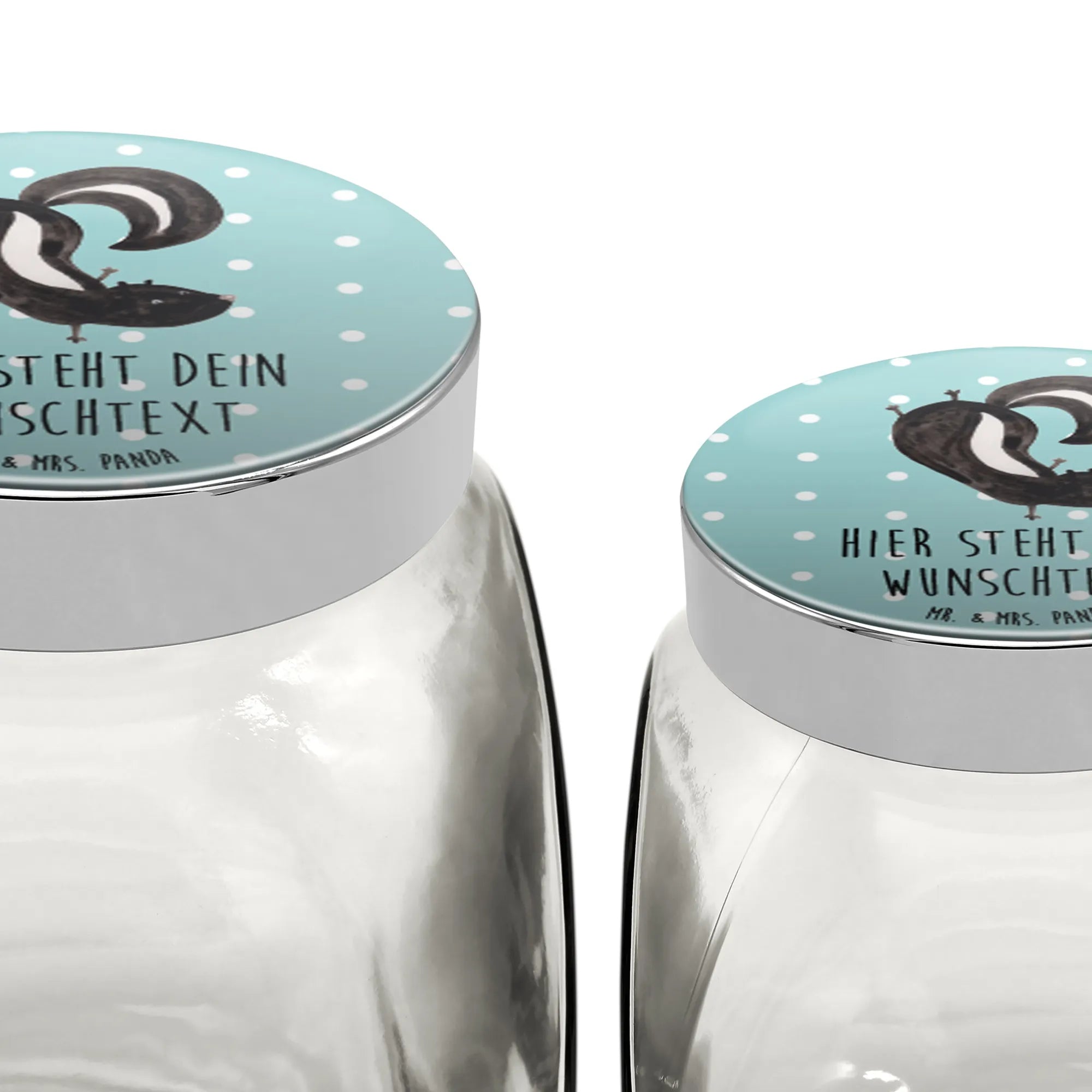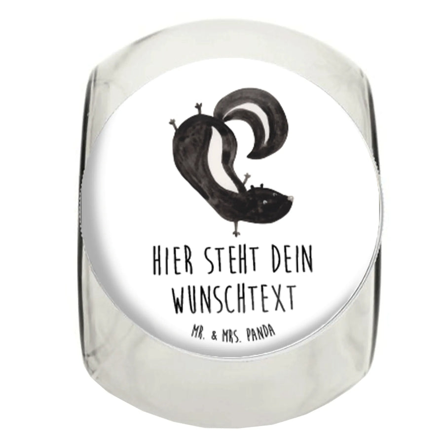Du liebst süße Leckereien und möchtest sie stylish aufbewahren? Dann ist das personalisierte Bonbonglas mit dem süßen Stinktier Handstand Motiv von Mr. & Mrs. Panda genau das Richtige für dich! Mit einem Füllvolumen von 870 ml bietet dieses hochwertige Glas genug Platz für all deine Lieblingssnacks, egal ob Bonbons, Kekse, Müsli oder sogar Tee und Gewürze.