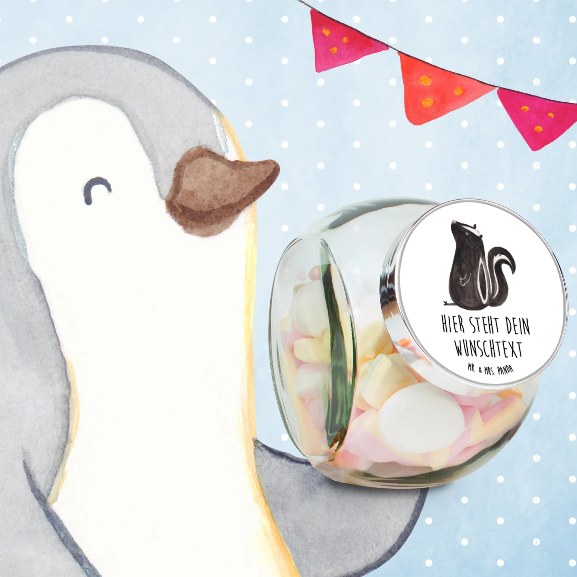 Personalisiertes Bonbonglas Stinktier sitzend – Mr. & Mrs. Panda