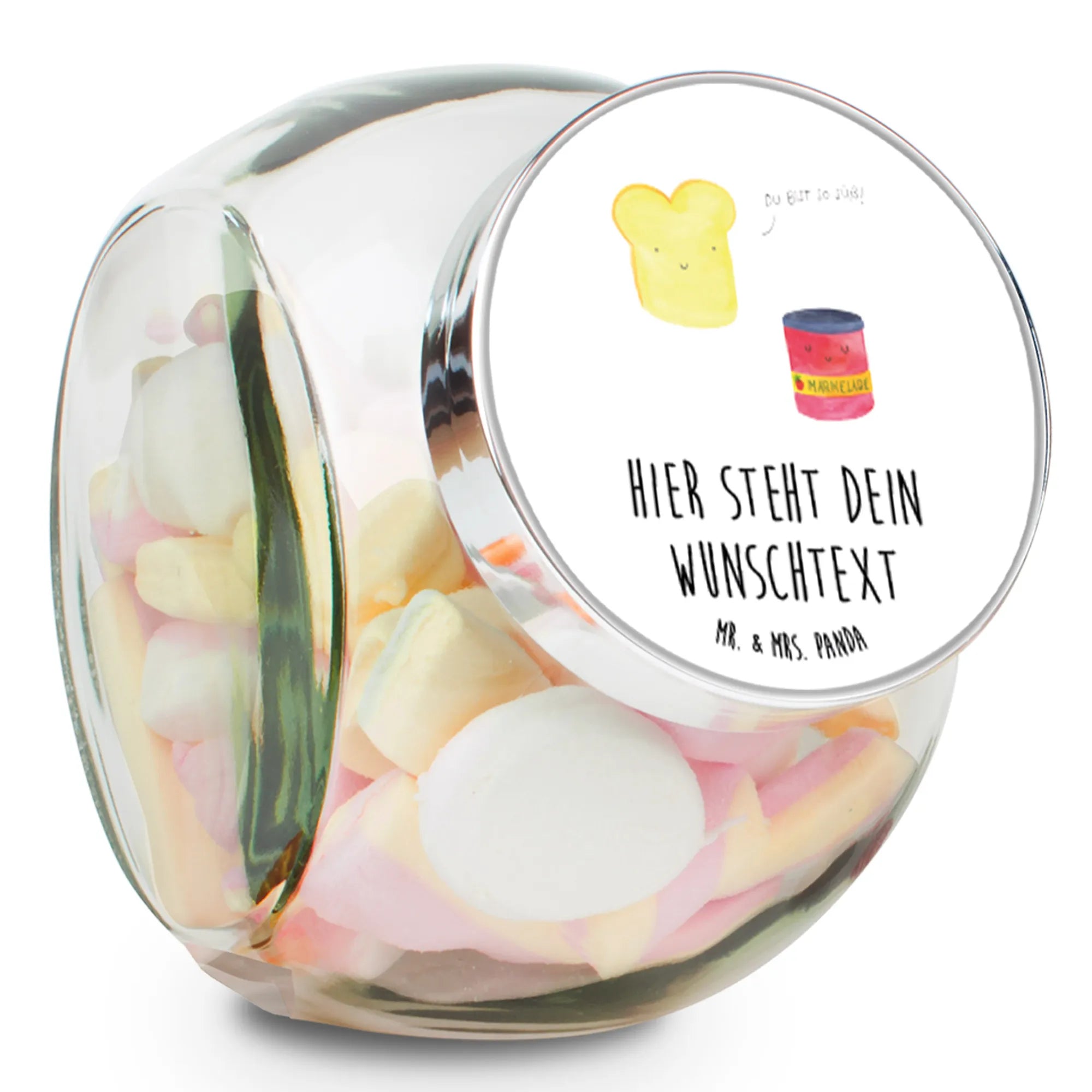 Das personalisierte Bonbonglas mit dem Motiven Toast & Marmelade aus der bezaubernden Small World Kollektion von Mr. & Mrs. Panda ist das perfekte Geschenk für alle, die das Besondere lieben.
