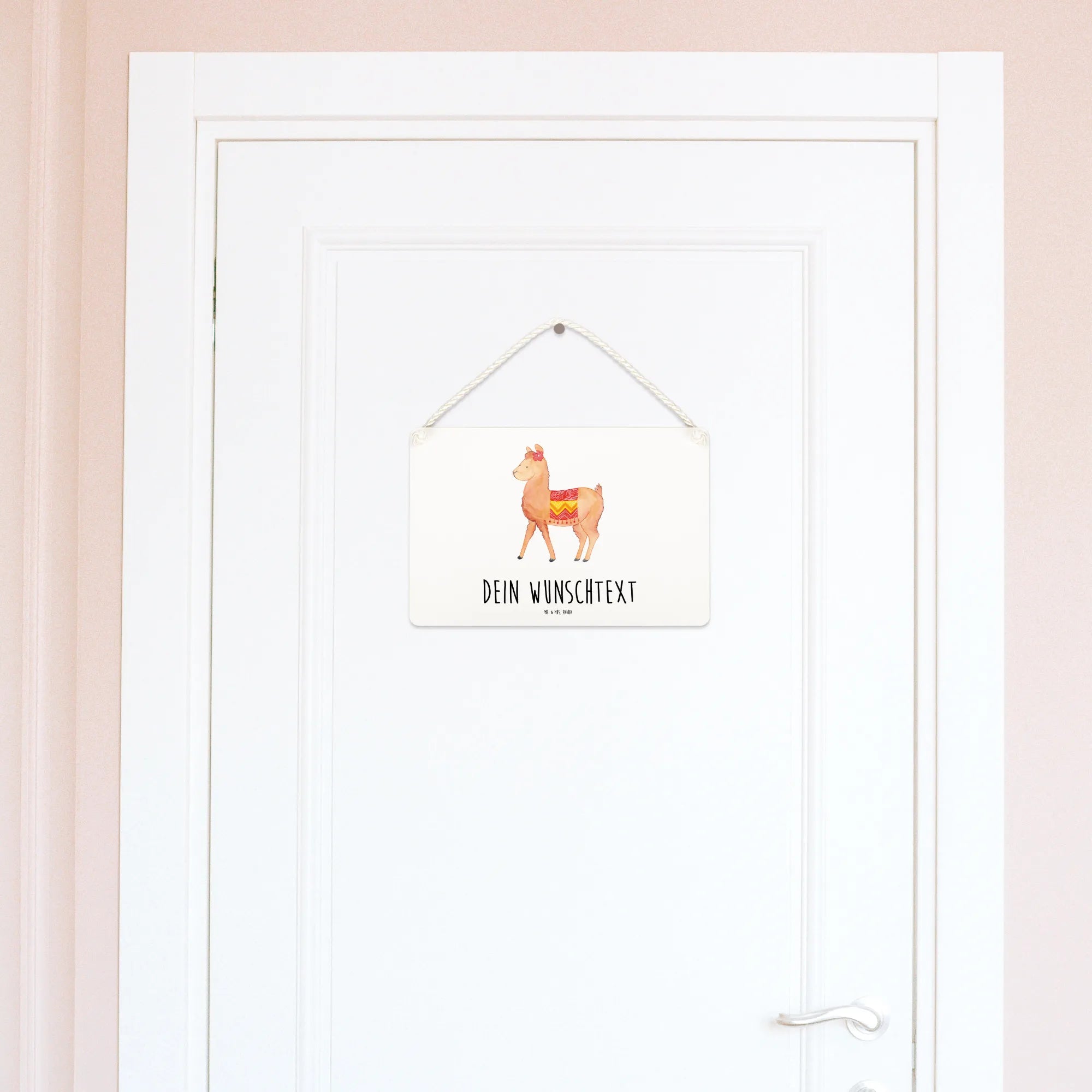 Personalisiertes Deko Schild Alpaka stolz - DIN A6 - Weiß