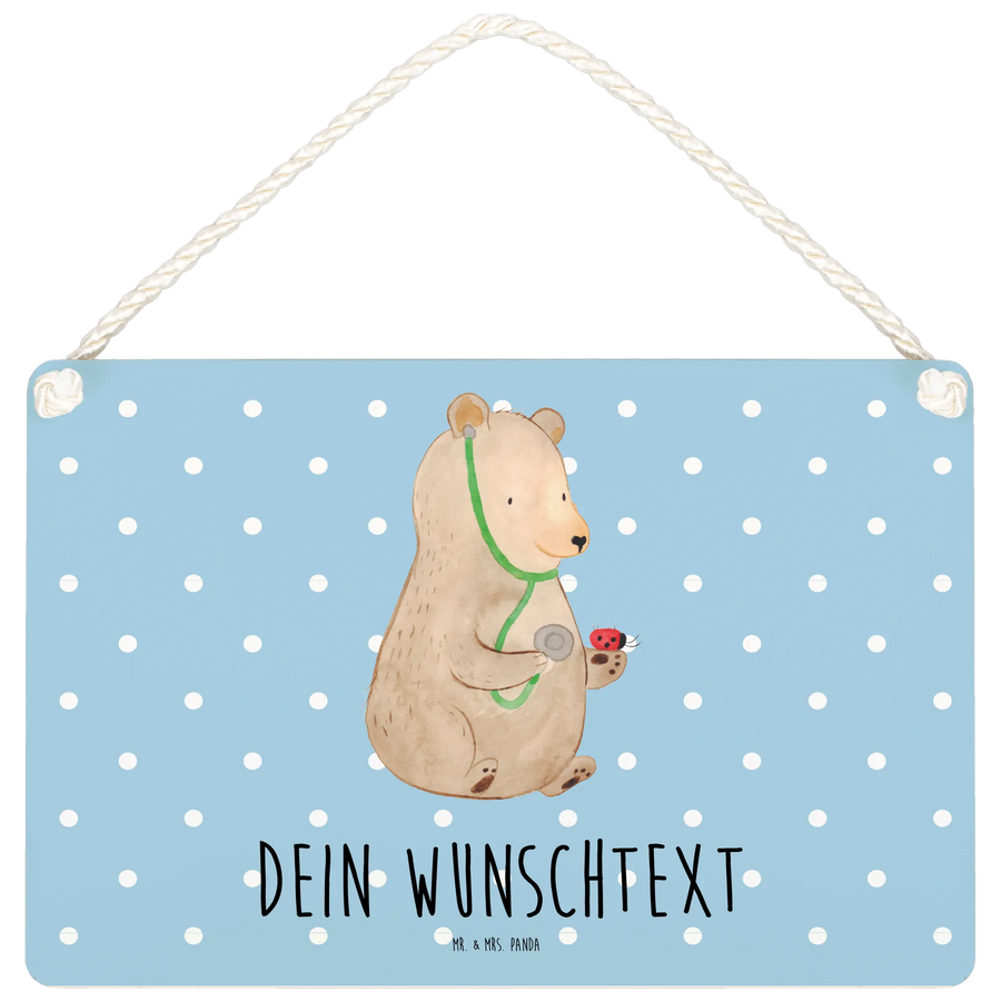 Personalisiertes Deko Schild Bär Arzt - DIN A6 - Blau Pastell
