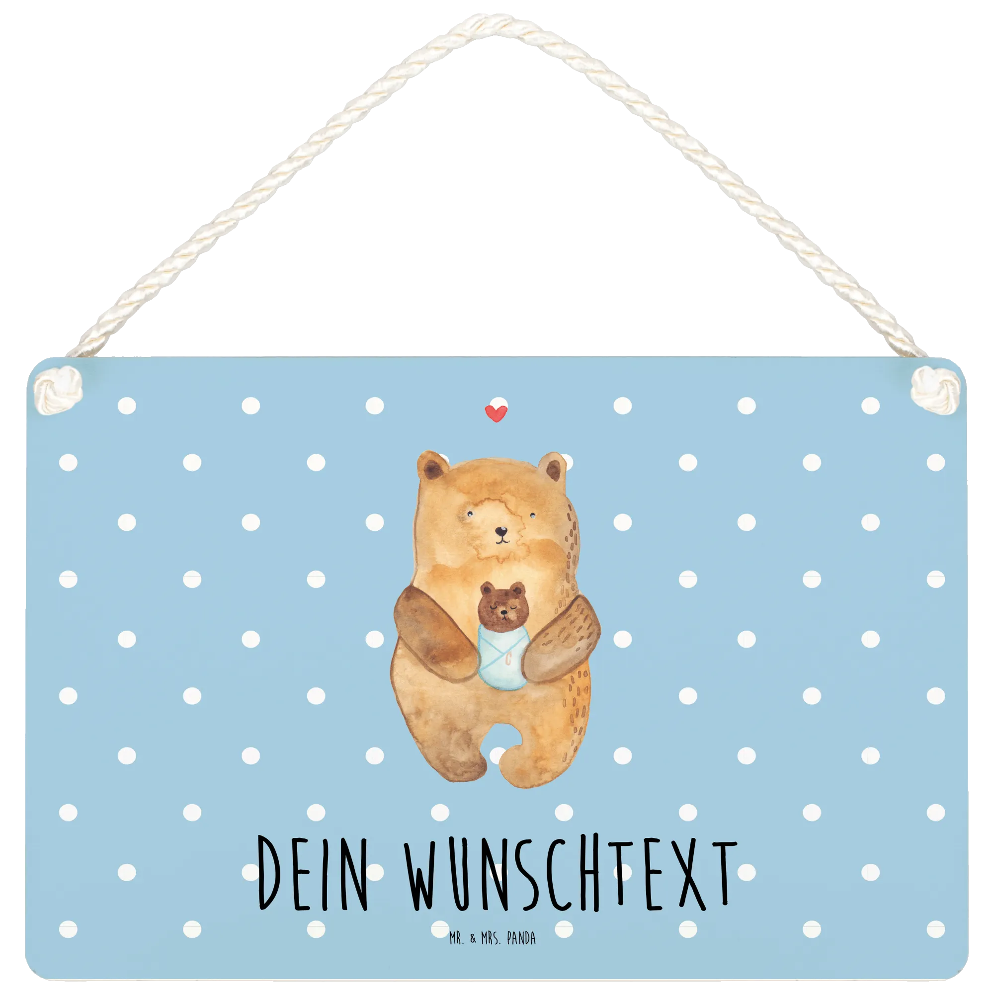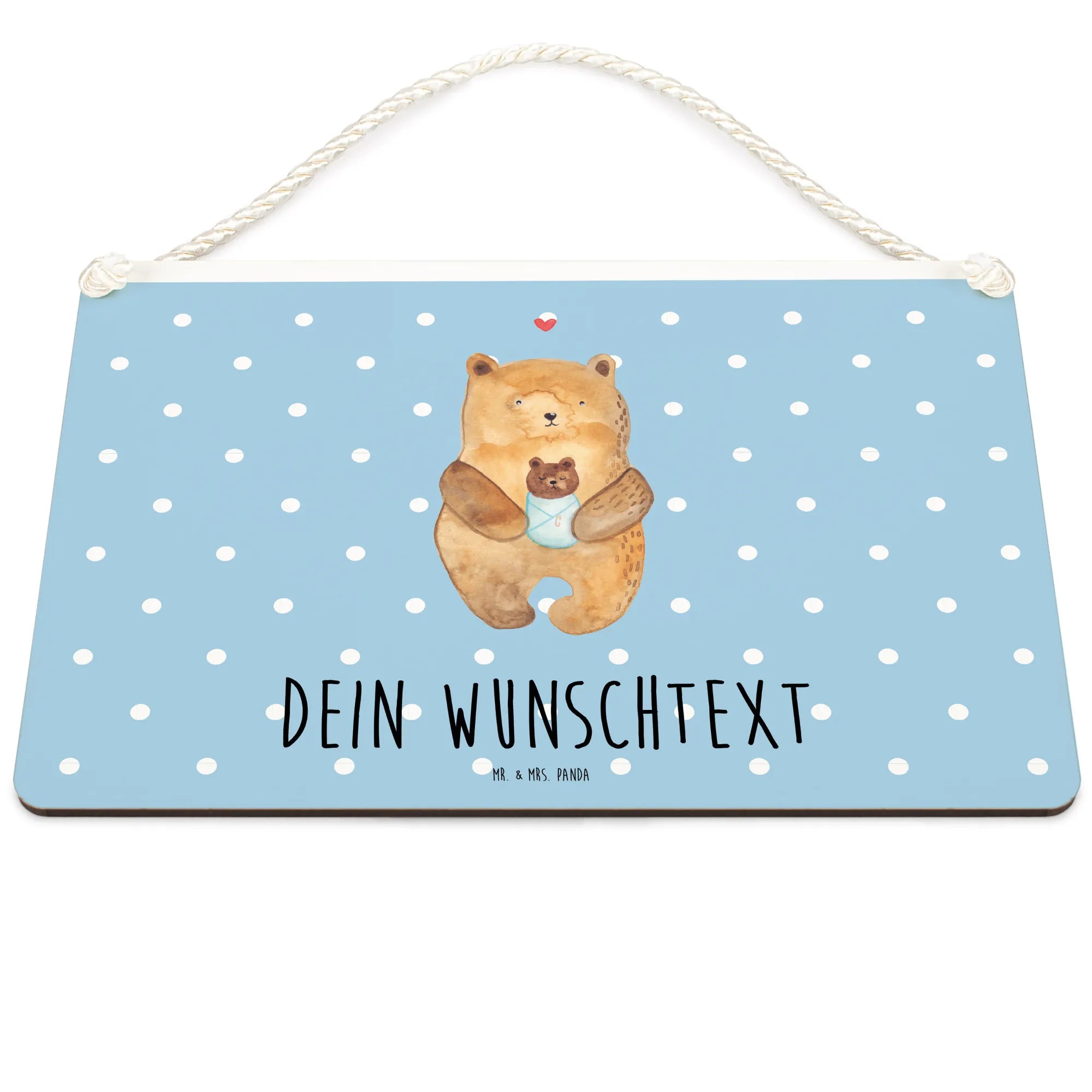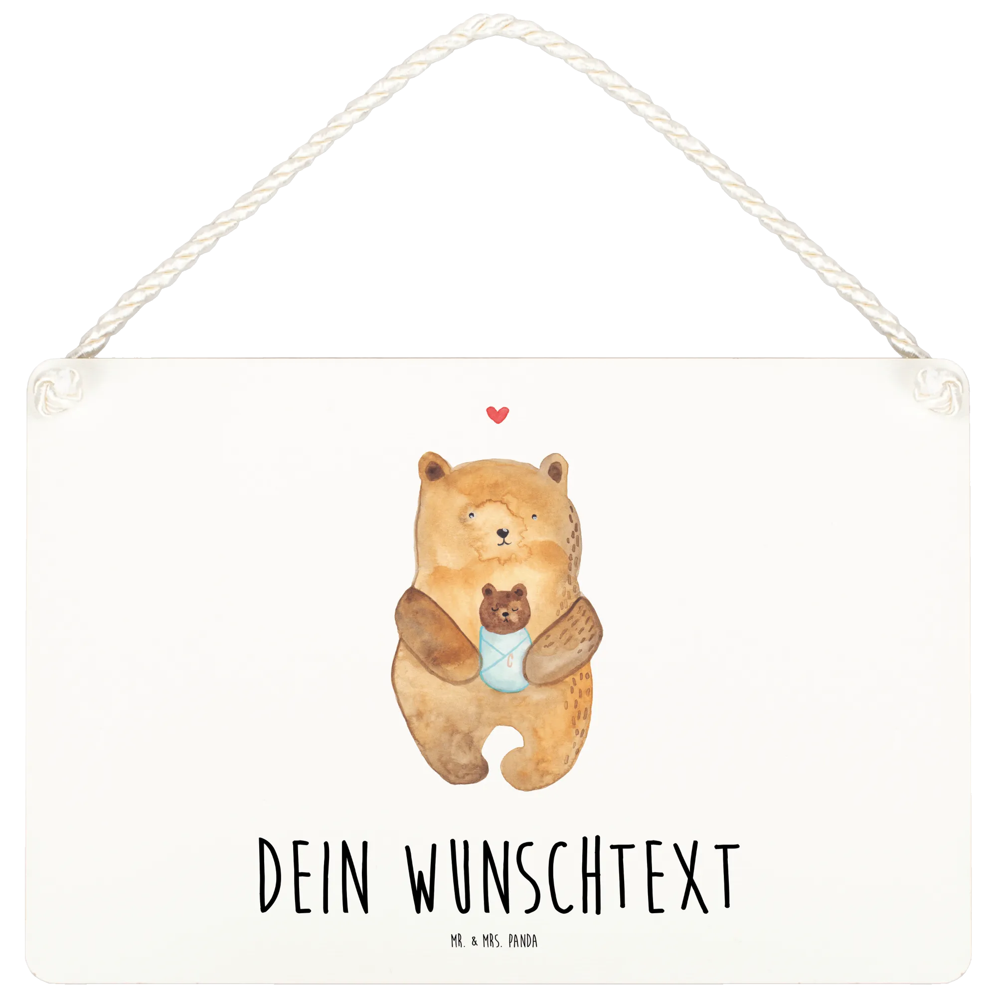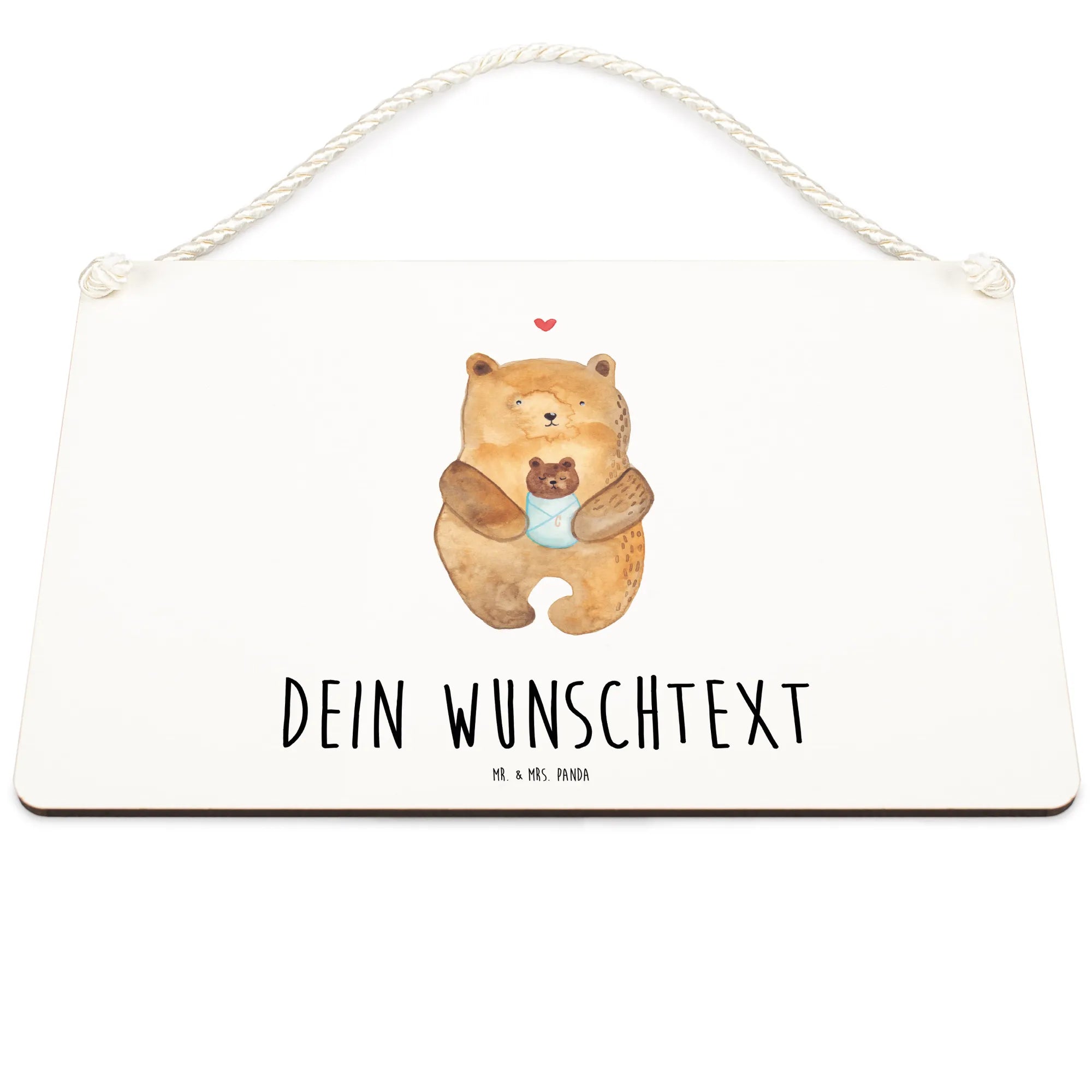 Das personalisierte Deko Schild mit dem niedlichen Motiv "Bär mit Baby" von Mr. & Mrs. Panda ist das perfekte Geschenk für frisch gebackene Eltern, Tanten, Onkel und Großeltern.