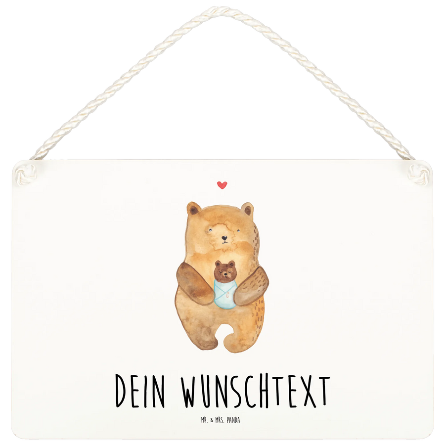 Besonders schön ist das süße Motiv, das einen Bären zeigt, der sein kleines Baby im Arm hält. Das Schild ist personalisierbar mit deinem Wunschnamen oder einem eigenen Text und sorgt so für eine individuelle Note, die jedes Geschenk ganz besonders macht.