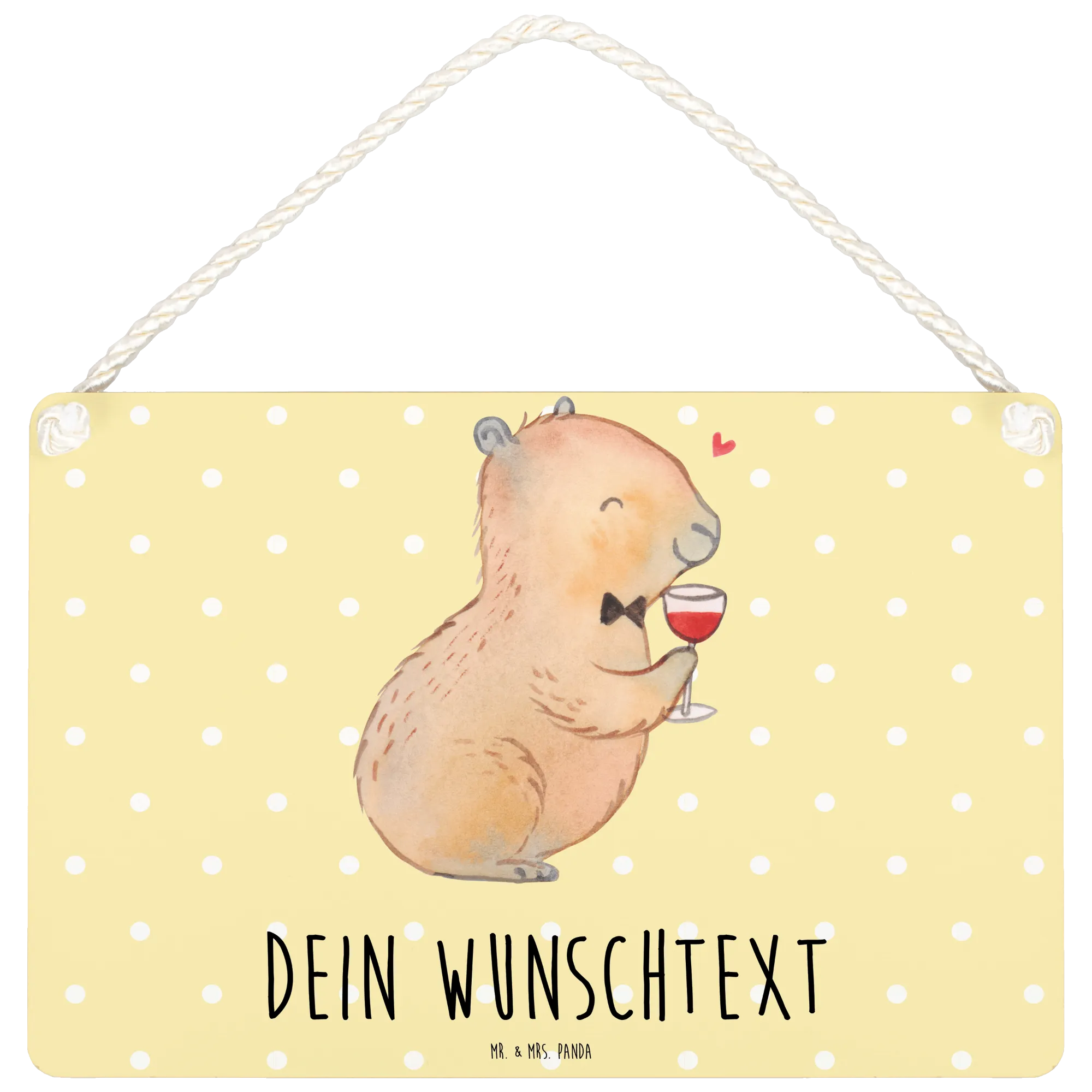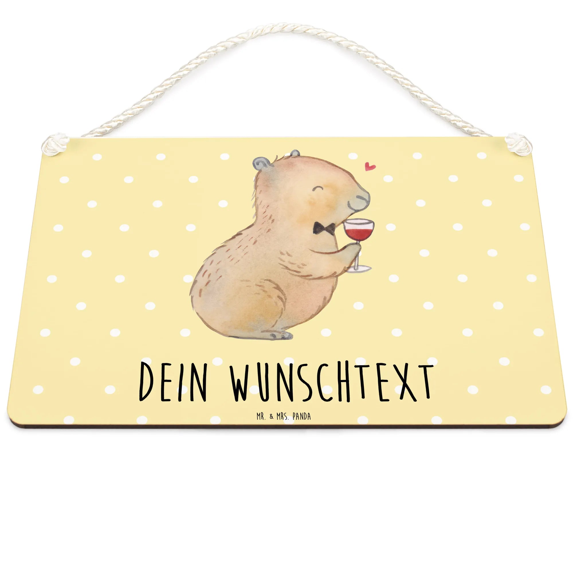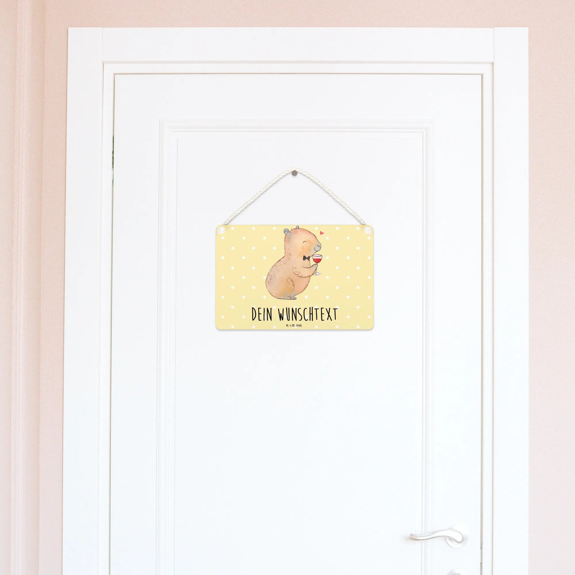 Das personalisierte Deko Schild mit dem charmanten Motif des weintrinkenden Capybaras aus der Small World Kollektion von Mr. & Mrs. Panda ist das ideale Geschenk für jeden Weinliebhaber.
