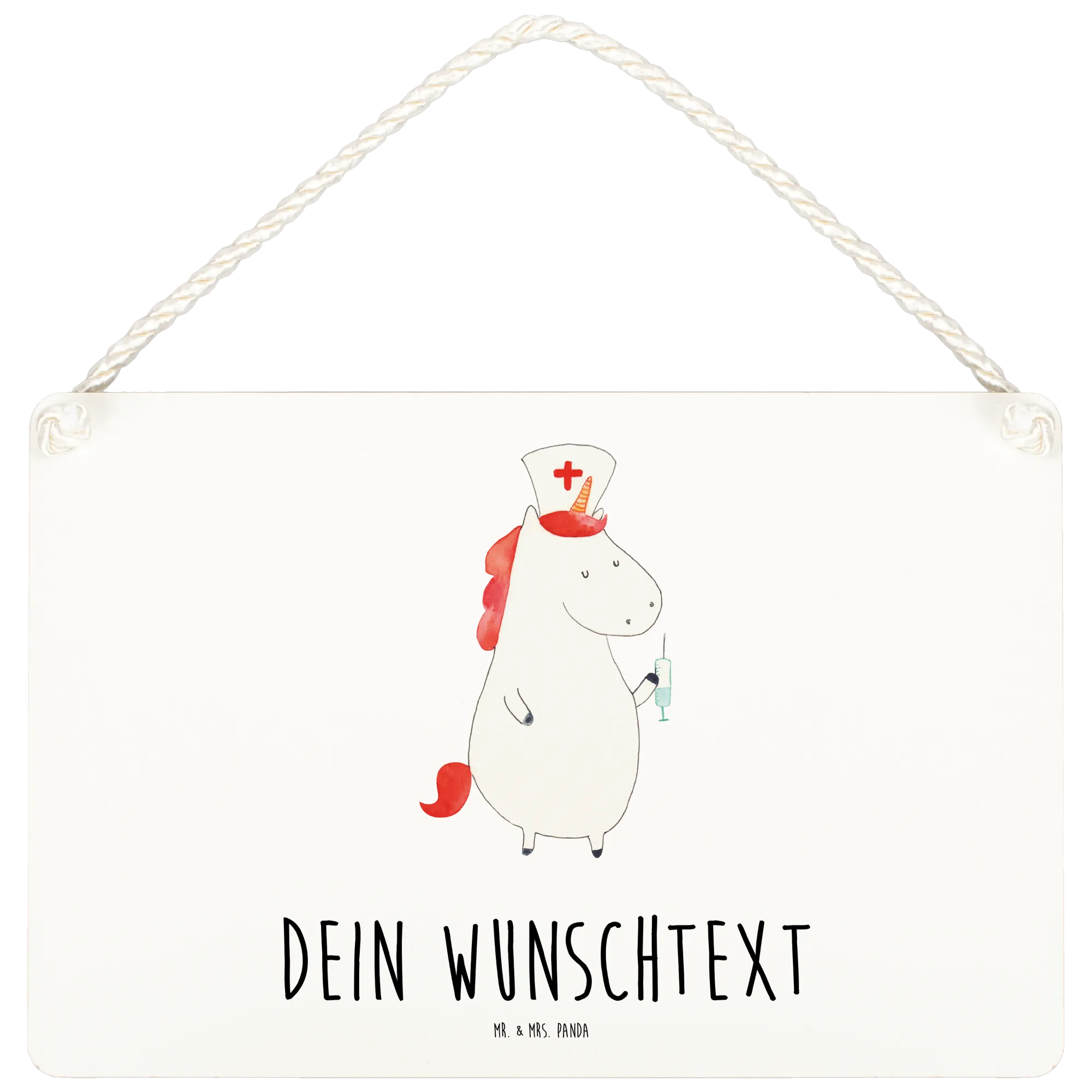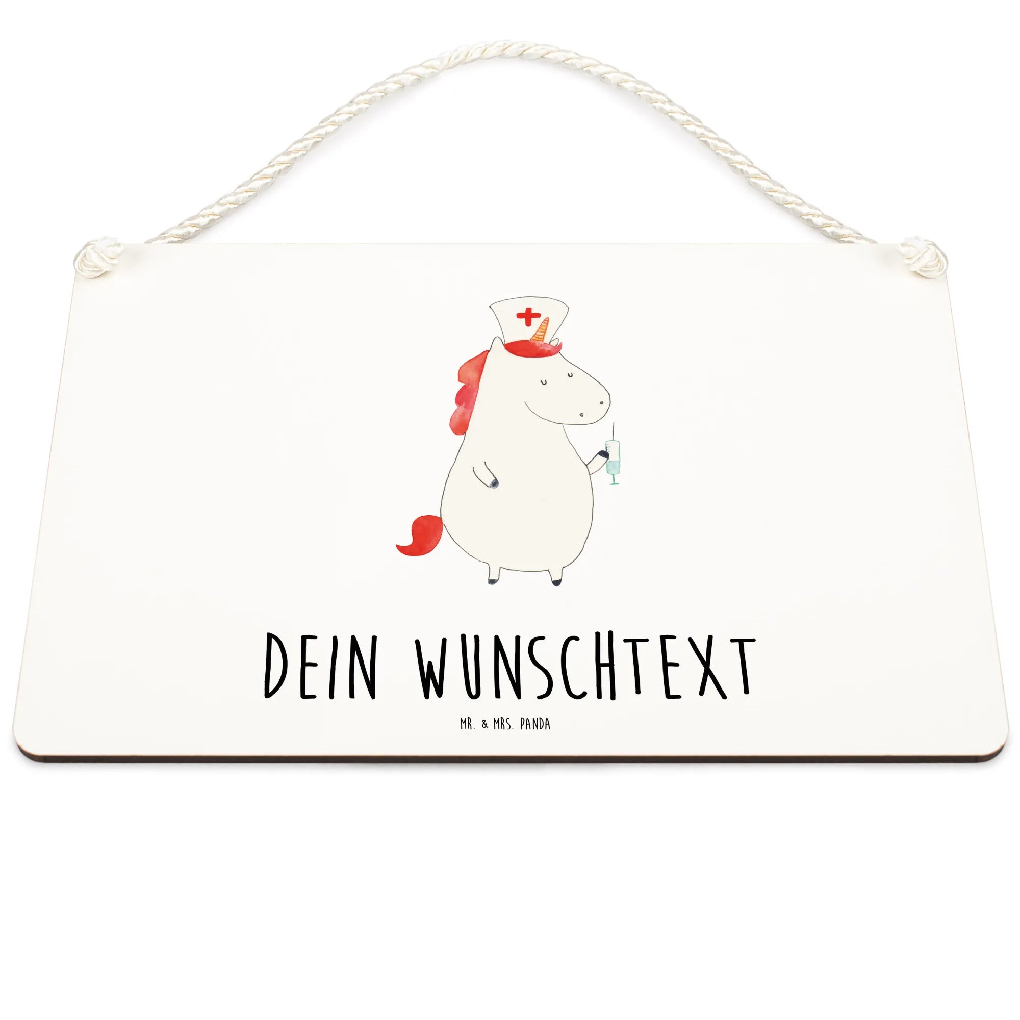 Das personalisierte Deko Schild "Einhorn Krankenschwester" von Mr. & Mrs. Panda ist das perfekte Geschenk für Krankenschwestern, Krankenpfleger und alle, die die zauberhafte Welt der Einhörner lieben! Wenn du auf der Suche nach einer besonderen Dekoration für die Wand oder die Tür bist, dann ist dieses Schild genau das Richtige für dich. Mit der liebevollen Botschaft "Ich piks dich gesund!" bringt dieses Schild nicht nur ein Lächeln in die Gesichter der Empfänger, sondern erinnert sie auch an die wertvolle Arbeit, die sie leisten.