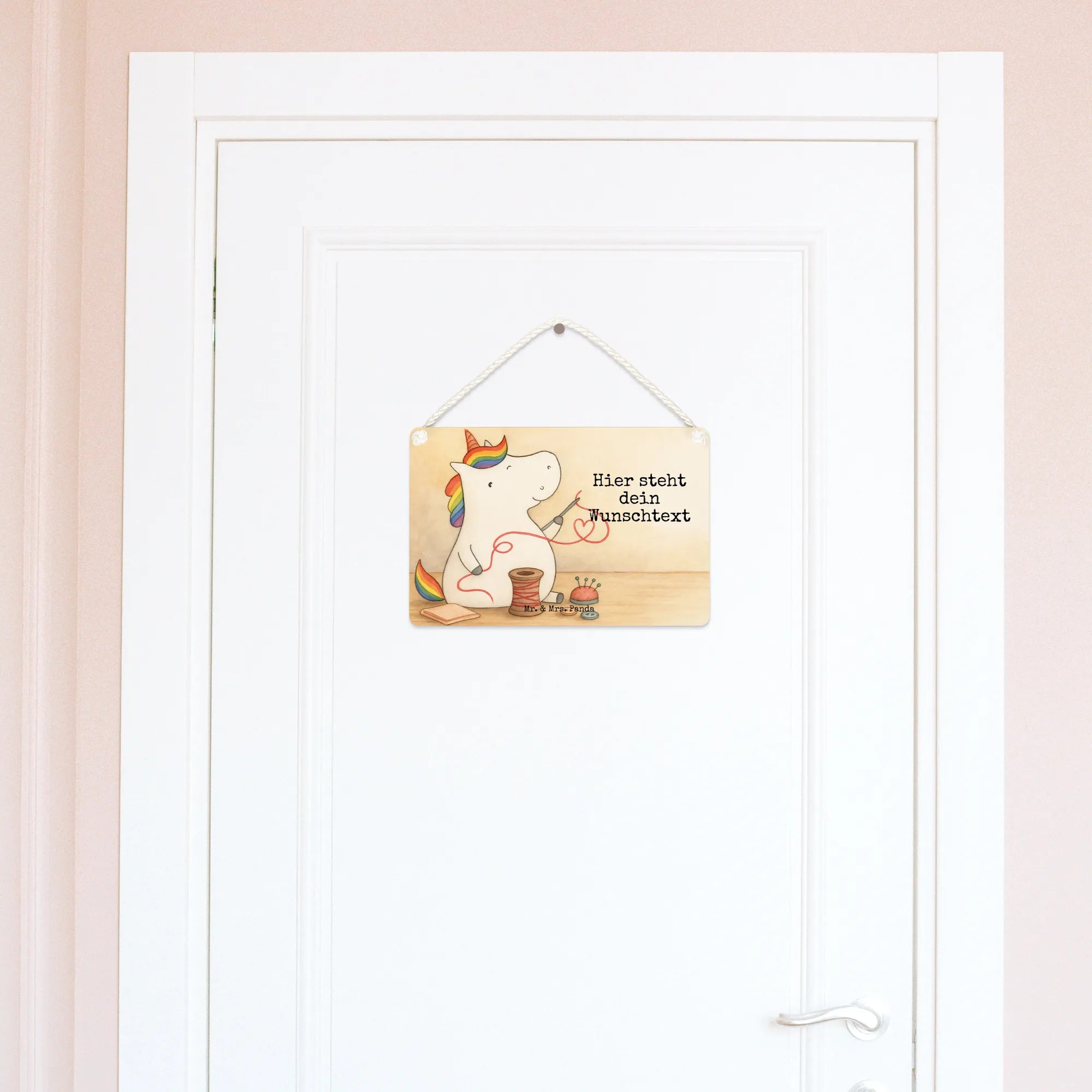 Personalisiertes Deko Schild Einhorn Näherin Design - DIN A6