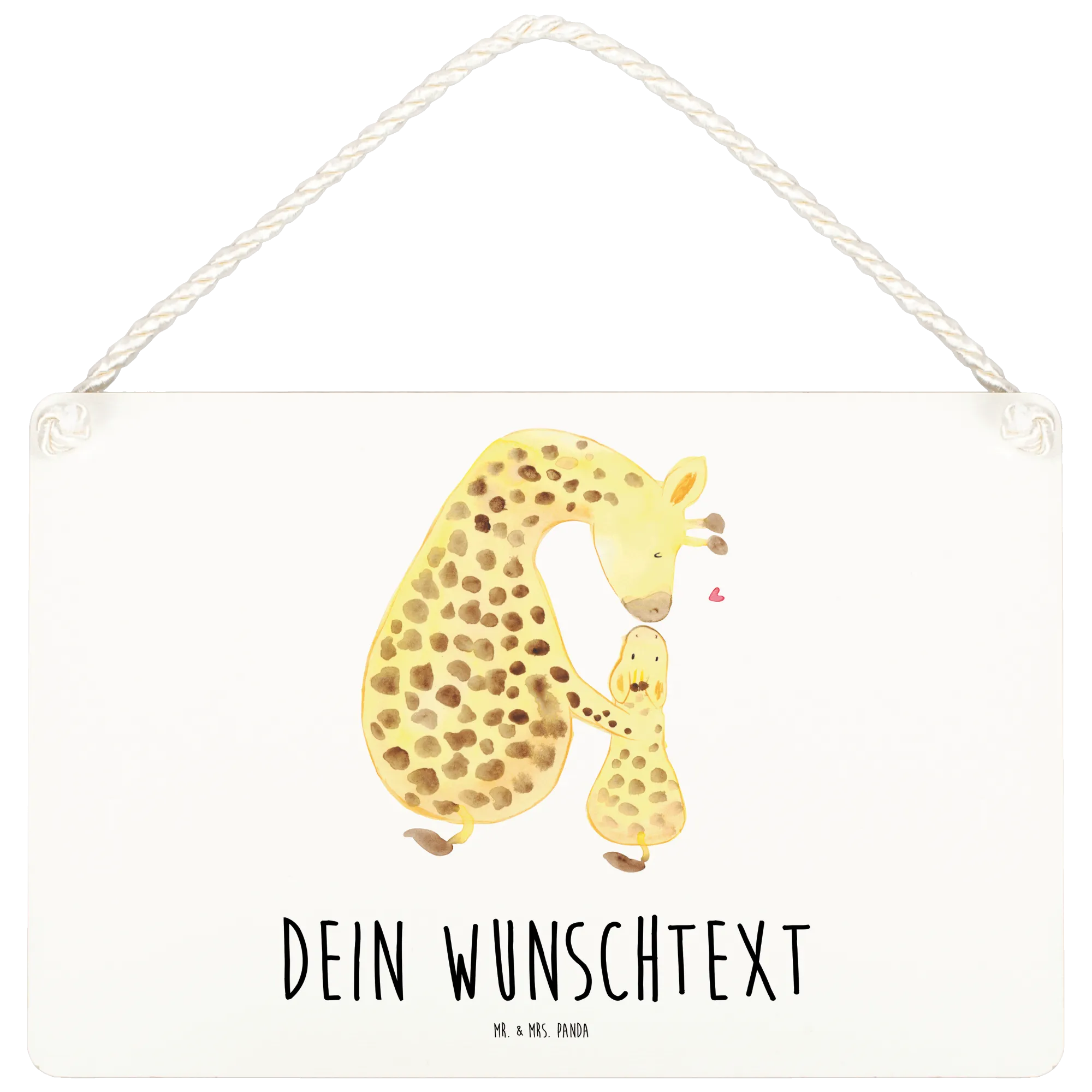 Das personalisierte Deko Schild mit dem süßen Motiv der Giraffe mit Kind von Mr. & Mrs. Panda ist das perfekte Geschenk für alle, die das Besondere lieben. Ob als dekorativer Blickfang an der Wand oder als liebevoller Willkommensgruß an der Tür – dieses Holzschild verleiht jedem Raum eine warmherzige Note.