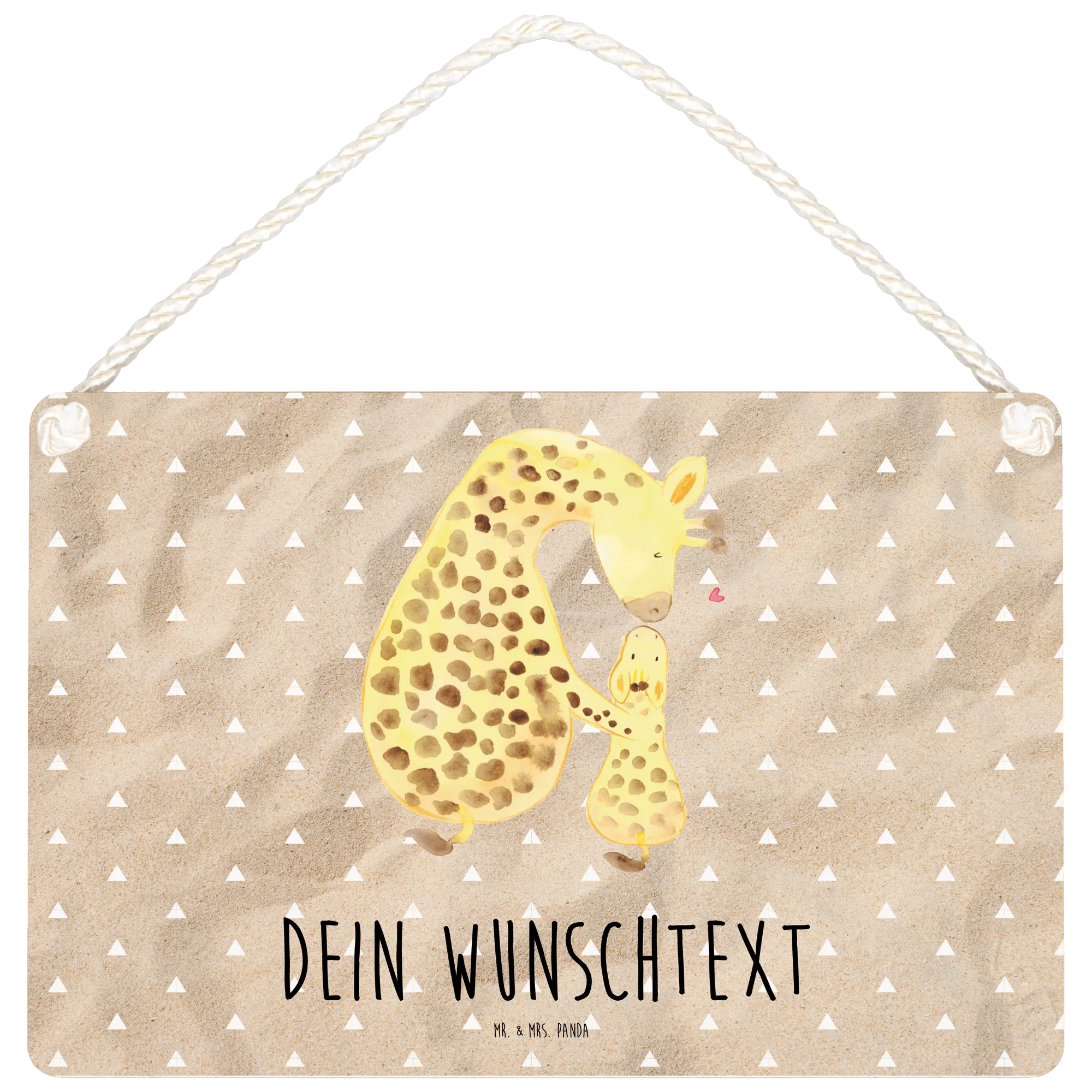 Aus hochwertigem, beschichtetem Holz gefertigt, ist das Schild langlebig und pflegeleicht. Mit einer Größe von DIN A5 passt es perfekt in jeden Raum, egal ob im Kinderzimmer, Wohnzimmer oder Flur. Der sandige Hintergrund in Kombination mit dem bezaubernden Giraffenmotiv bringt einen Hauch von afrikanischem Flair mit sich.
