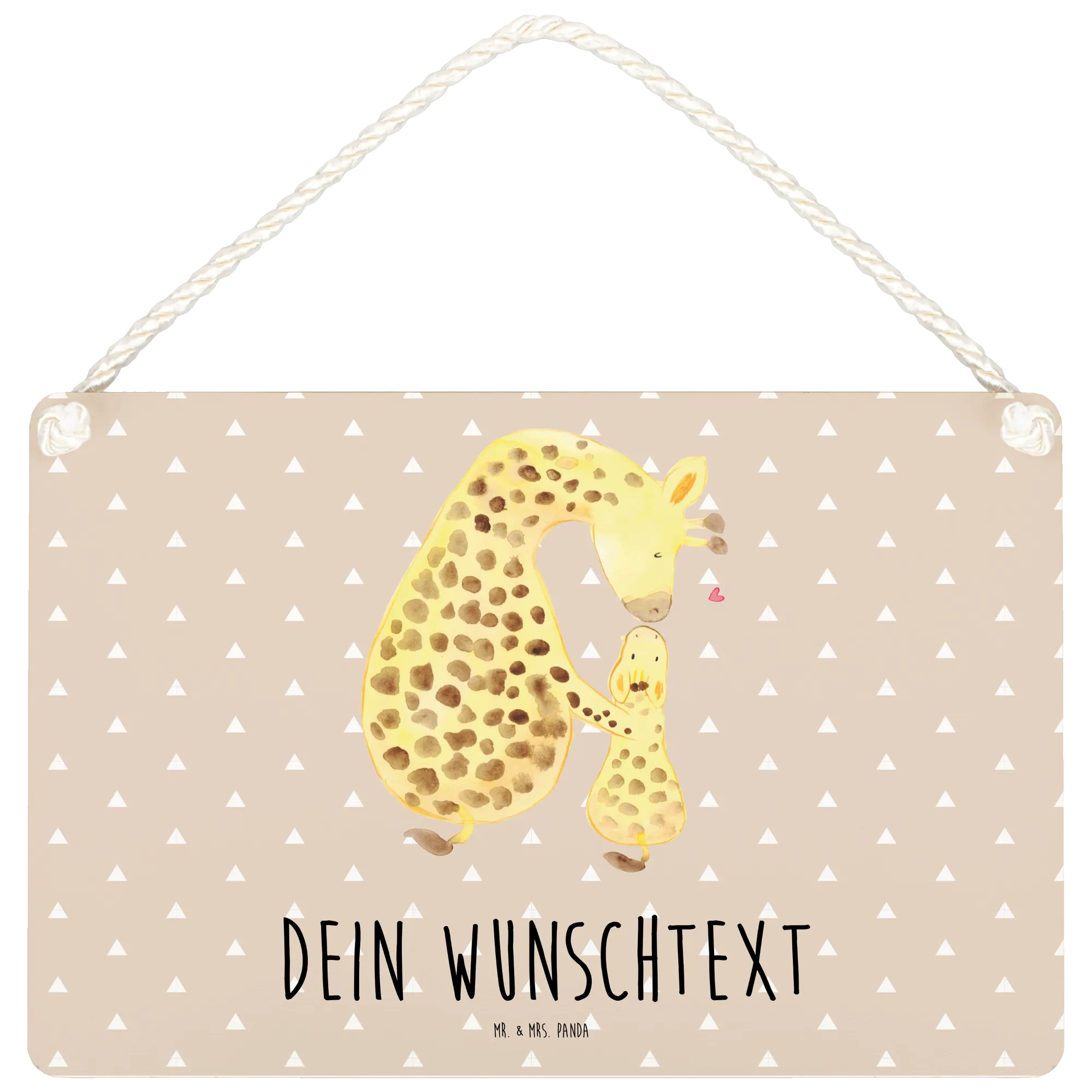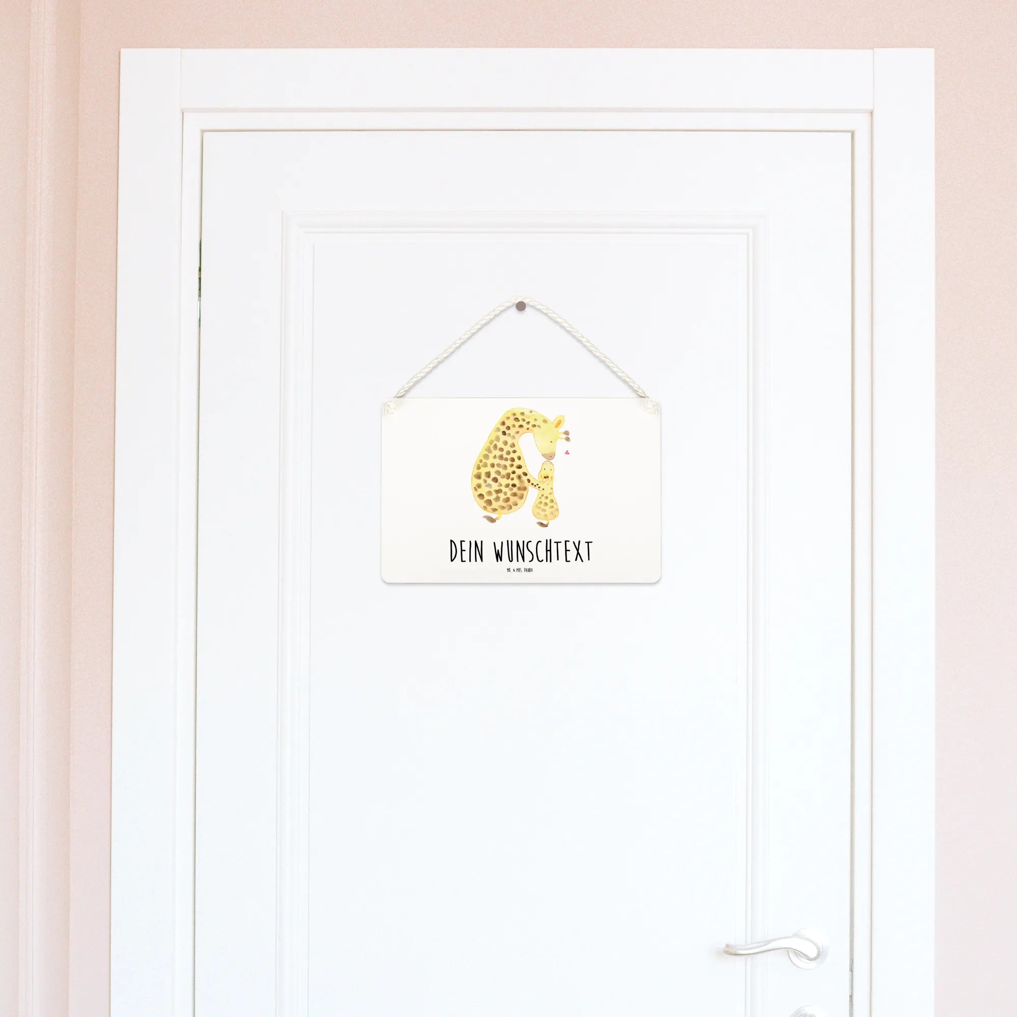Das personalisierte Deko Schild mit dem süßen Motiv der Giraffe mit Kind von Mr. & Mrs. Panda ist das perfekte Geschenk für alle, die das Besondere lieben. Ob als dekorativer Blickfang an der Wand oder als liebevoller Willkommensgruß an der Tür – dieses Holzschild verleiht jedem Raum eine warmherzige Note.