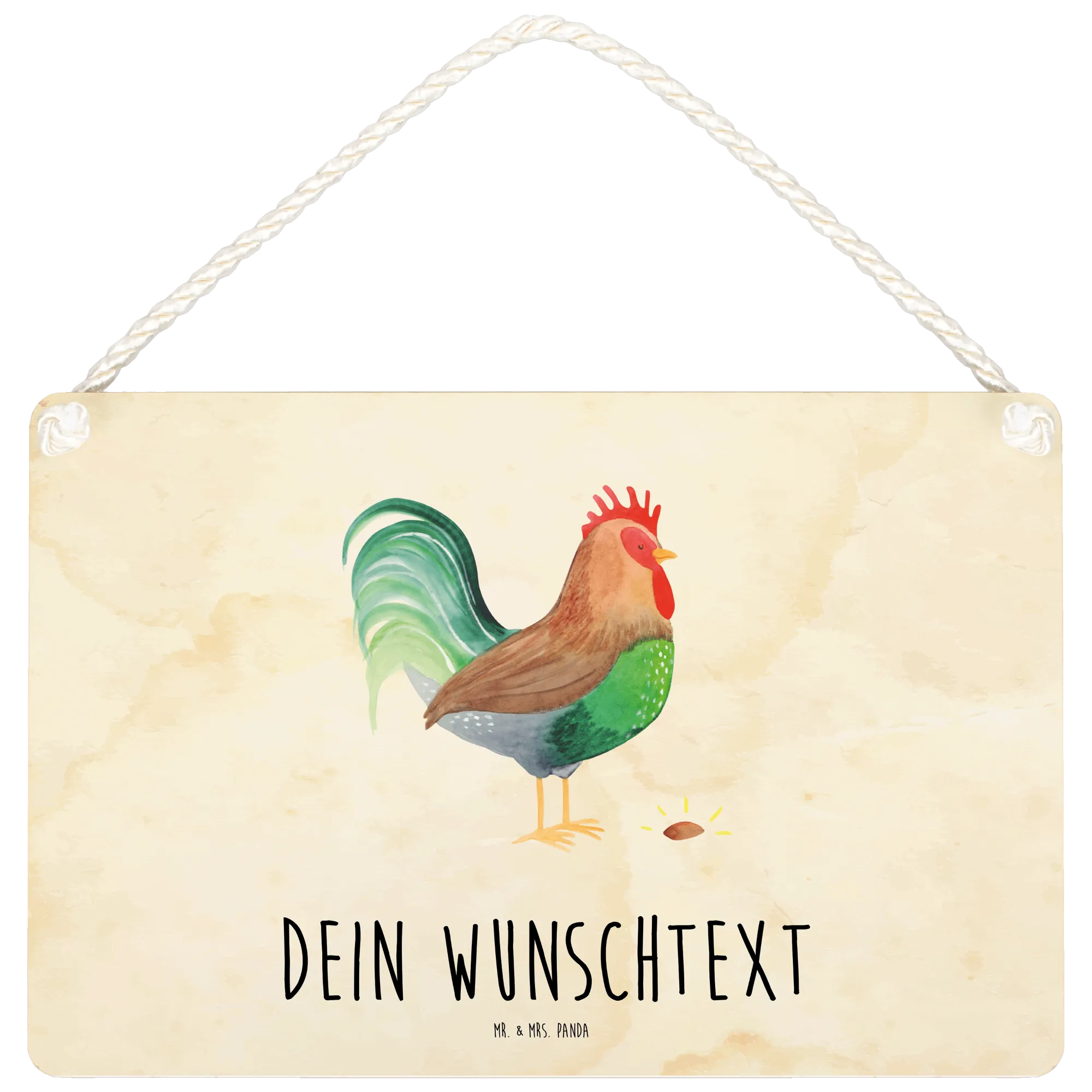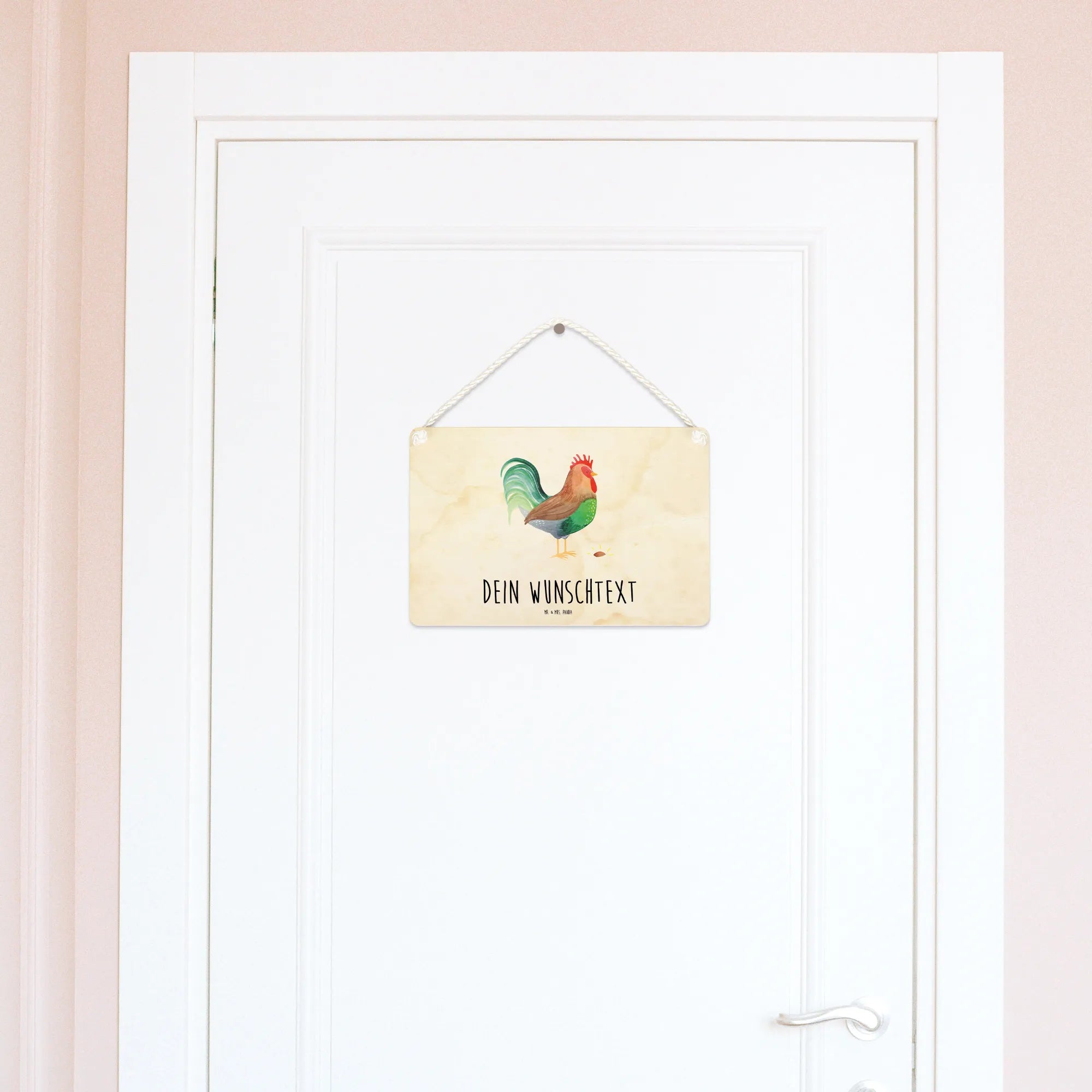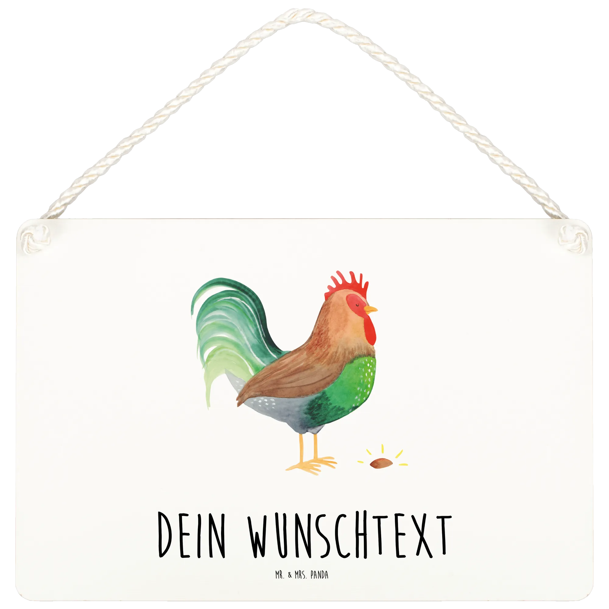 Personalisiertes Deko Schild Hahn mit Korn - DIN A6 - Weiß
