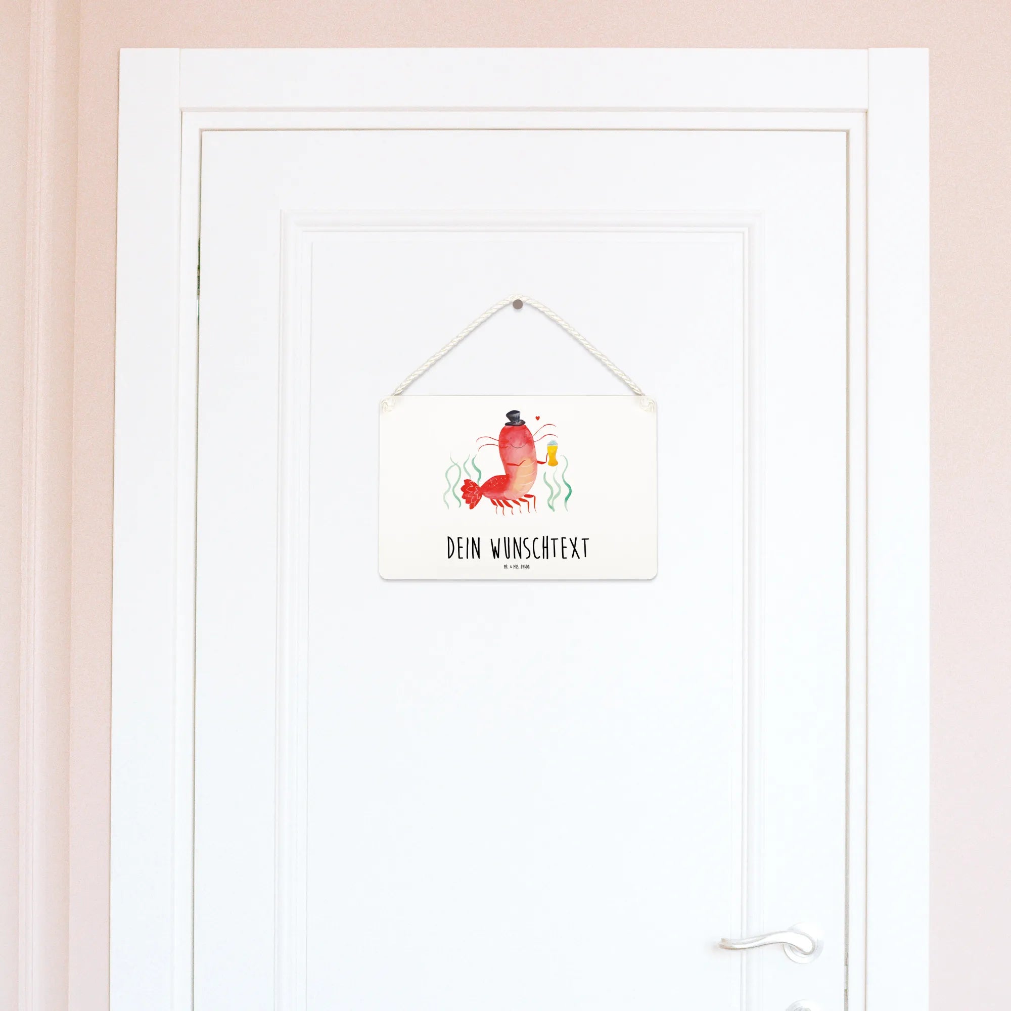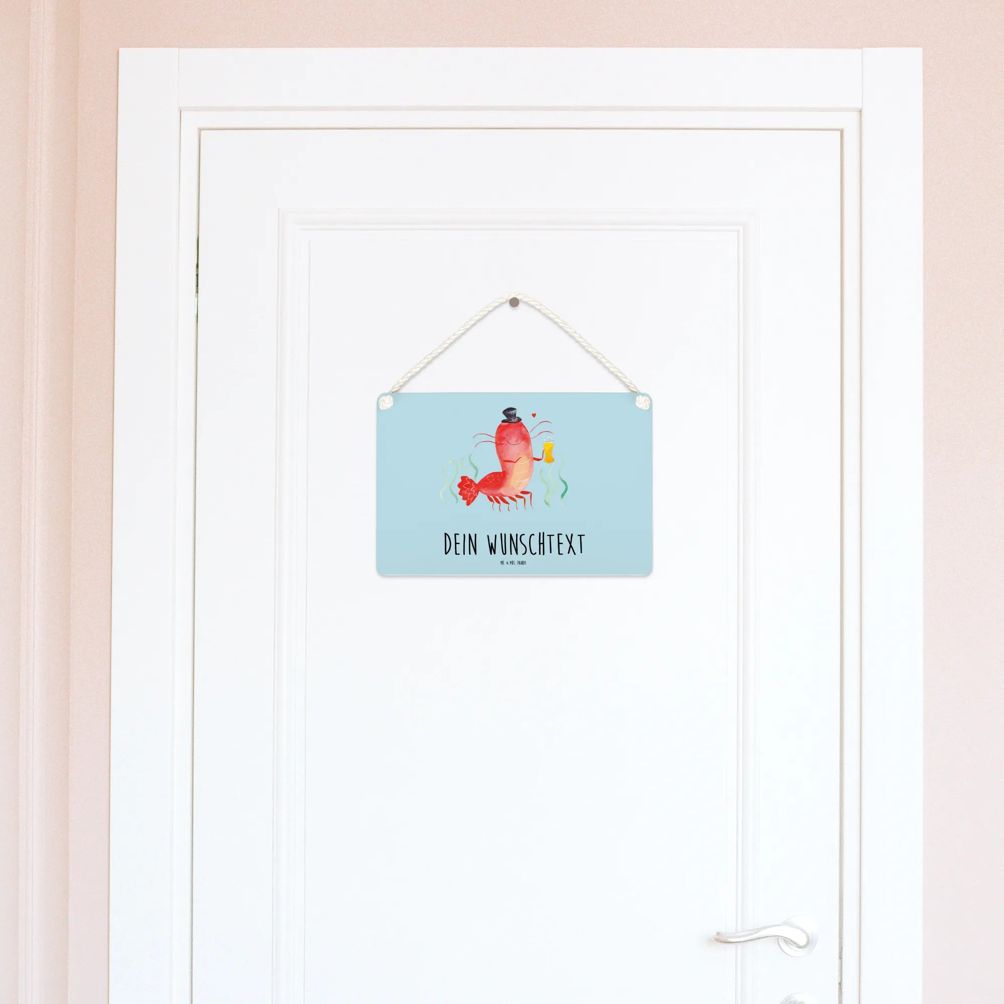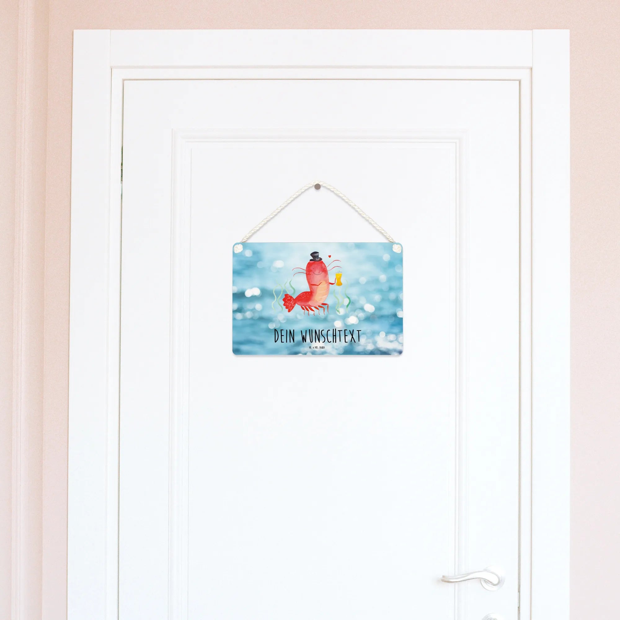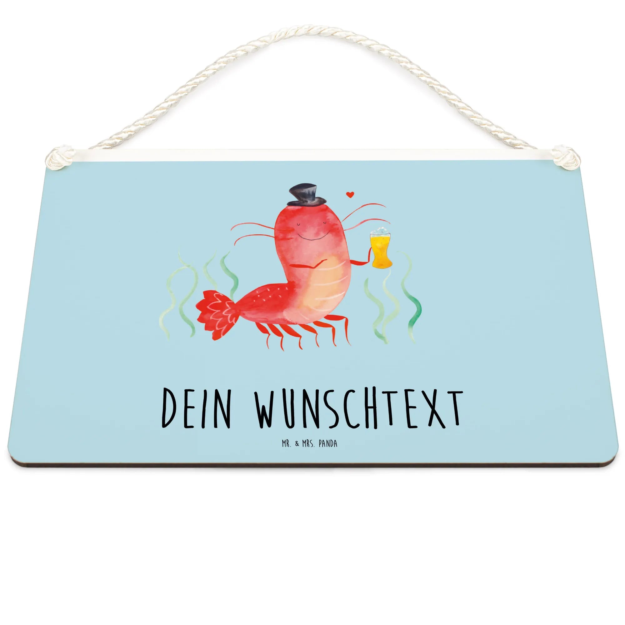 Das personalisierte Deko Schild mit dem süßen Motiv Hummer mit Weizen von Mr. & Mrs. Panda ist das perfekte Geschenk für jeden, der die Meereswelt liebt!