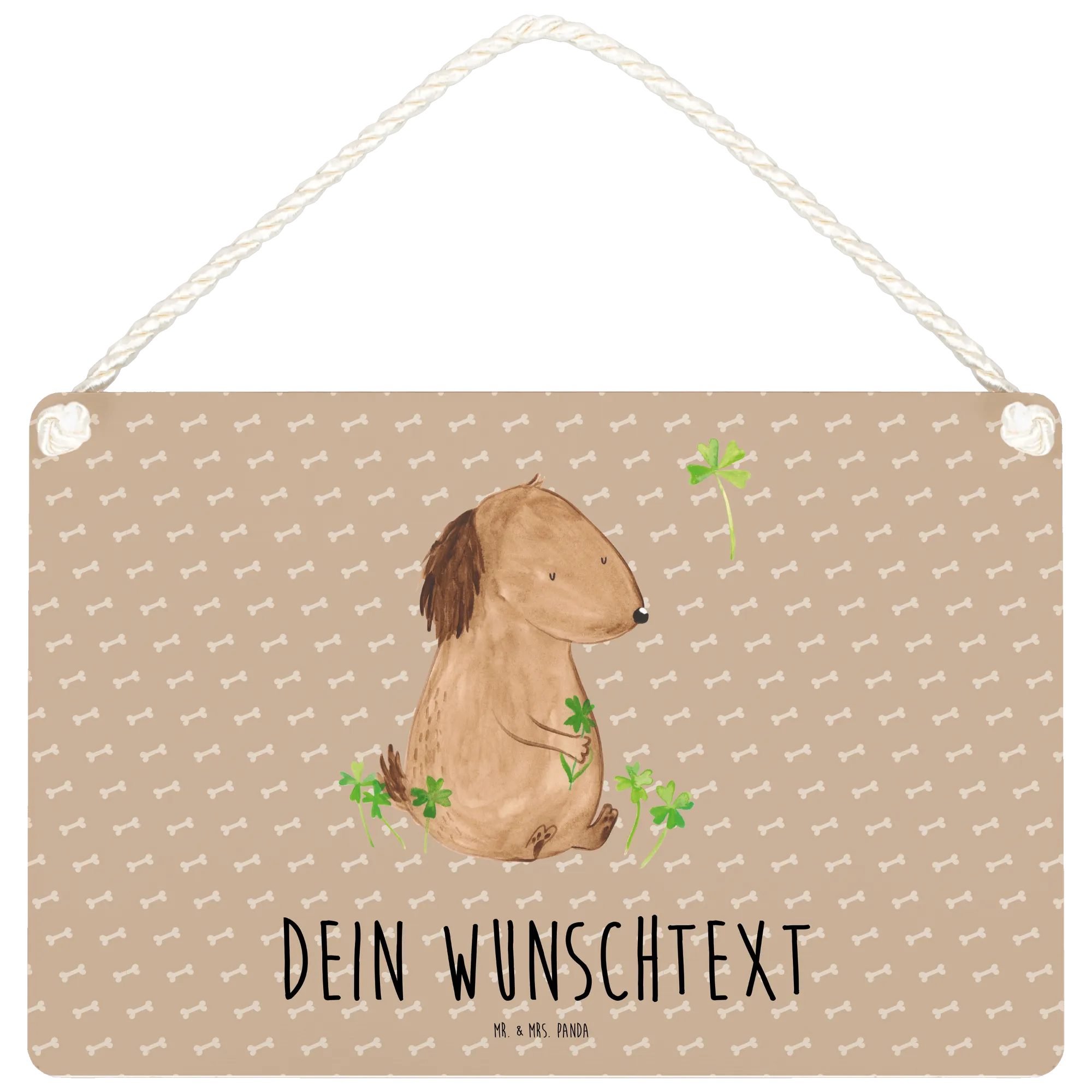 Personalisiertes Deko Schild Hund Kleeblatt - DIN A6 - Weiß