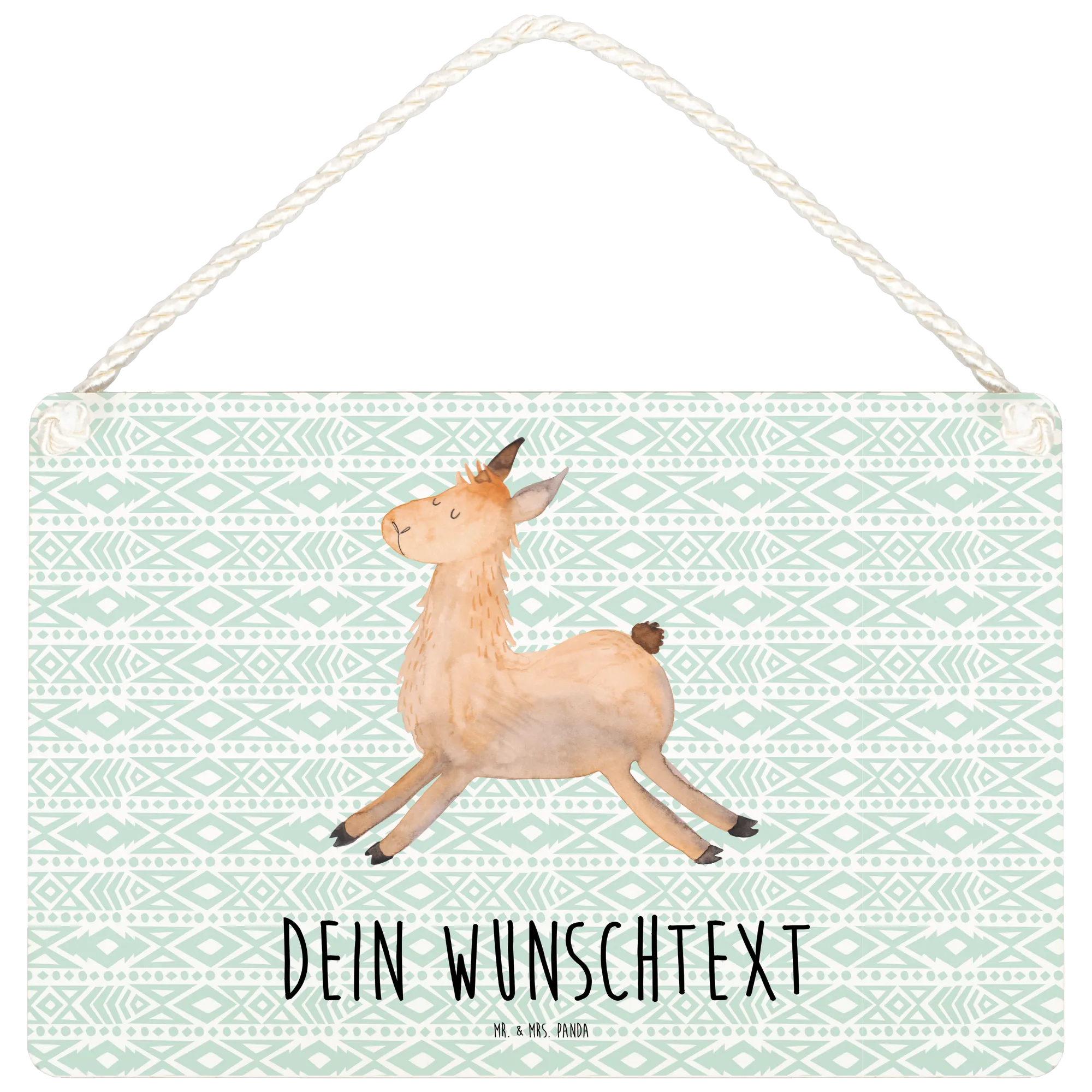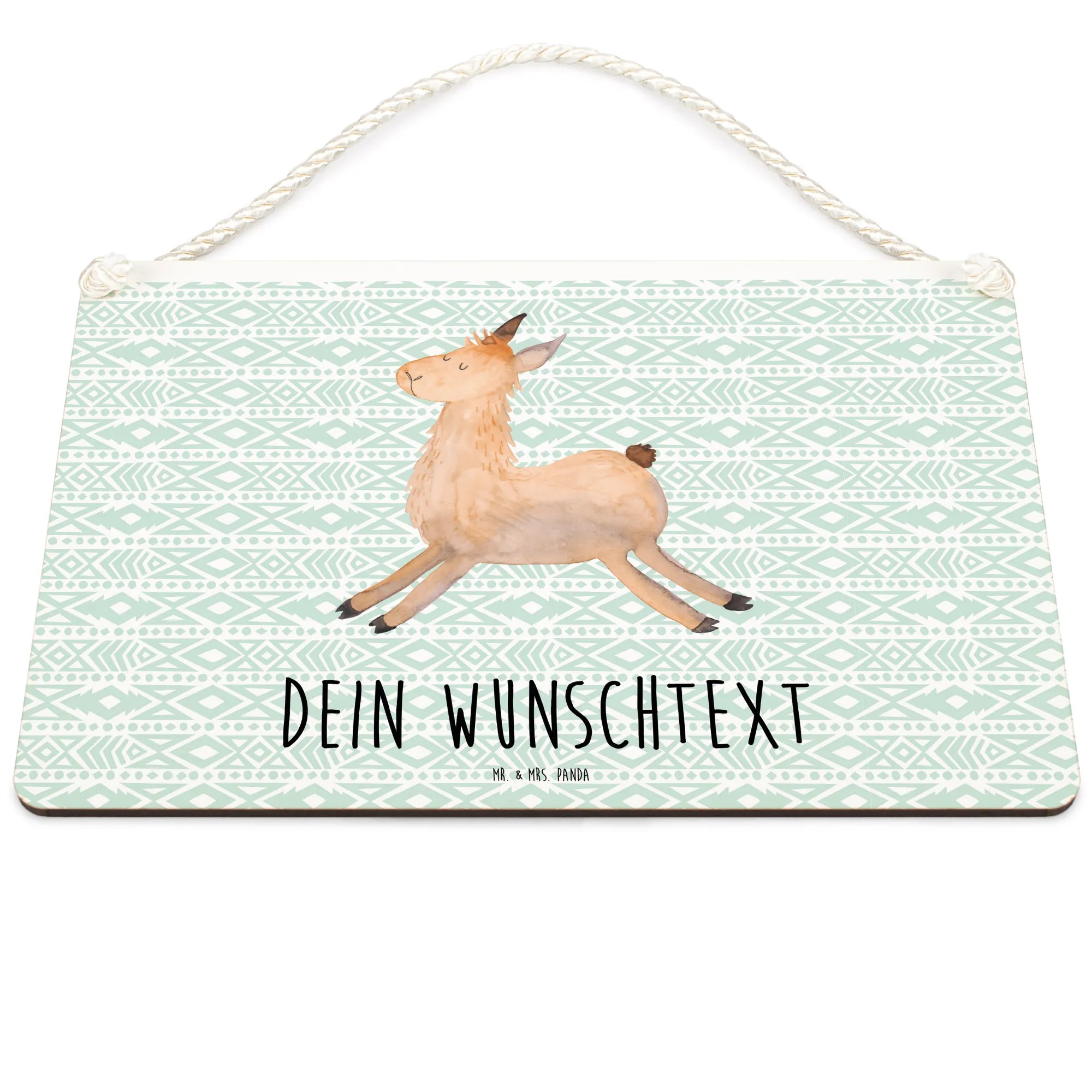 Lass das Glück ins Haus und verschenke das personalisierte Deko Schild "Lama springend" - das perfekte Deko-Schild, um Freude und Optimismus zu verbreiten!