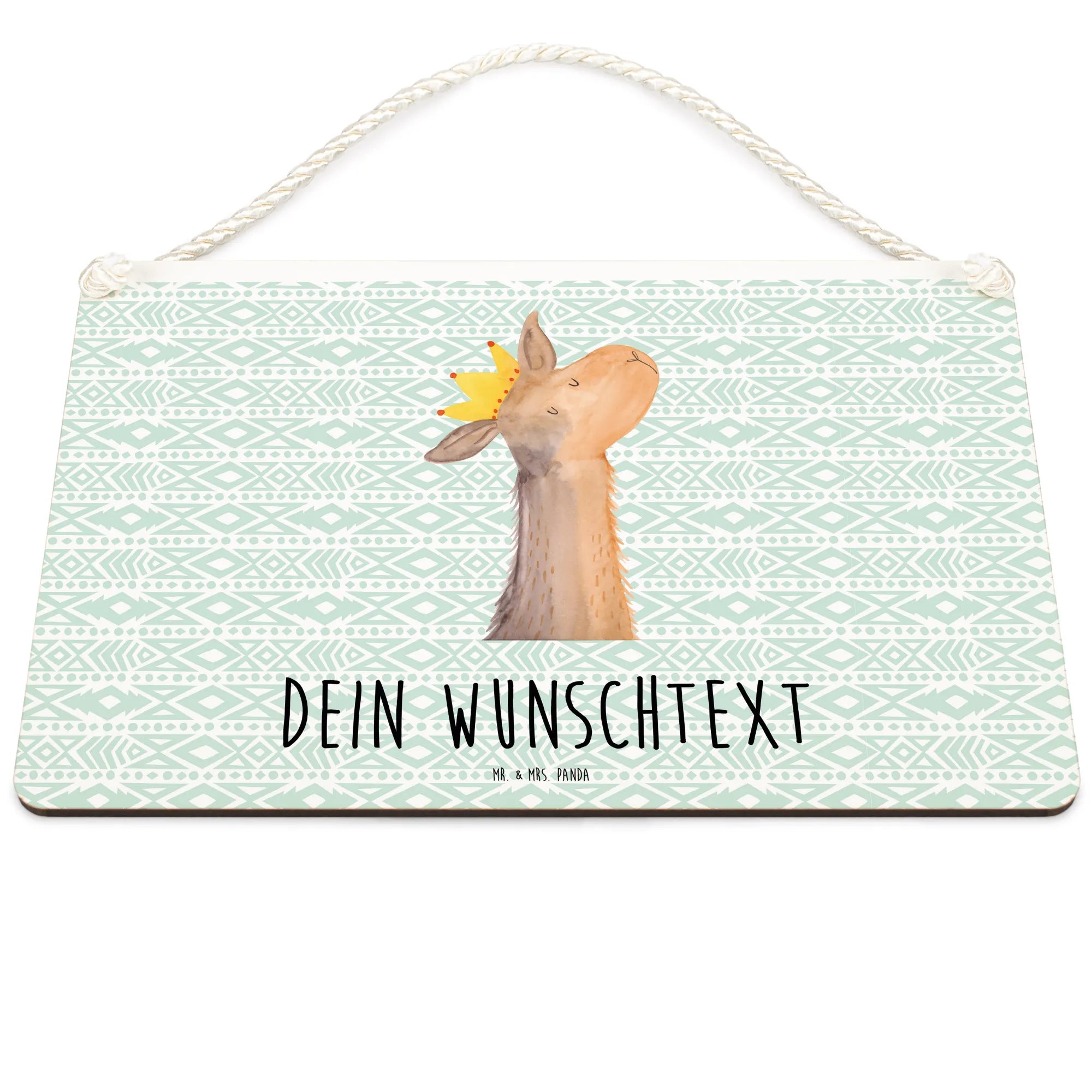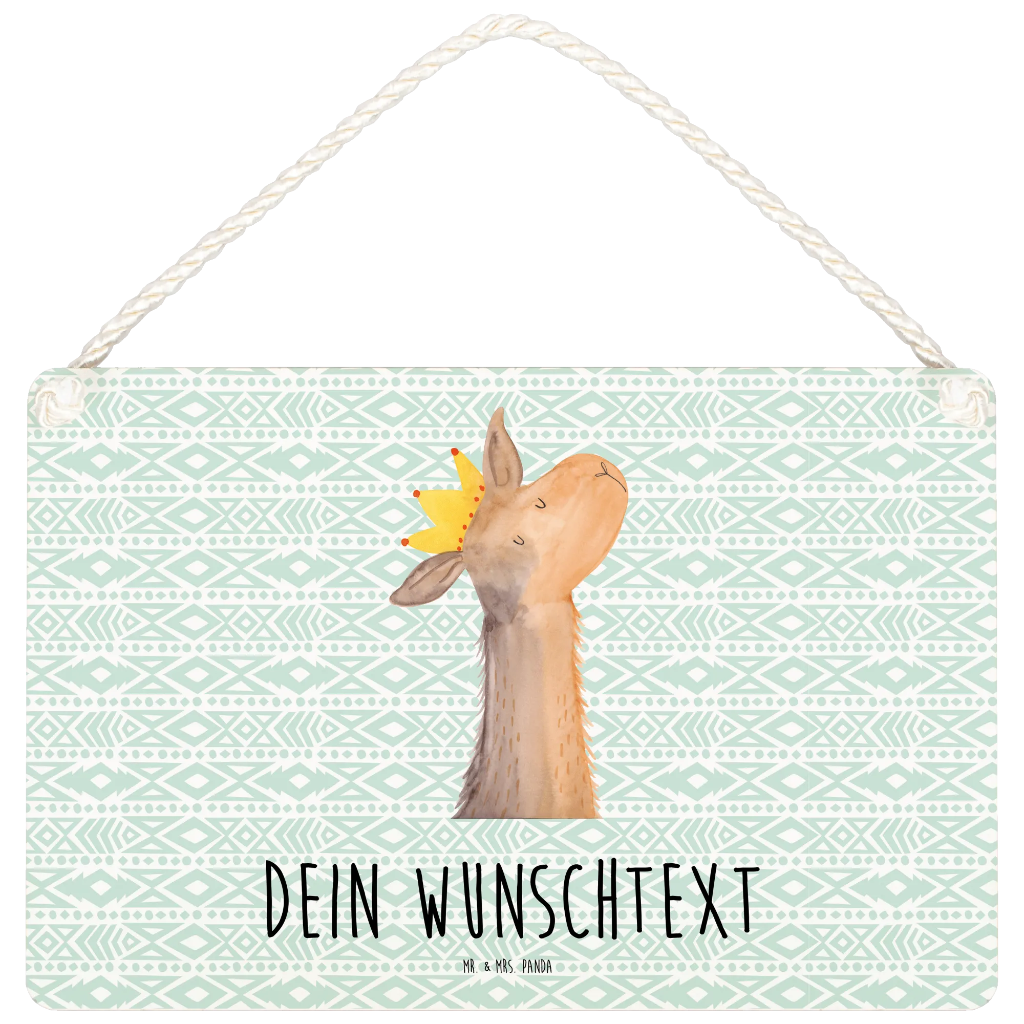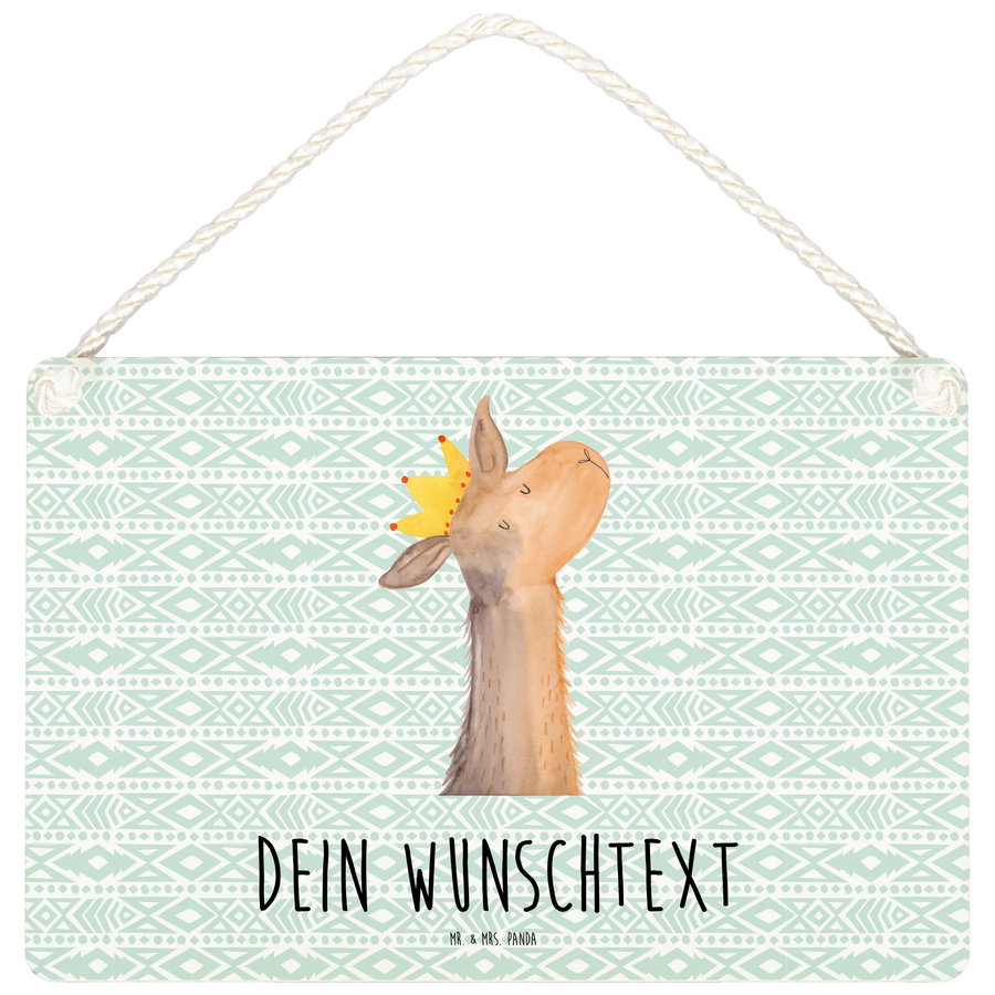 Personalisiertes Deko Schild Lamakopf König - DIN A6 - Aztekenblau