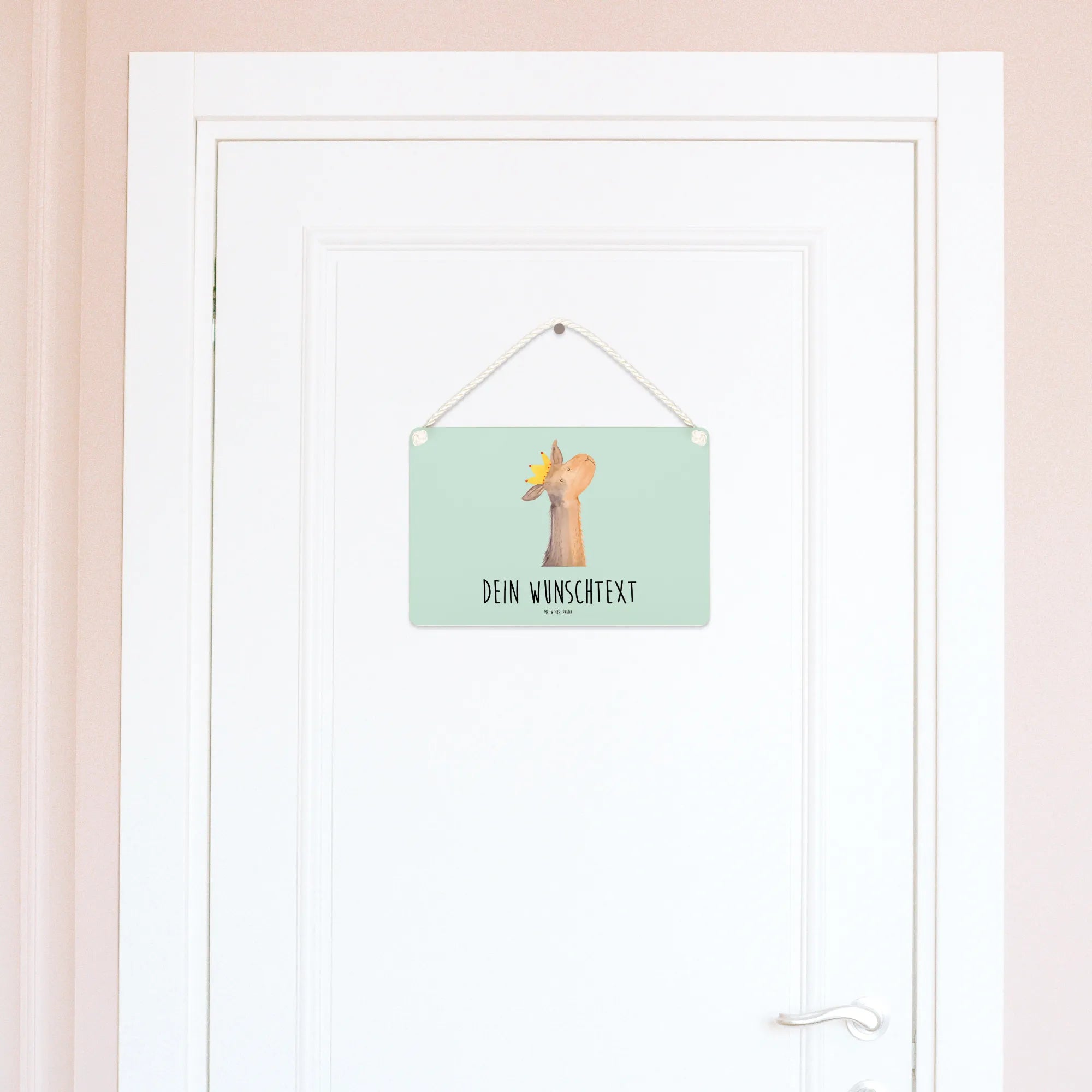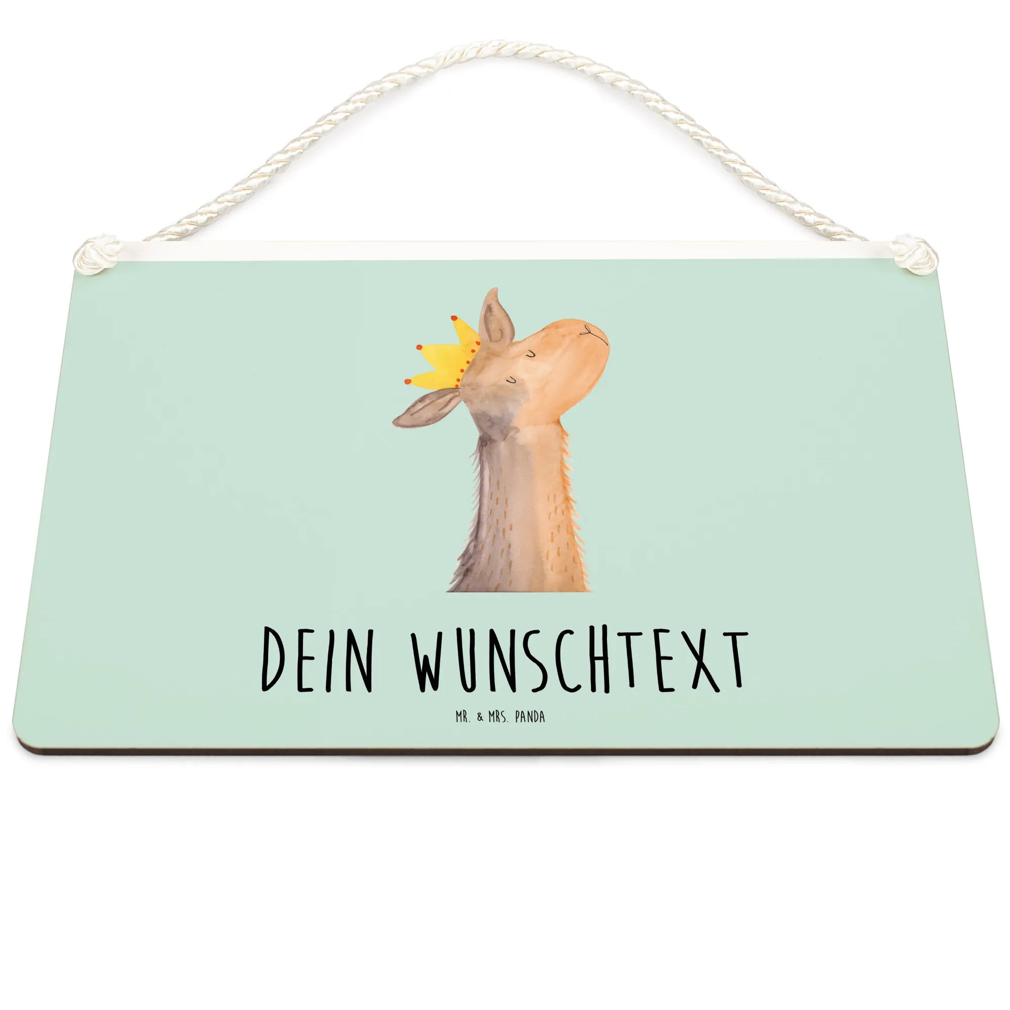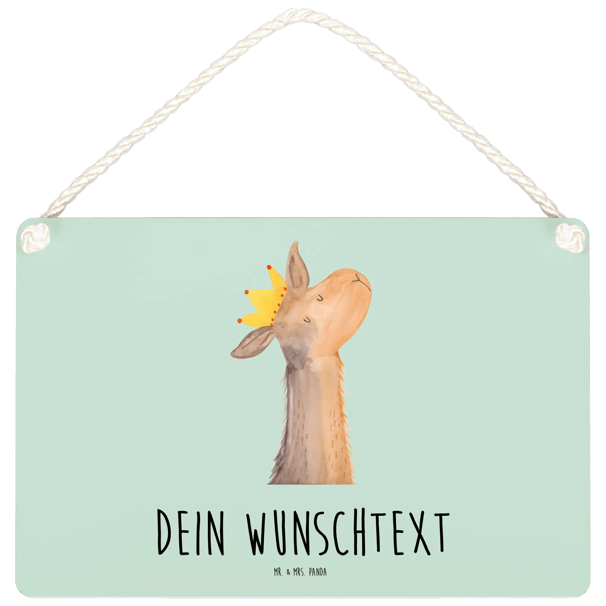 Jeder, der ein Herz für Lamas hat, wird von diesem Schild begeistert sein. Der Lamakopf mit Krone zeugt von der coolen und charmanten Ausstrahlung dieser Tiere. Jedes Schild wird individuell für dich angefertigt und kann mit deinem Wunschnamen oder Wunschtext personalisiert werden.