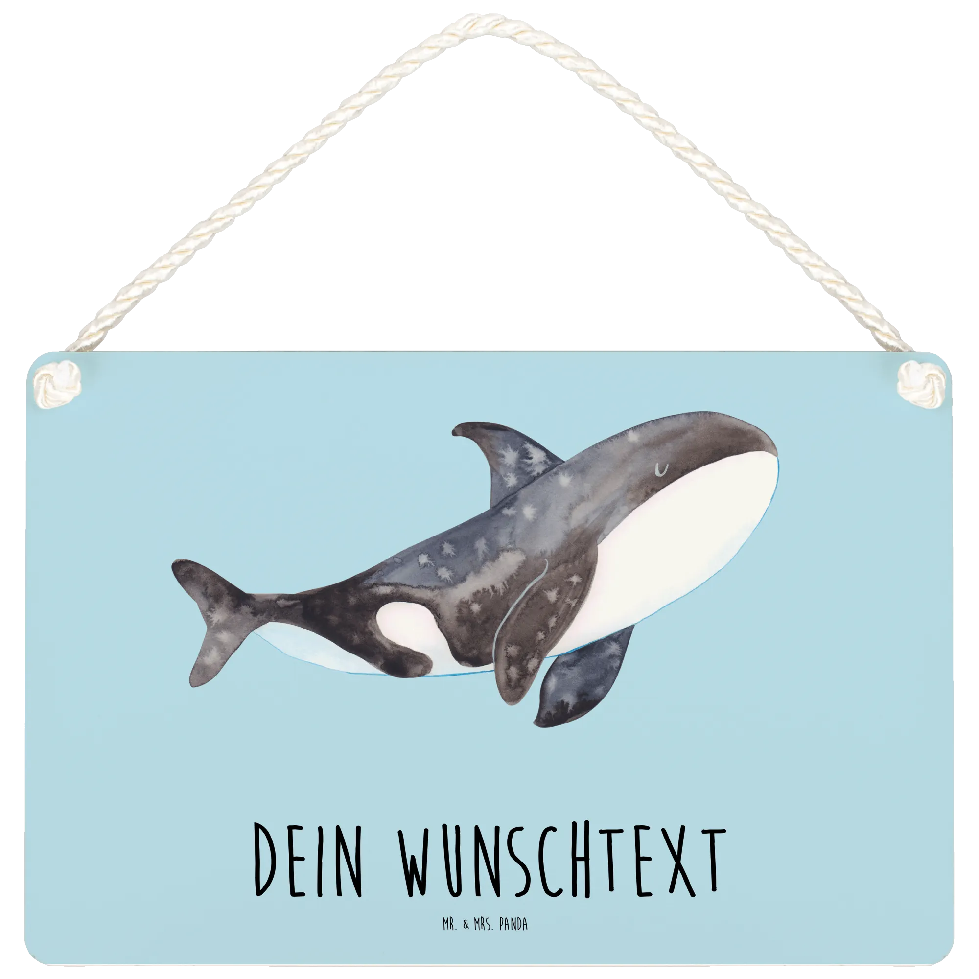 Entdecke das wunderschöne personalisierte Deko Schild mit einem zauberhaften Orca-Motiv aus der Meerestiere-Kollektion von Mr. & Mrs. Panda!