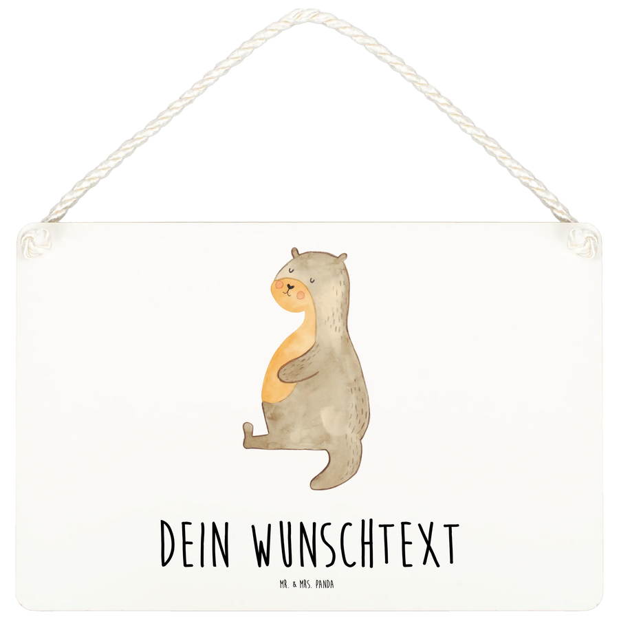 Das personalisierte Deko Schild mit dem süßen Motiv des Otters aus der Otter Kollektion von Mr. & Mrs. Panda ist genau das richtige Geschenk für alle, die es lieben, ihr Zuhause mit charmanten Dekorationen zu verschönern.