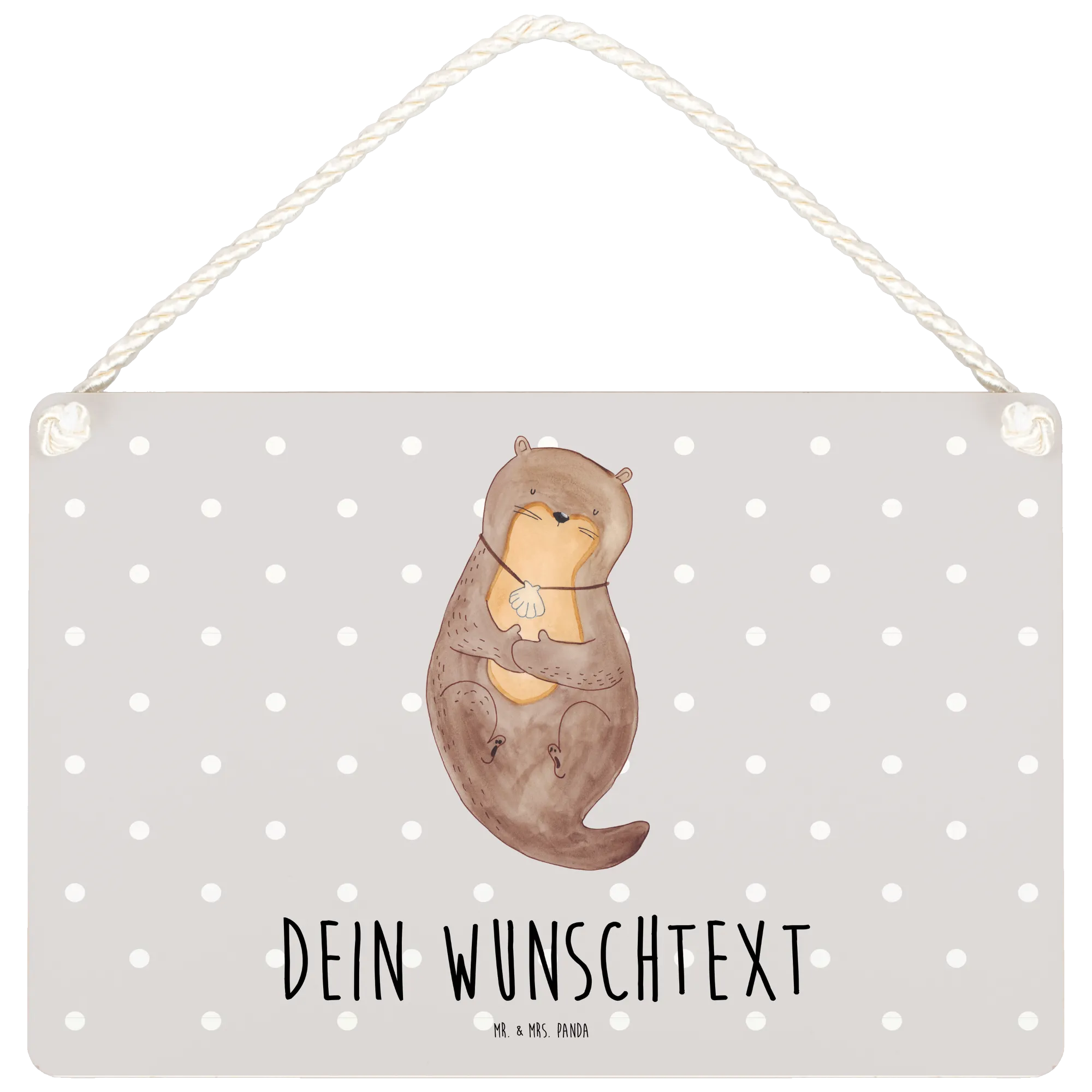 Das personalisierte Deko Schild mit dem süßen Motiv 'Otter mit Muschelmedaillon' aus der bezaubernden Otter-Kollektion von Mr. & Mrs. Panda ist mehr als nur ein dekoratives Element – es ist ein echtes Liebhaberstück!