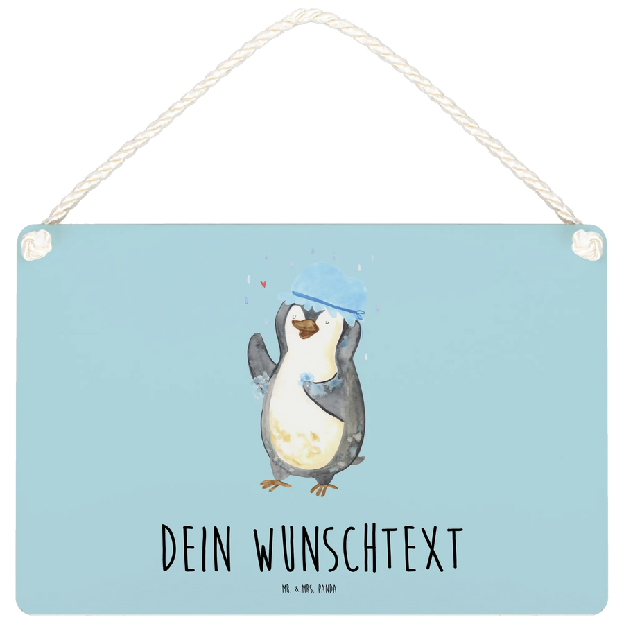 Personalisiertes Deko Schild Pinguin duscht - DIN A6 - Eisblau