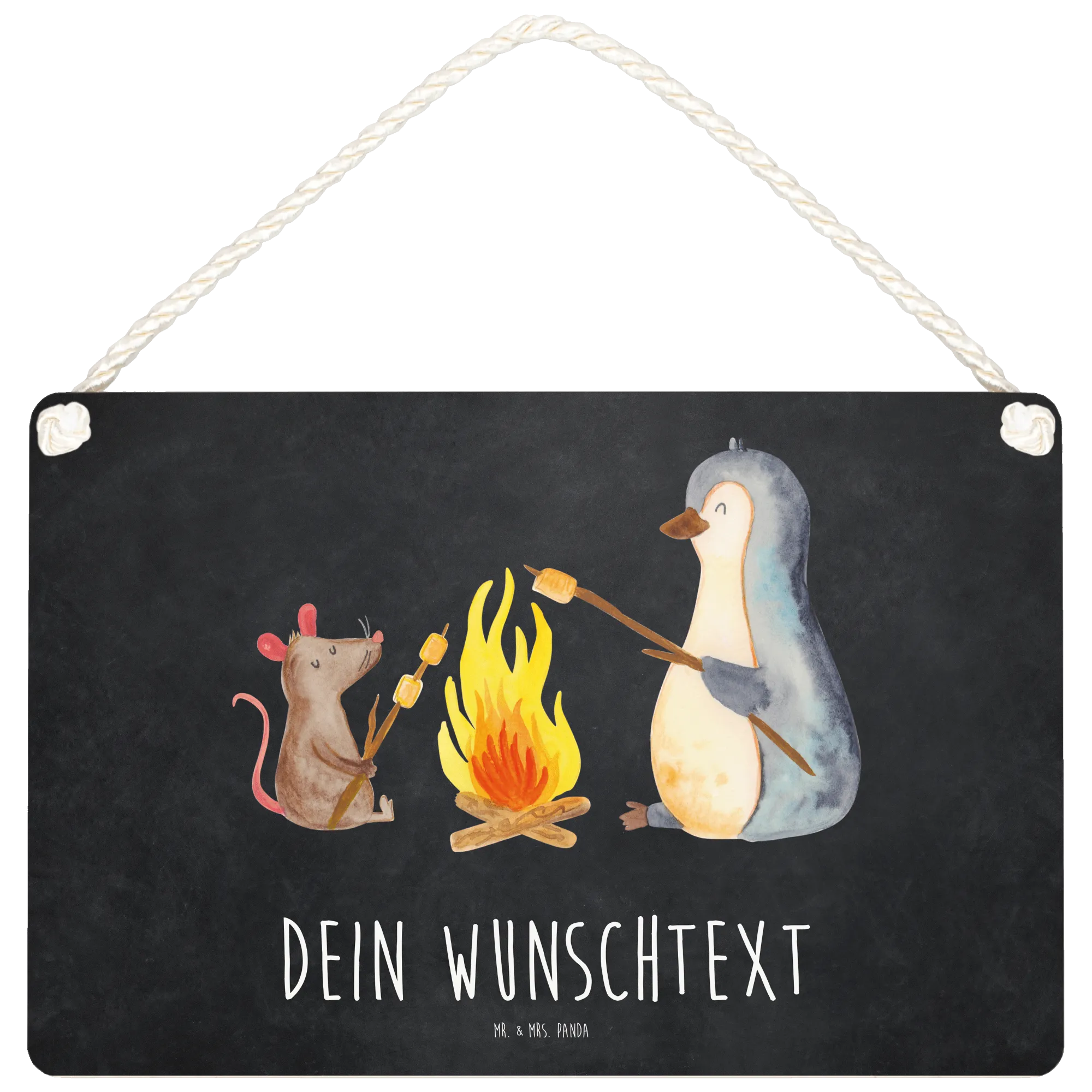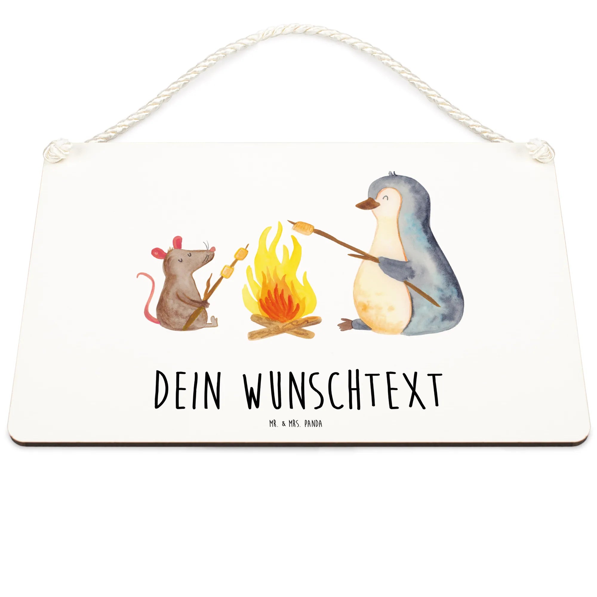 Unsere Schilder sind aus hochwertigen Materialien gefertigt und mit viel Liebe zum Detail von Hand entworfen. Das Pinguin Lagerfeuer Motiv zeigt einen süßen Pinguin und eine kleine Maus am Lagerfeuer, die gemeinsam Marshmallows rösten und Zeit miteinander genießen. Diese herzliche Szene zaubert jedem ein Lächeln ins Gesicht und schafft eine warme, einladende Atmosphäre.