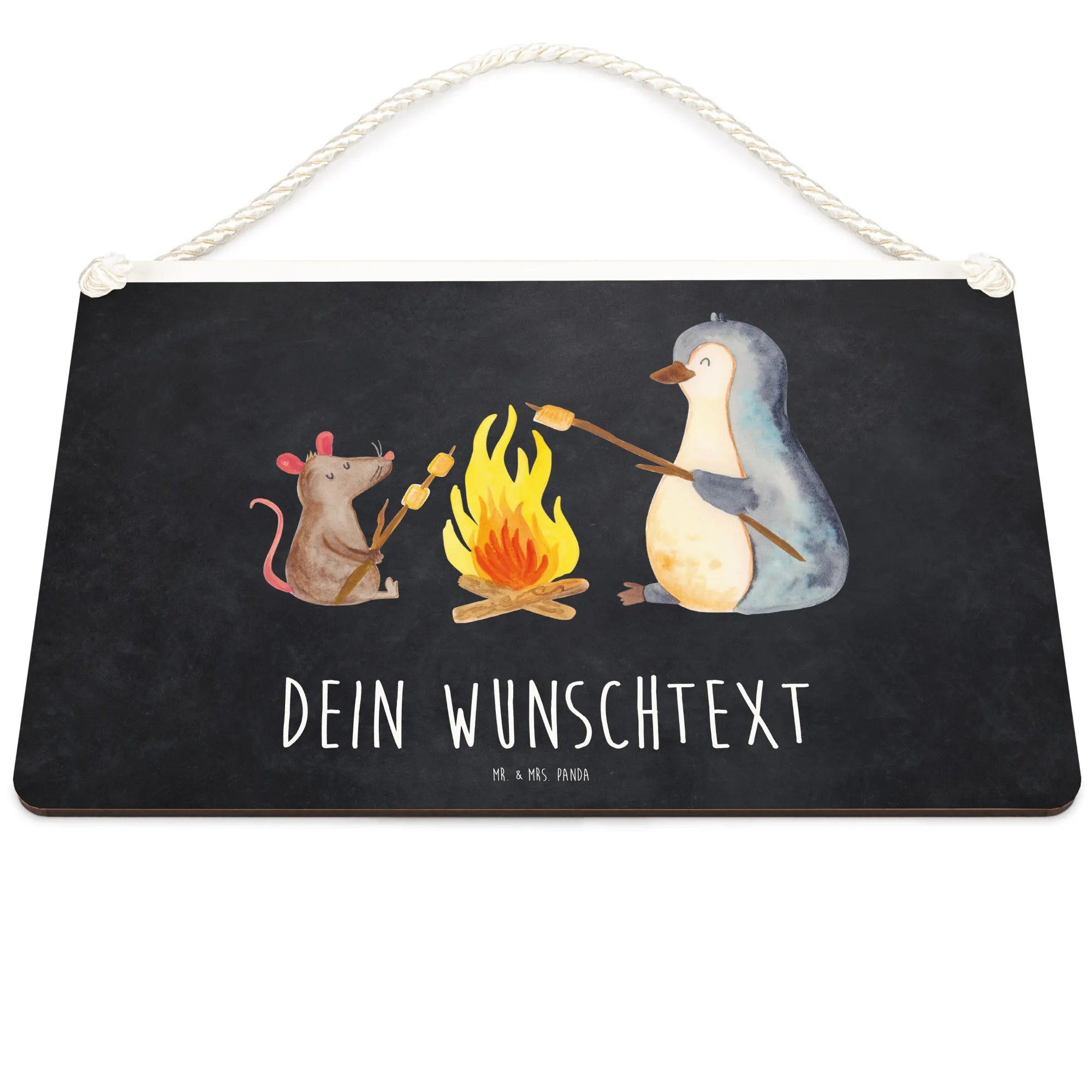 Das personalisierte Deko Schild mit dem bezaubernden Pinguin Lagerfeuer Motiv von Mr. & Mrs. Panda ist das perfekte Geschenk für jeden Anlass!