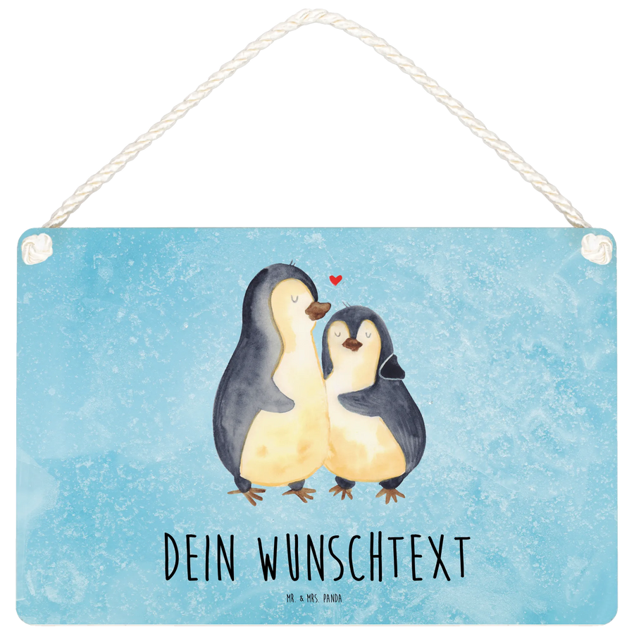Personalisiertes Deko Schild Pinguin umarmend - DIN A6 - Eisblau